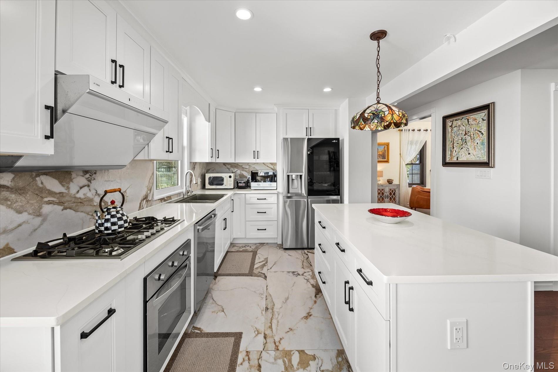 Fully renovated in 2023, this bright and beautifully updated Tudor-style home is located in the prime Russell Gardens location. The home features high ceilings and a spacious, comfortable layout with 4 bedrooms and 4 full bathrooms, including a primary suite on the first floor. The layout includes two bedrooms on the first floor and two bedrooms on the second floor, making it ideal for a variety of living needs. The interior offers a spacious living room, formal dining room, and a sun-filled finished walk-out basement with a full bathroom, providing flexible and functional living space. The home has been completely upgraded inside and out while maintaining its original character, featuring Andersen windows and doors, new insulation, central air conditioning, new hardwood floors, a high-efficiency heating system, brand-new plumbing, fully updated electrical wiring with a 200-amp panel ready for EV charging, and a central water filtration system. Additional upgrades include a new roof, new driveway, walkway, backyard patio, and professionally redesigned landscaping with a new lawn irrigation system, all in excellent condition. Located in the Village of Russell Gardens, residents enjoy village amenities including a community pool, tennis courts, and playground, as well as nearby Parkwood Sports Complex and the scenic waterfront Steppingstone Park. Conveniently located close to LIRR, shopping, buses, schools, and parks, with easy access to Northern Boulevard and major highways.