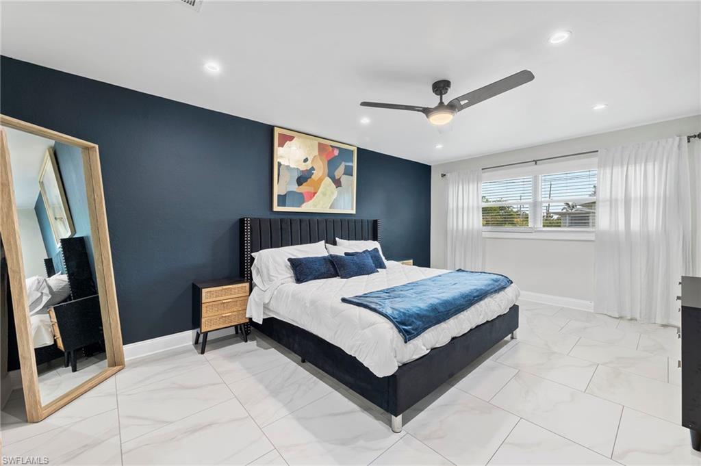 Step into your dream retreat, just moments from the Cape Coral Yacht Club and vibrant downtown. This fully remodeled gem offers over 2, 300 sq ft of impeccable living space, featuring four spacious bedrooms and three beautifully updated bathrooms—including two master suites with custom walk-in closets. The elegant bathrooms showcase stylish new tilework and modern fixtures, while the chef’s kitchen impresses with stunning miter-edge quartz countertops and top-of-the-line appliances. Designed for both style and security, the home boasts a brand-new hurricane-resistant front door, enhancing its curb appeal. Nestled on an oversized lot, the outdoor space is a true entertainer’s paradise. Enjoy the newly paved, screened lanai leading to a refreshing oversized pool, perfect for relaxation. The lush backyard, dotted with fruit trees, offers a separate screened-in area—ideal for grilling or unwinding by a fire pit. Additional features include a poolside storage room and a spacious circular driveway, providing ample parking for guests. Offering a perfect blend of luxury, comfort, and prime location, this exceptional home presents a rare opportunity to embrace the best of Cape Coral living. Don’t miss out—schedule your showing today!
