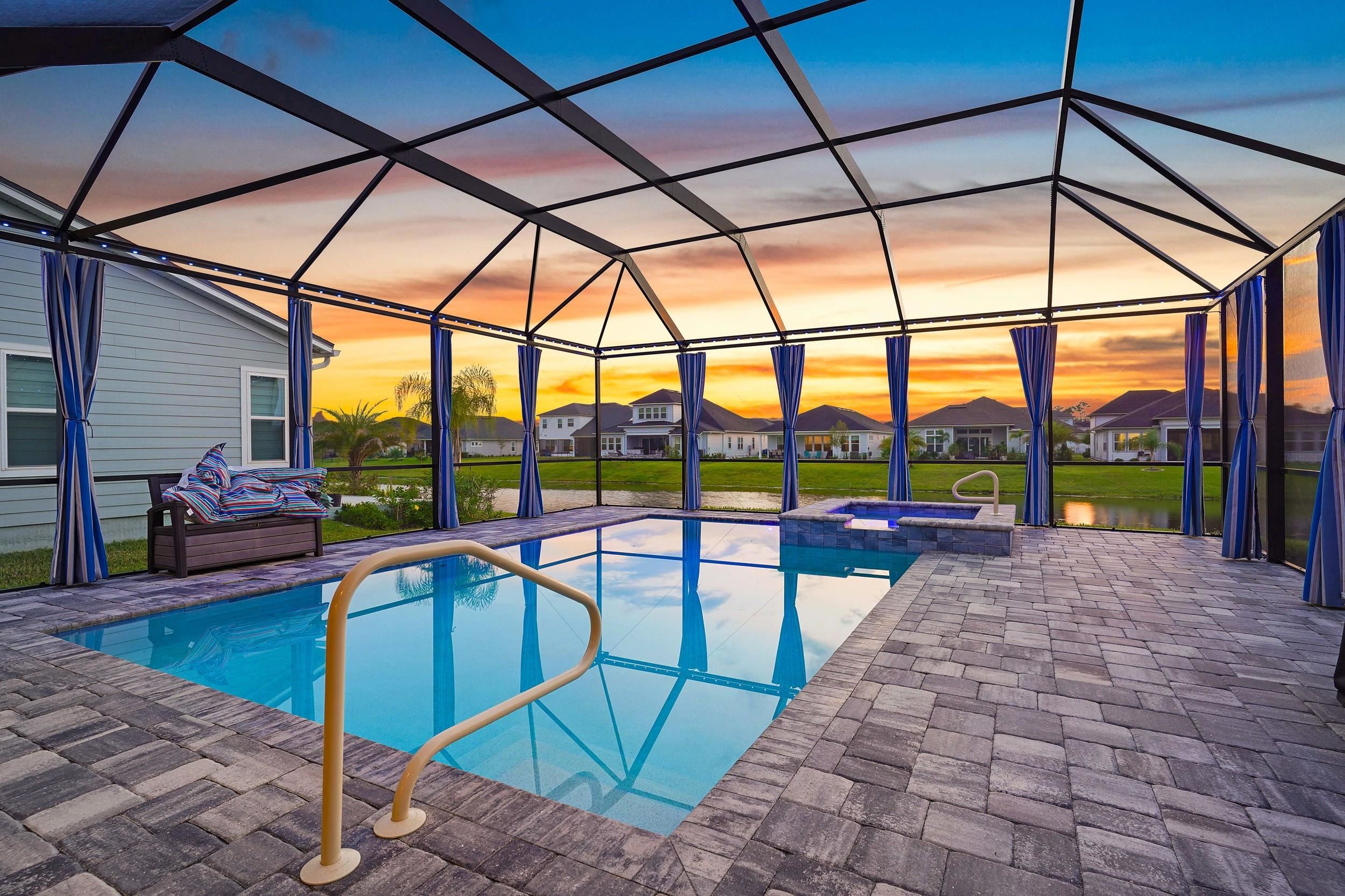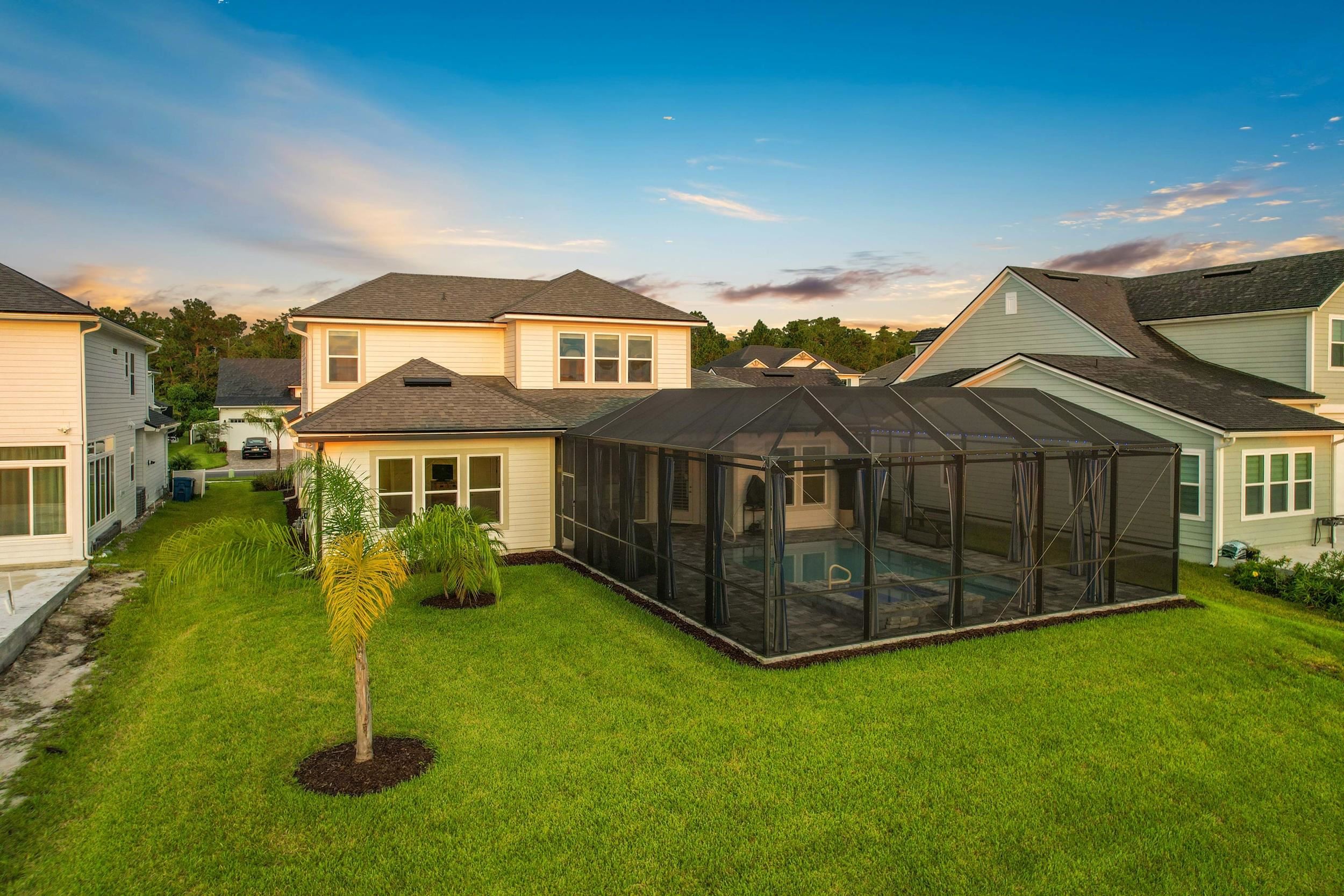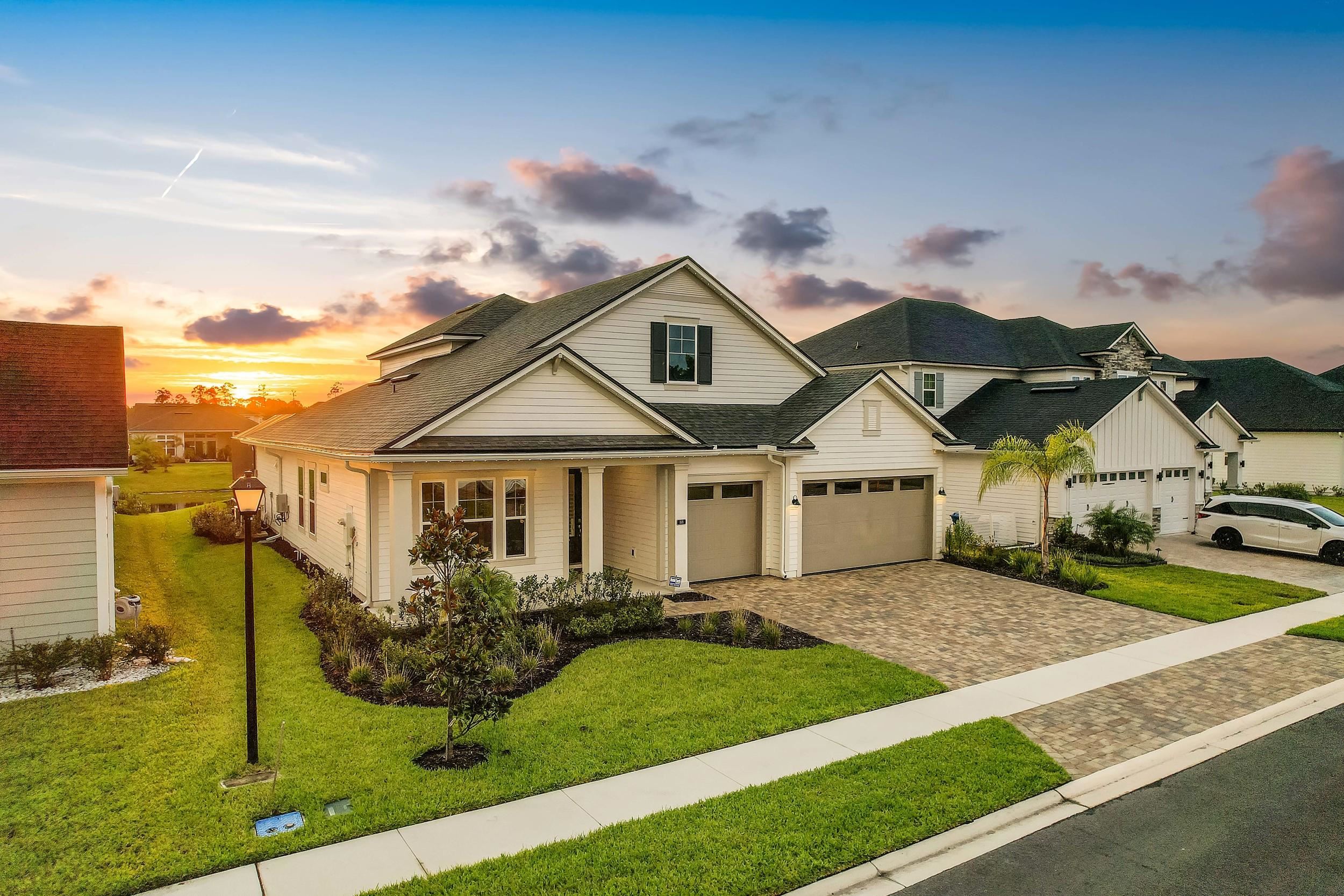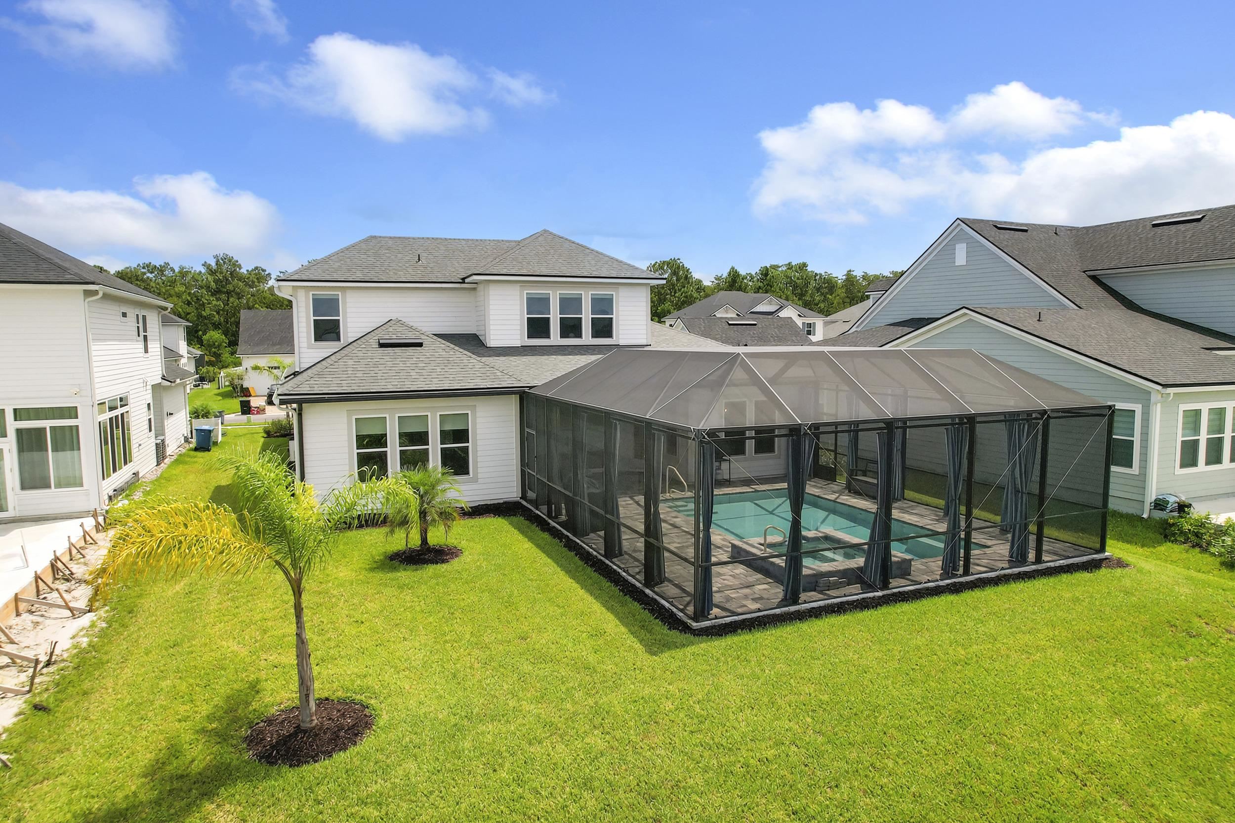 Built in 2023 by MasterCraft Builder Group, this beautifully upgraded 5-bedroom, 4-bath home offers 3, 239 sq. ft. of thoughtfully designed living space in the highly sought-after SilverLeaf community. Unlike many competing new construction homes, this property is fully completed and move-in ready, allowing you to skip the wait, avoid costly upgrades, and start enjoying your home immediately. Step inside to an open-concept floor plan featuring soaring ceilings, expansive living spaces, and abundant natural light that creates a bright, airy atmosphere throughout. The gourmet kitchen anchors the home with quartz countertops, custom cabinetry, an oversized island, walk-in pantry, and premium stainless-steel appliances—perfect for both entertaining and everyday living. The great room and dining area flow seamlessly, offering an ideal layout for gatherings. The private owner’s suite is a true retreat, showcasing a spa-inspired bathroom with dual vanities, a freestanding soaking tub, and an oversized walk-in shower with both a rain shower head and additional wall-mounted shower head. A spacious walk-in closet conveniently connects to the laundry room. A split-bedroom design ensures privacy for family and guests, while the upstairs bonus suite with a full bath provides flexible space for a guest retreat, home office, or media room. Where this home truly shines is outdoors. Step into your own private backyard oasis featuring a heated pool and spa-like sauna, designed for year-round relaxation and luxury living. This resort-style outdoor space creates the ultimate setting for entertaining, unwinding, and enjoying Florida living at its finest. Whether you're hosting sunset gatherings, enjoying a quiet morning by the pool, or creating a wellness-inspired retreat, this eutopic outdoor living experience elevates everyday life. Located in SilverLeaf, residents enjoy resort-style amenities including multiple pools, clubhouse, fitness center, playgrounds, dog parks, and scenic walking trails, all within close proximity to top-rated St. Johns County schools. Even better, this property requires NO CDD fees, providing exceptional value and lower long-term costs in one of the area’s premier communities.