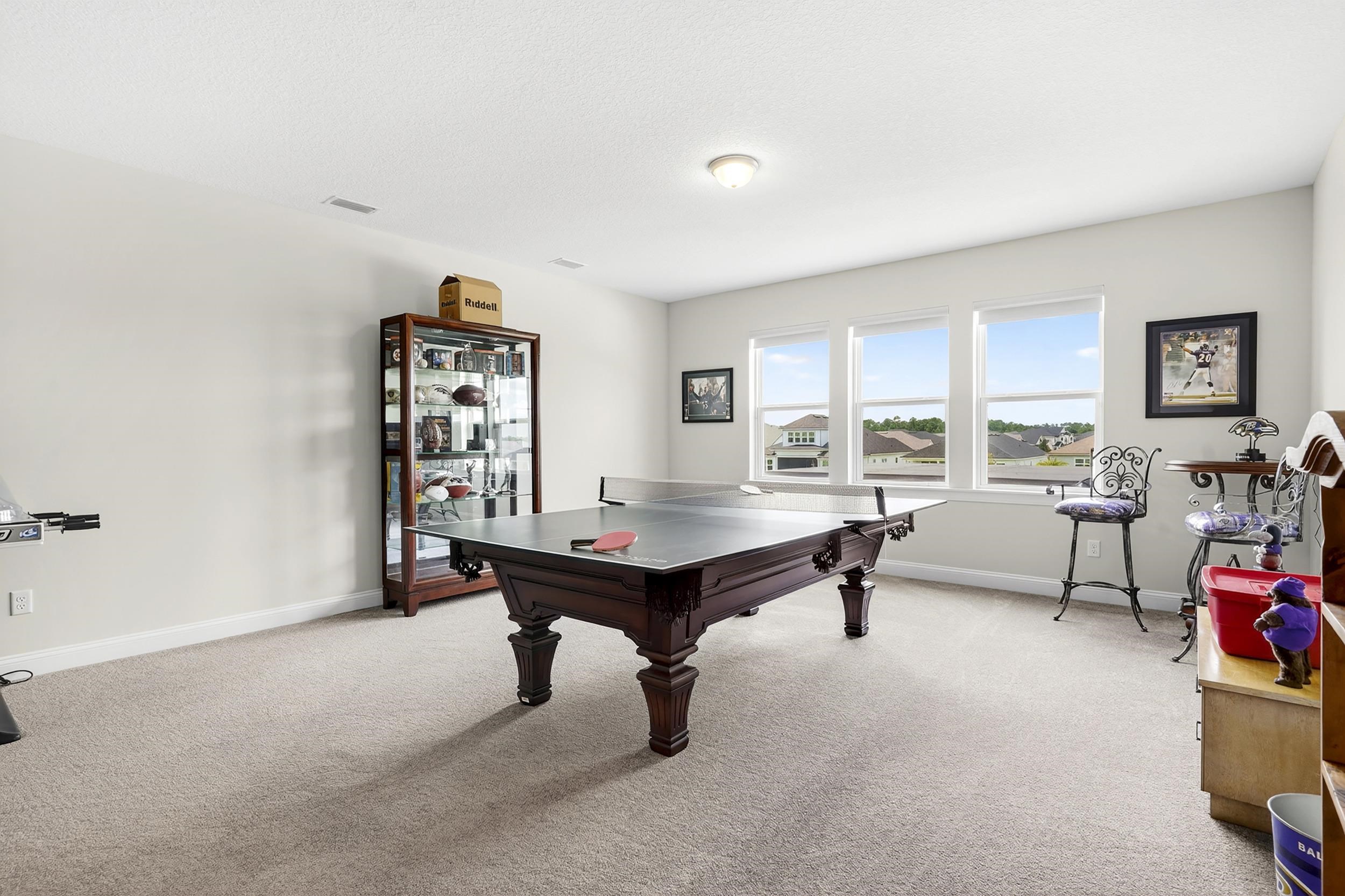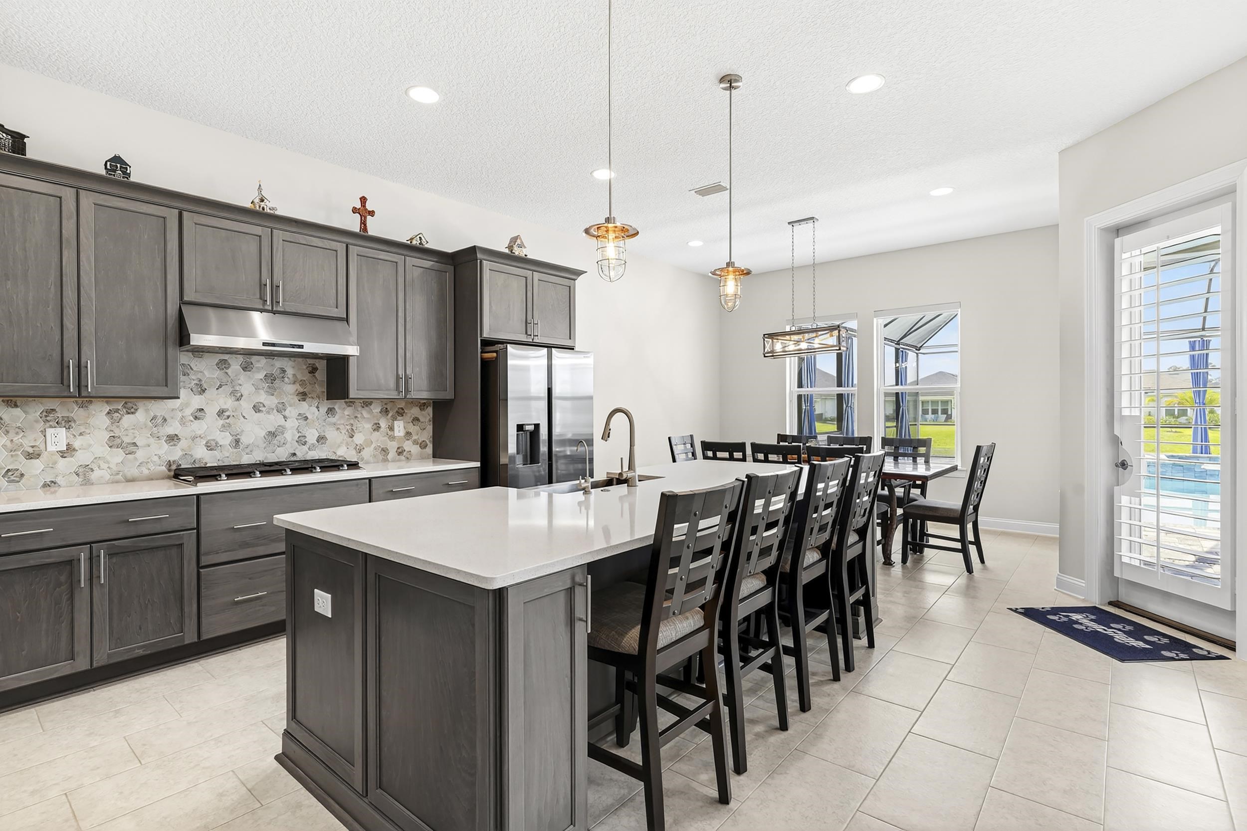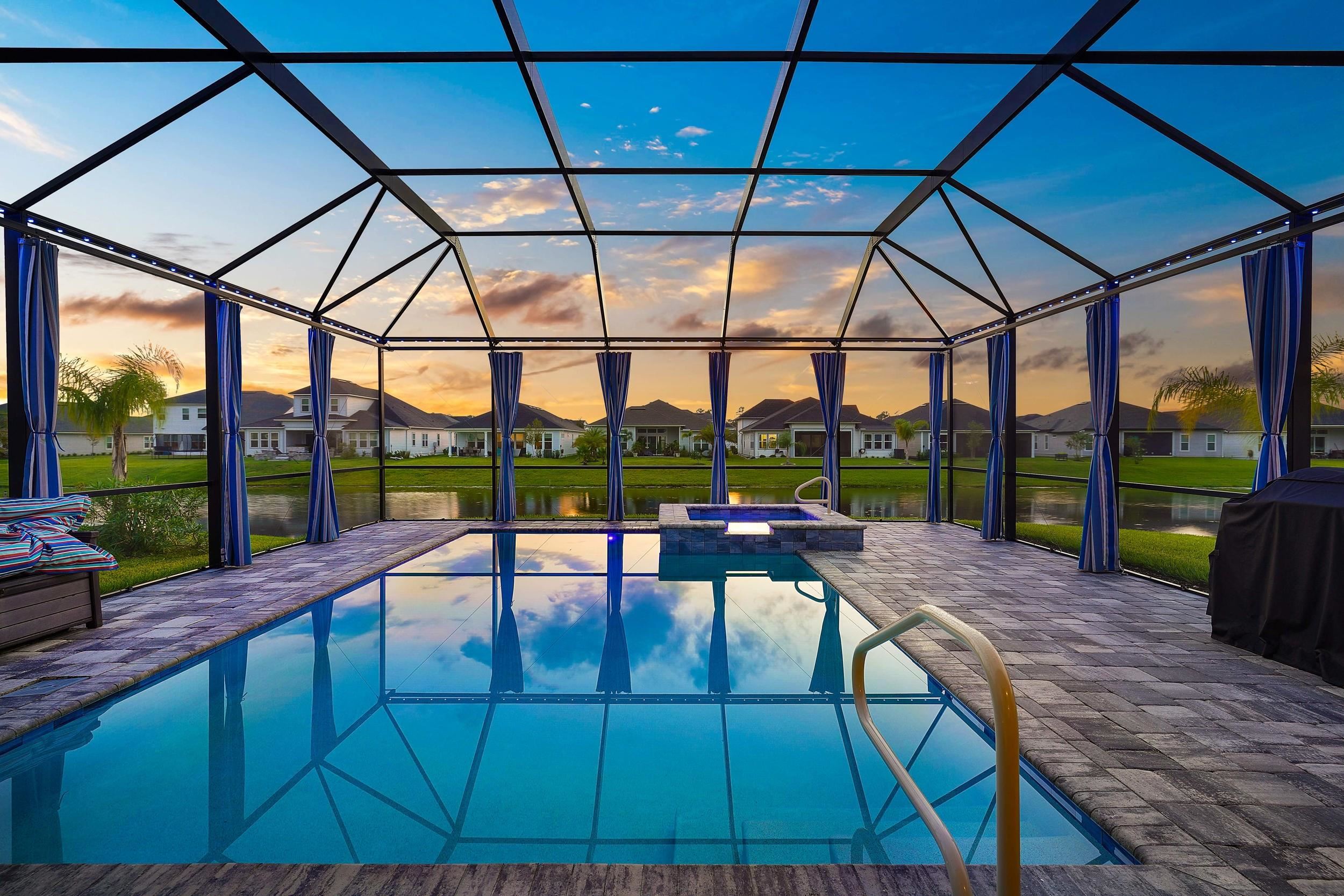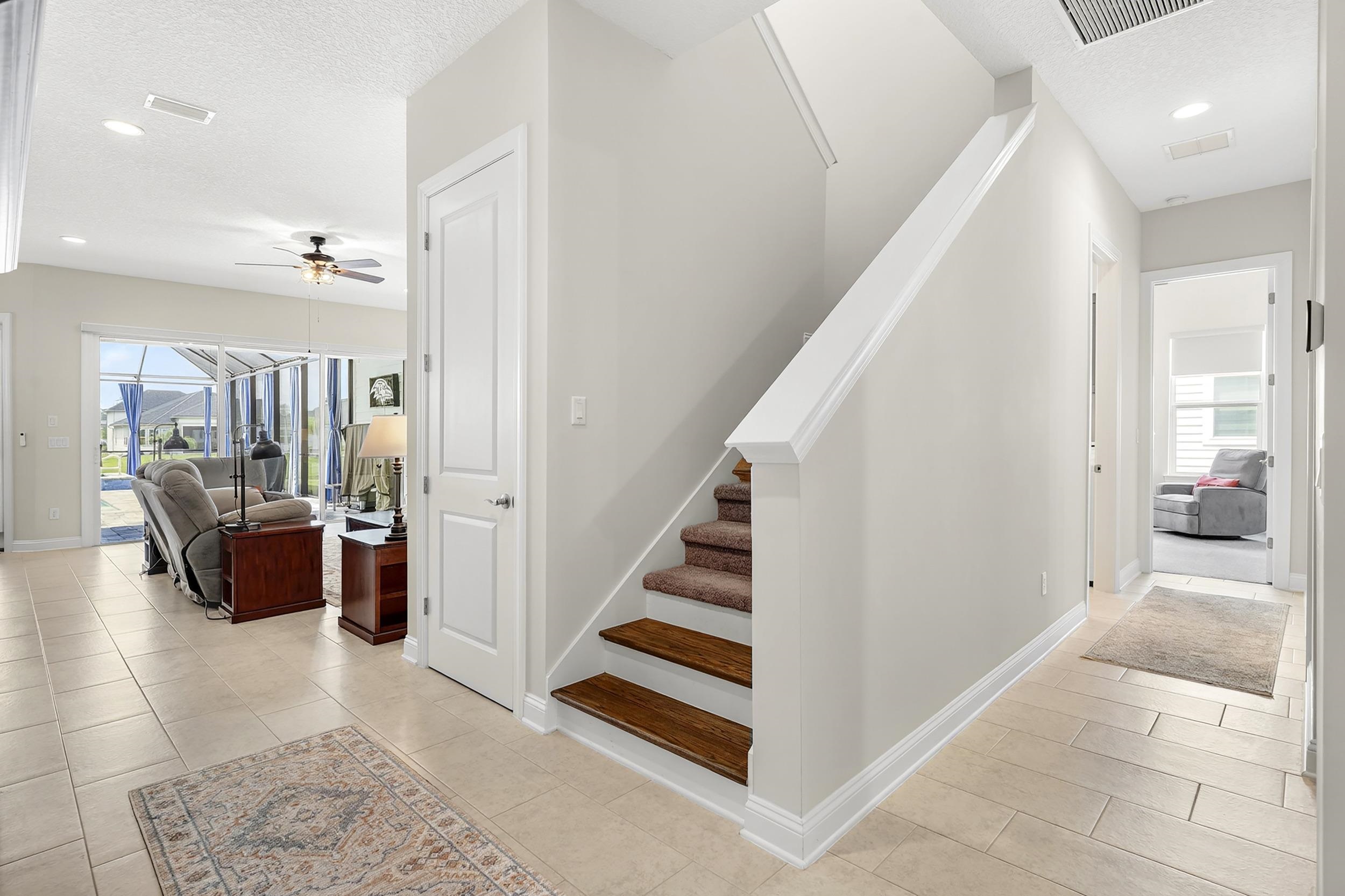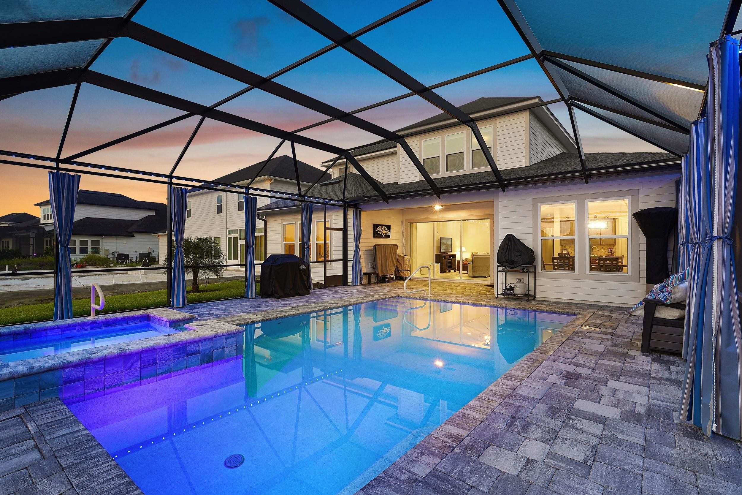 Built in 2023 by MasterCraft Builder Group, this beautifully upgraded 5-bedroom, 4-bath home offers 3, 239 sq. ft. of thoughtfully designed living space in the highly sought-after SilverLeaf community. Unlike many competing new construction homes, this property is fully completed and move-in ready, allowing you to skip the wait, avoid costly upgrades, and start enjoying your home immediately. Step inside to an open-concept floor plan featuring soaring ceilings, expansive living spaces, and abundant natural light that creates a bright, airy atmosphere throughout. The gourmet kitchen anchors the home with quartz countertops, custom cabinetry, an oversized island, walk-in pantry, and premium stainless-steel appliances—perfect for both entertaining and everyday living. The great room and dining area flow seamlessly, offering an ideal layout for gatherings. The private owner’s suite is a true retreat, showcasing a spa-inspired bathroom with dual vanities, a freestanding soaking tub, and an oversized walk-in shower with both a rain shower head and additional wall-mounted shower head. A spacious walk-in closet conveniently connects to the laundry room. A split-bedroom design ensures privacy for family and guests, while the upstairs bonus suite with a full bath provides flexible space for a guest retreat, home office, or media room. Where this home truly shines is outdoors. Step into your own private backyard oasis featuring a heated pool and spa-like sauna, designed for year-round relaxation and luxury living. This resort-style outdoor space creates the ultimate setting for entertaining, unwinding, and enjoying Florida living at its finest. Whether you're hosting sunset gatherings, enjoying a quiet morning by the pool, or creating a wellness-inspired retreat, this eutopic outdoor living experience elevates everyday life. Located in SilverLeaf, residents enjoy resort-style amenities including multiple pools, clubhouse, fitness center, playgrounds, dog parks, and scenic walking trails, all within close proximity to top-rated St. Johns County schools. Even better, this property requires NO CDD fees, providing exceptional value and lower long-term costs in one of the area’s premier communities.