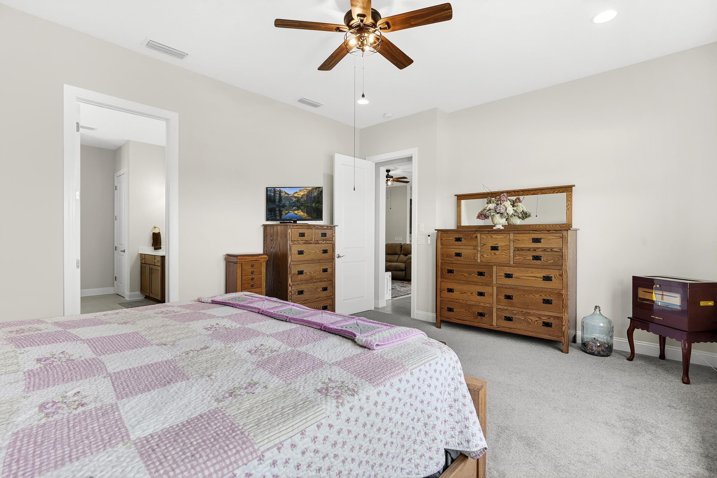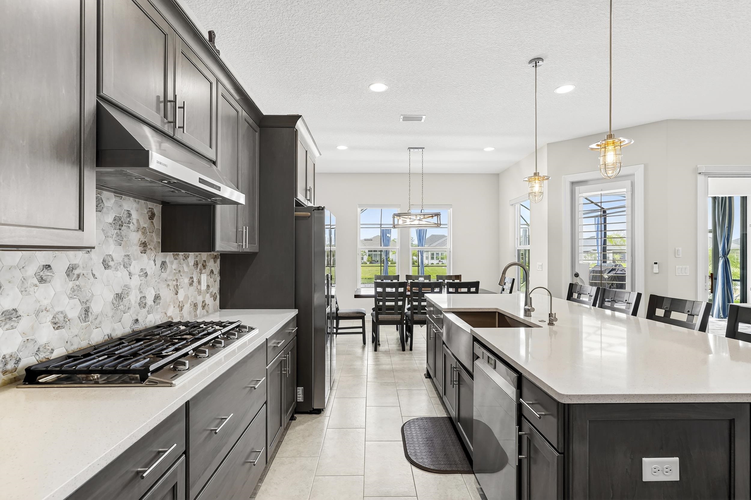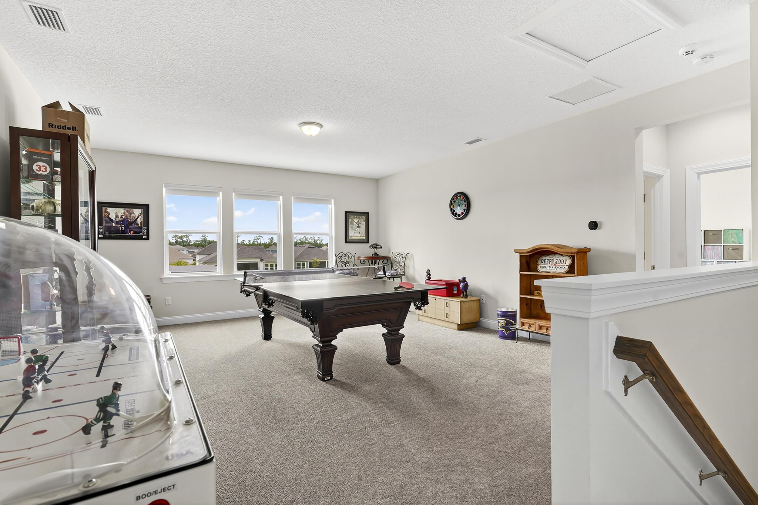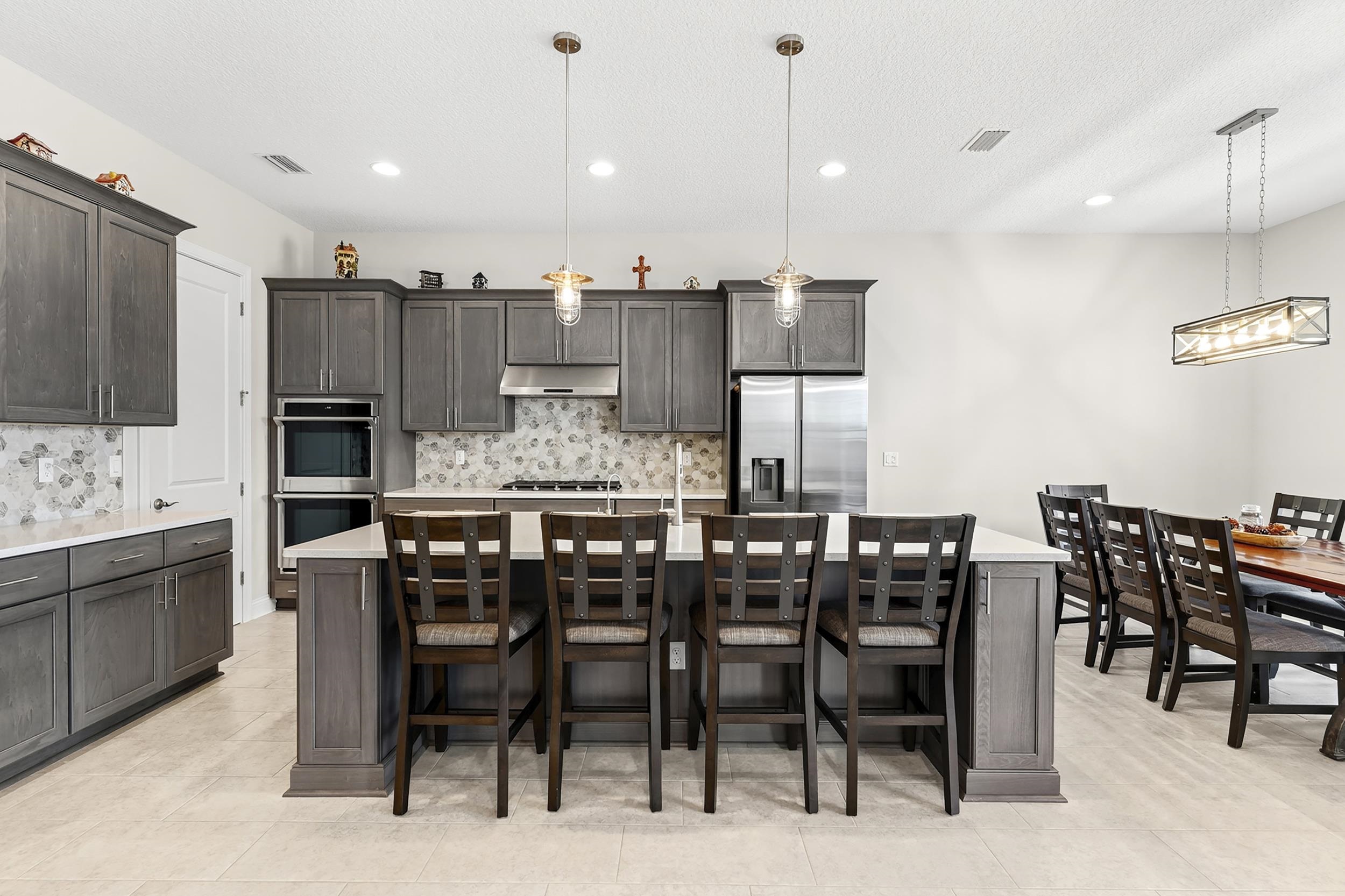 Built in 2023 by MasterCraft Builder Group, this beautifully upgraded 5-bedroom, 4-bath home offers 3, 239 sq. ft. of thoughtfully designed living space in the highly sought-after SilverLeaf community. Unlike many competing new construction homes, this property is fully completed and move-in ready, allowing you to skip the wait, avoid costly upgrades, and start enjoying your home immediately. Step inside to an open-concept floor plan featuring soaring ceilings, expansive living spaces, and abundant natural light that creates a bright, airy atmosphere throughout. The gourmet kitchen anchors the home with quartz countertops, custom cabinetry, an oversized island, walk-in pantry, and premium stainless-steel appliances—perfect for both entertaining and everyday living. The great room and dining area flow seamlessly, offering an ideal layout for gatherings. The private owner’s suite is a true retreat, showcasing a spa-inspired bathroom with dual vanities, a freestanding soaking tub, and an oversized walk-in shower with both a rain shower head and additional wall-mounted shower head. A spacious walk-in closet conveniently connects to the laundry room. A split-bedroom design ensures privacy for family and guests, while the upstairs bonus suite with a full bath provides flexible space for a guest retreat, home office, or media room. Where this home truly shines is outdoors. Step into your own private backyard oasis featuring a heated pool and spa-like sauna, designed for year-round relaxation and luxury living. This resort-style outdoor space creates the ultimate setting for entertaining, unwinding, and enjoying Florida living at its finest. Whether you're hosting sunset gatherings, enjoying a quiet morning by the pool, or creating a wellness-inspired retreat, this eutopic outdoor living experience elevates everyday life. Located in SilverLeaf, residents enjoy resort-style amenities including multiple pools, clubhouse, fitness center, playgrounds, dog parks, and scenic walking trails, all within close proximity to top-rated St. Johns County schools. Even better, this property requires NO CDD fees, providing exceptional value and lower long-term costs in one of the area’s premier communities.