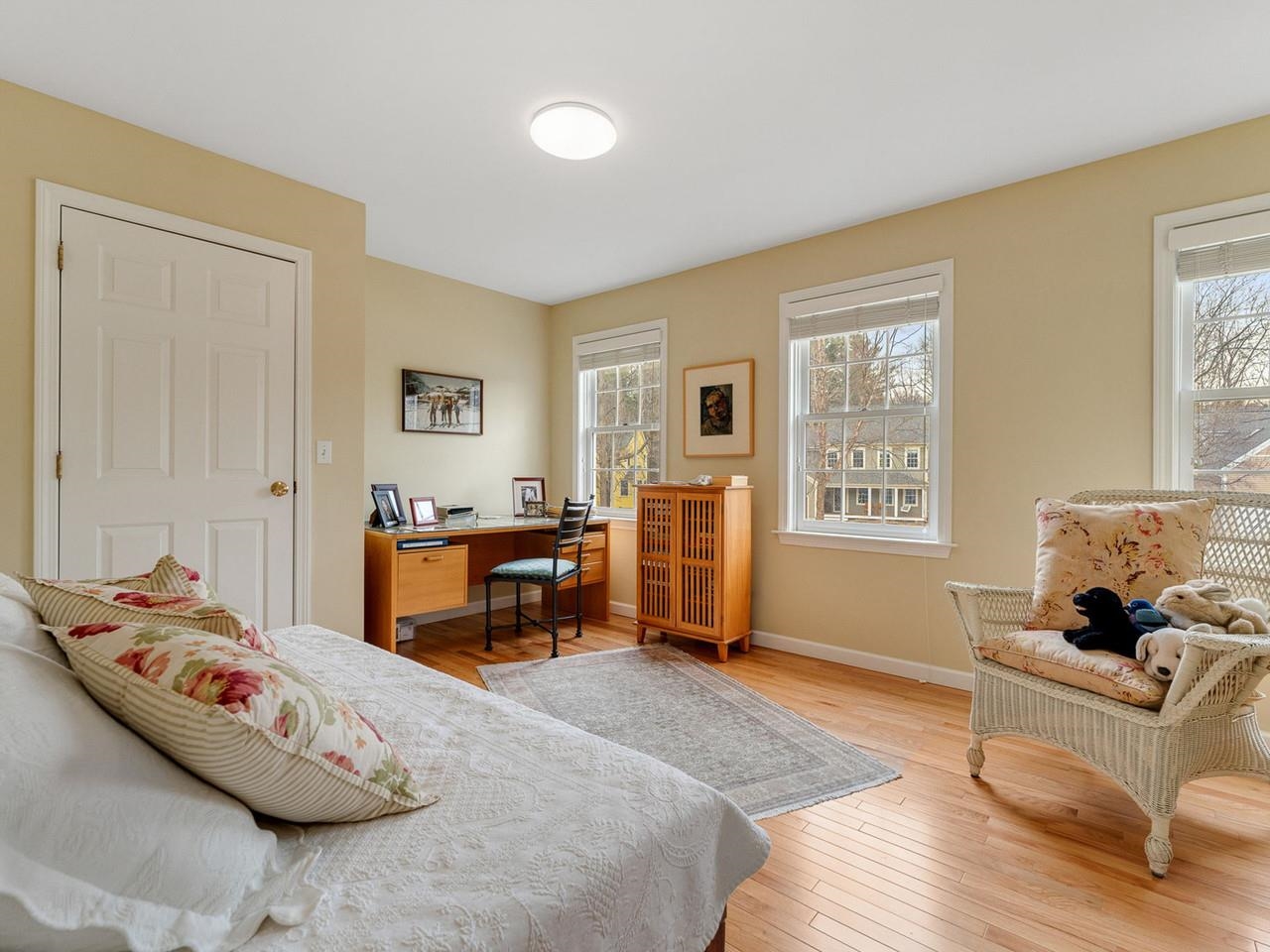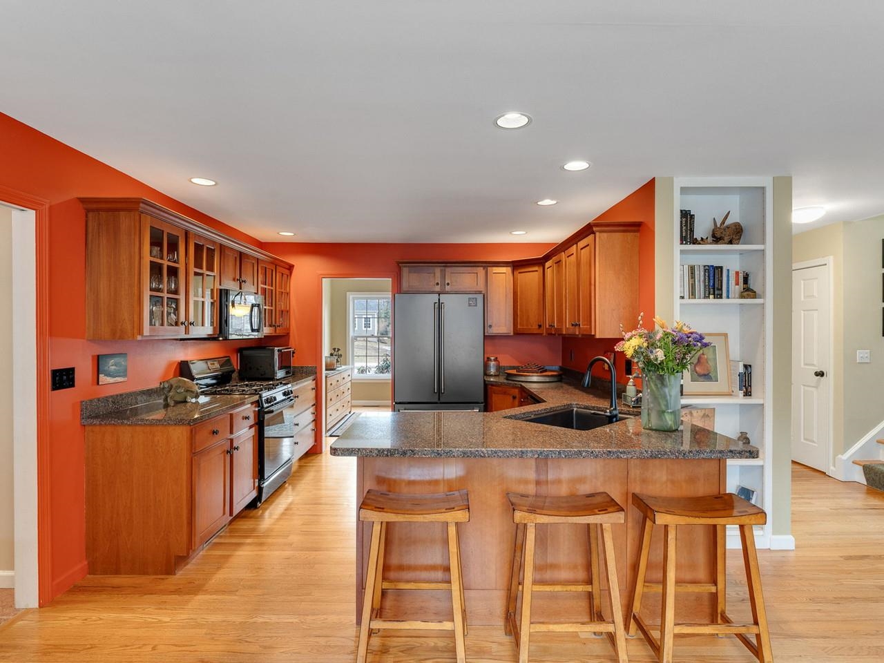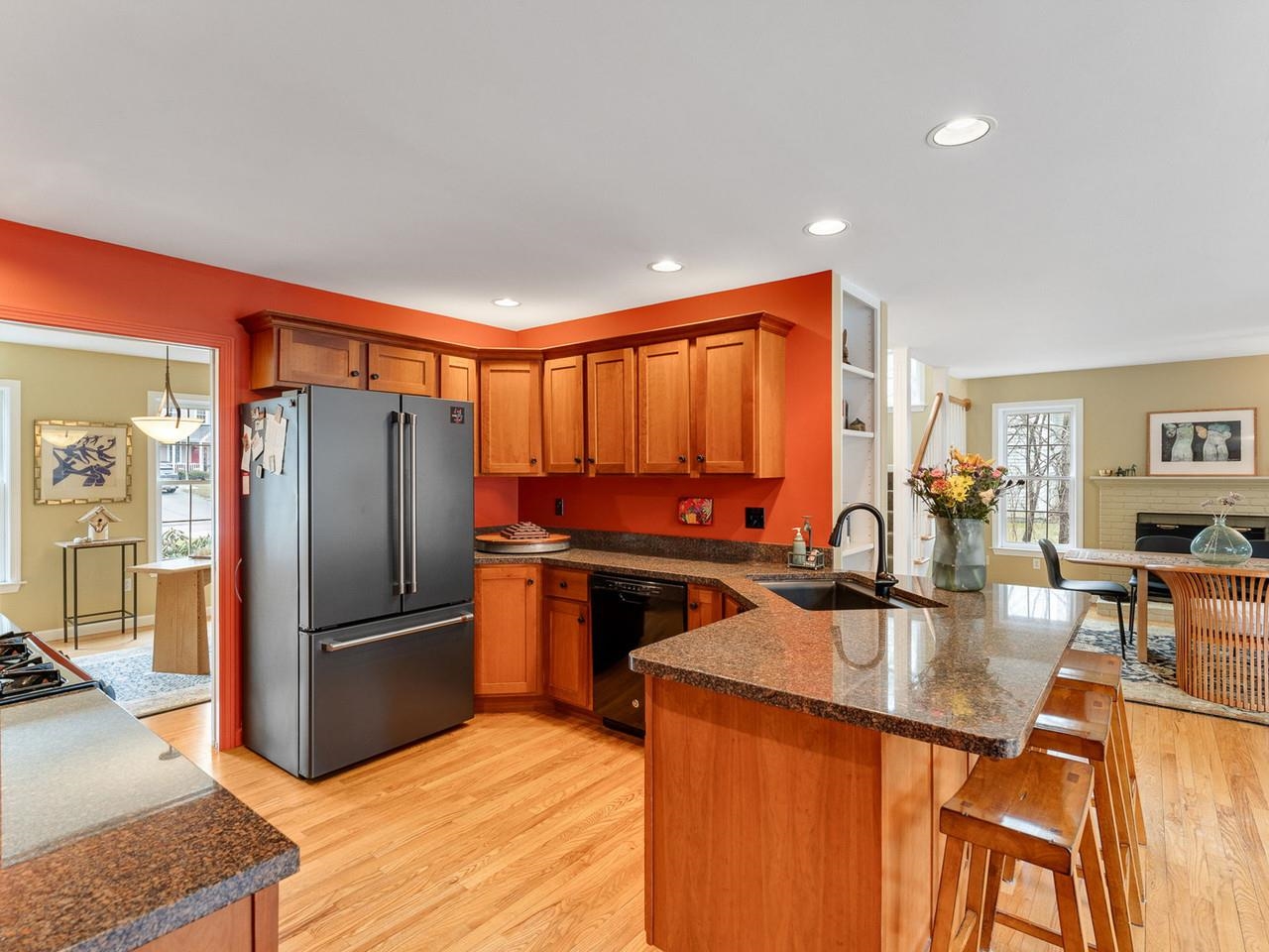 Tucked at the end of a cul-de-sac in Shelburne’s Stonegate neighborhood, this elegant home offers refined Vermont living surrounded by privacy and natural beauty. Set on a half-acre lot, the property enjoys a rare sense of openness within a neighborhood setting while remaining minutes from the village and Lake Champlain. Sunlight fills the interior through oversized windows and a bay window, illuminating more than 2, 800 square feet of thoughtfully designed living space. The main level flows effortlessly between gathering areas, creating an ideal setting for both everyday living and entertaining. At the heart of the home sits the living room with vaulted ceilings, recessed lighting, and French doors from the family room that lead to a hardwood deck overlooking the private backyard, offering a perfect setting for outdoor dining and summer evenings. The kitchen features rich cherry cabinetry, a new kitchen sink, granite countertops, and a gas range. A generous peninsula offers casual seating, while the adjoining breakfast area comfortably accommodates larger gatherings. An expansive mudroom off the garage adds an ease to your daily living. Two additional rooms that could be a library or home office compliment the spacious first floor. Upstairs, four bedrooms provide comfortable accommodations, including a spacious primary suite with a vaulted ceiling, sitting area, and dual closets including a walk-in with custom built-ins. Two full baths and convenient second floor laundry complete the level. Additional highlights include a new roof (2020), central air conditioning (2024), new hardwood flooring on the second floor (2017), new irrigation system (2021), resurfaced driveway (2024), and an extra deep garage designed to accommodate outdoor gear for Vermont living. Positioned within one of Shelburne’s most established neighborhoods, this meticulously maintained home is ready for its next owner!