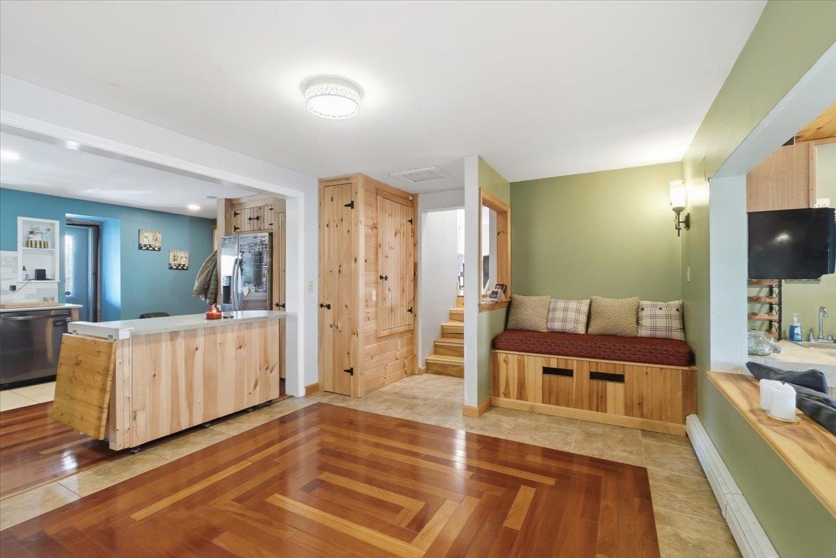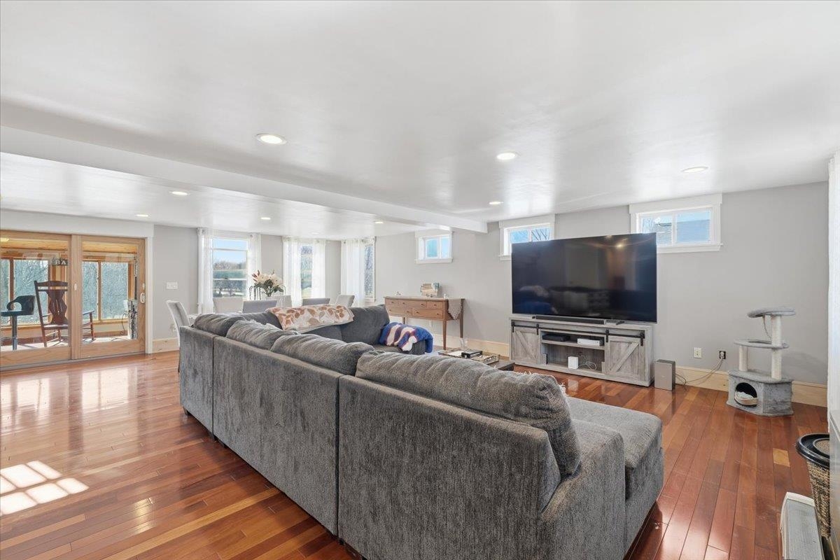 Located at the end of a quiet dead-end road, this year-round 4-bedroom, 3-bath Cape-style home in Alburgh sits on 0. 93 acres and offers over 3, 000 sq ft of finished living space. Built in 2005 with a large garage addition completed in 2010, the home features Brazilian cherry floors, tile, pine accents, and abundant natural light throughout. The kitchen includes quartz countertops, tile backsplash, double wall ovens, an electric range with pot filler, pantry storage, and ample workspace. Multiple living areas provide plenty of room to entertain, including a spacious living room, front sitting room with coffee/wet bar, bright three-season porch, and covered back deck. The primary bedroom offers oak floors, cathedral ceilings, a walk-in closet, and large storage space, along with access to a bathroom featuring a jetted tub. The finished walk-out basement expands the living space with a ¾ bathroom, three bonus rooms, and utility area. Additional features include central vacuum, solar panels, and an attached 2-car garage with front and rear doors. Conveniently located near Lake Champlain and Alburgh Village, the property is just 30 minutes to St. Albans or Plattsburgh and about one hour to Burlington, Montreal, and major ski resorts including Jay Peak and Smugglers’ Notch.