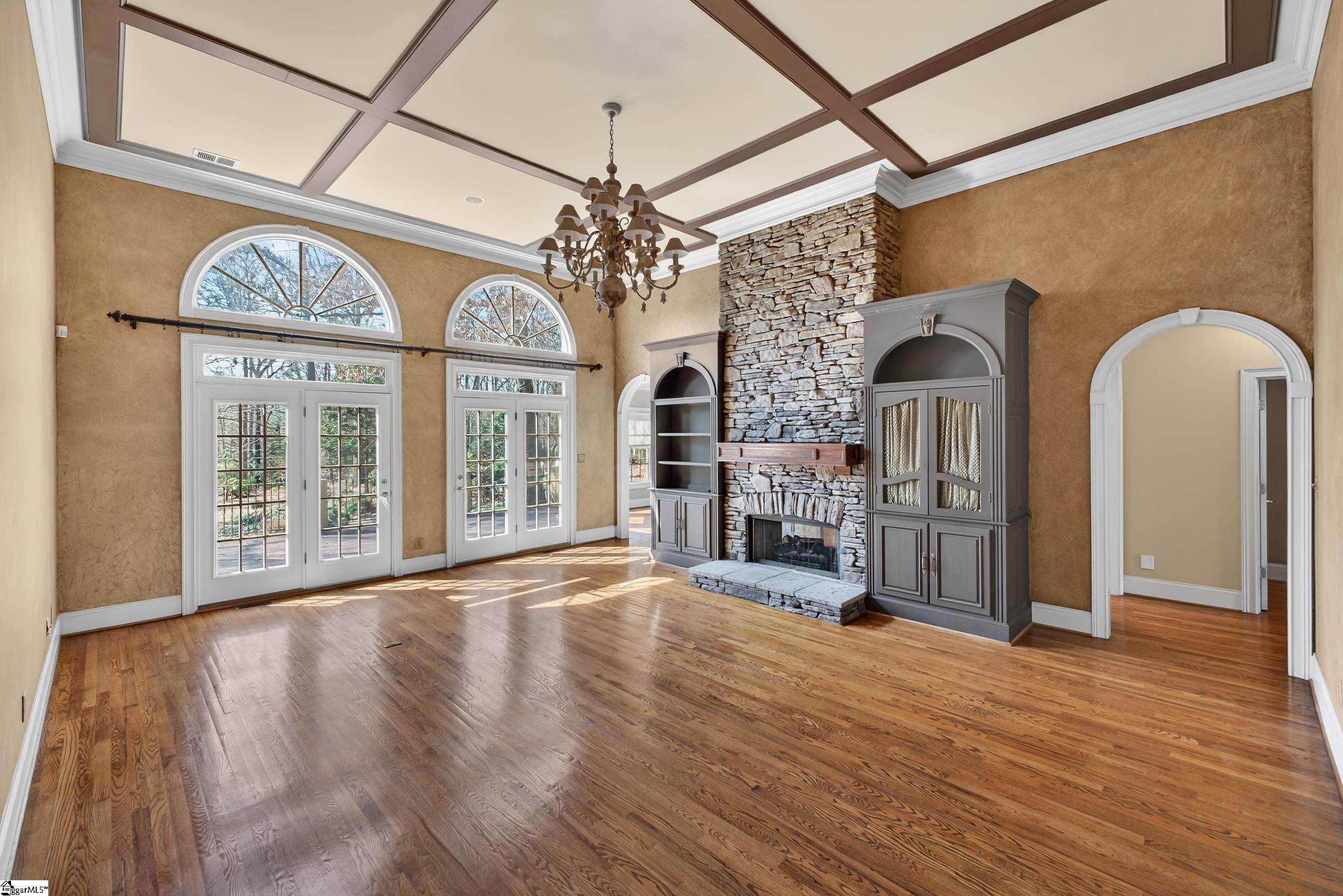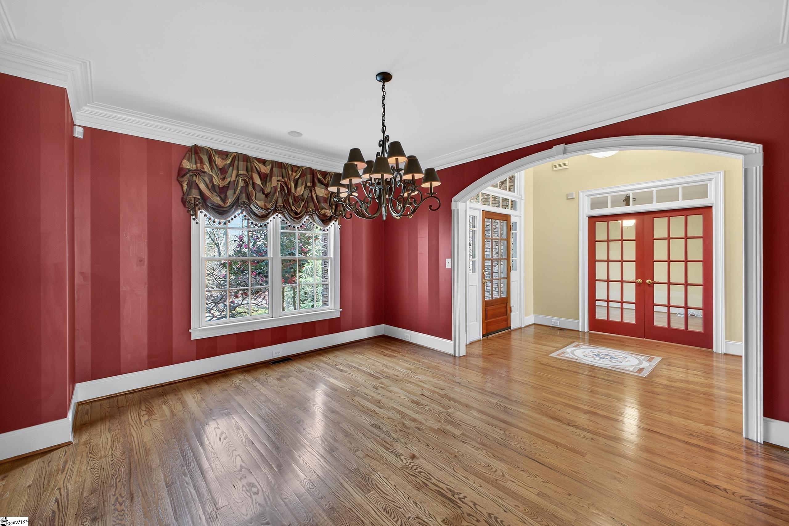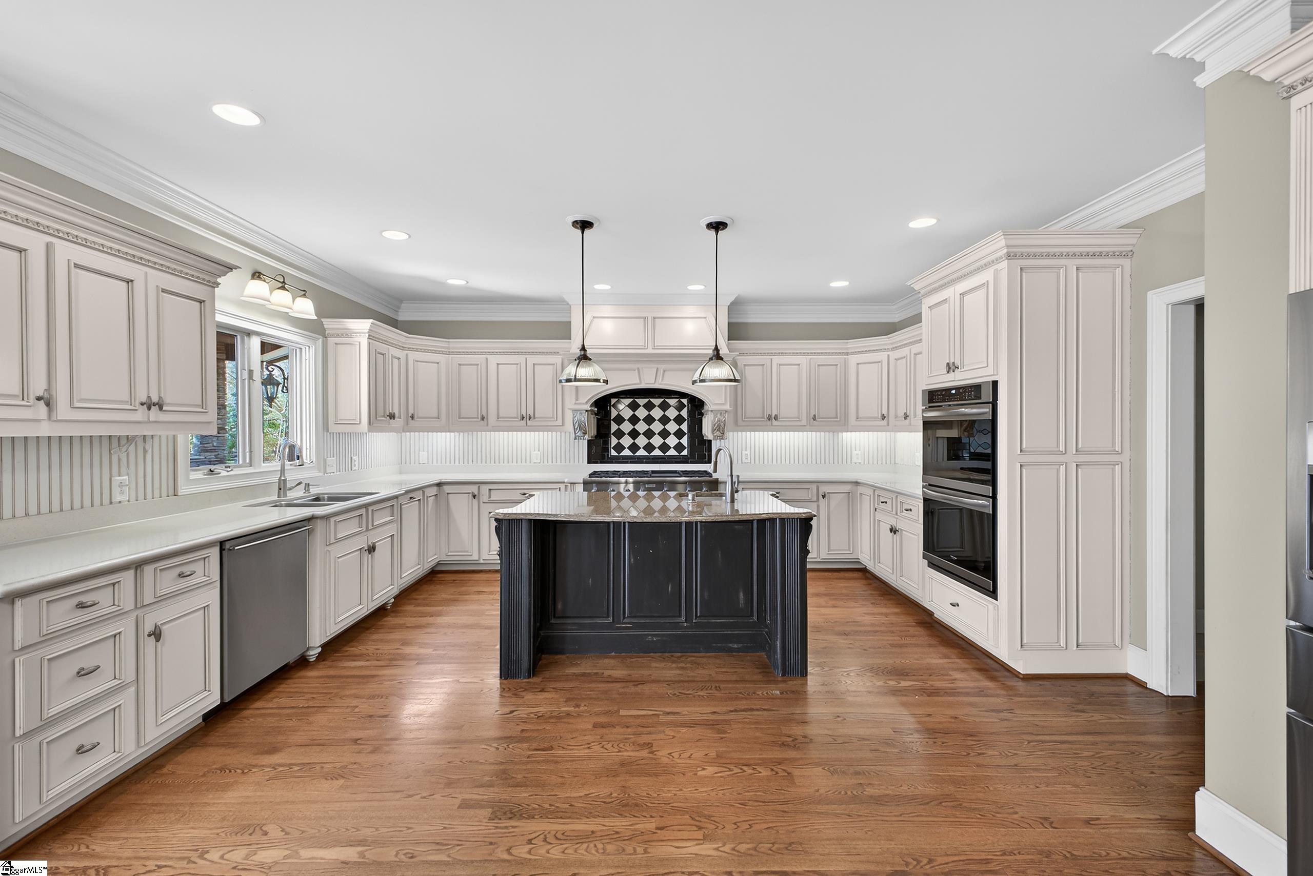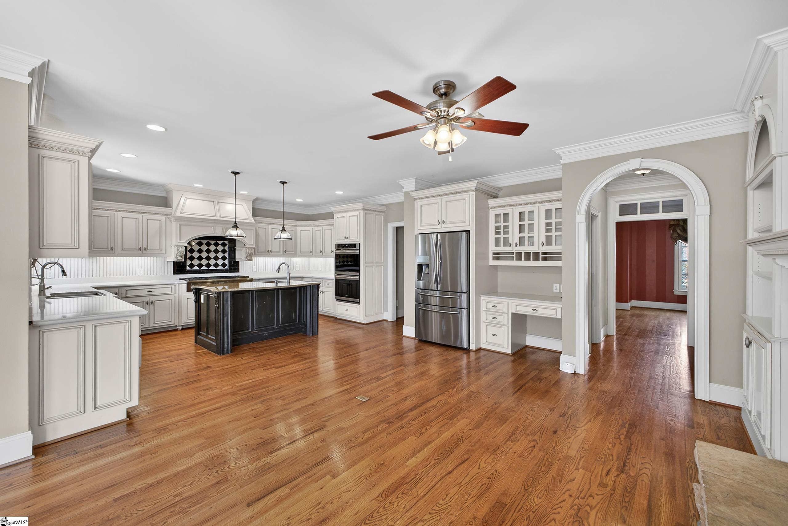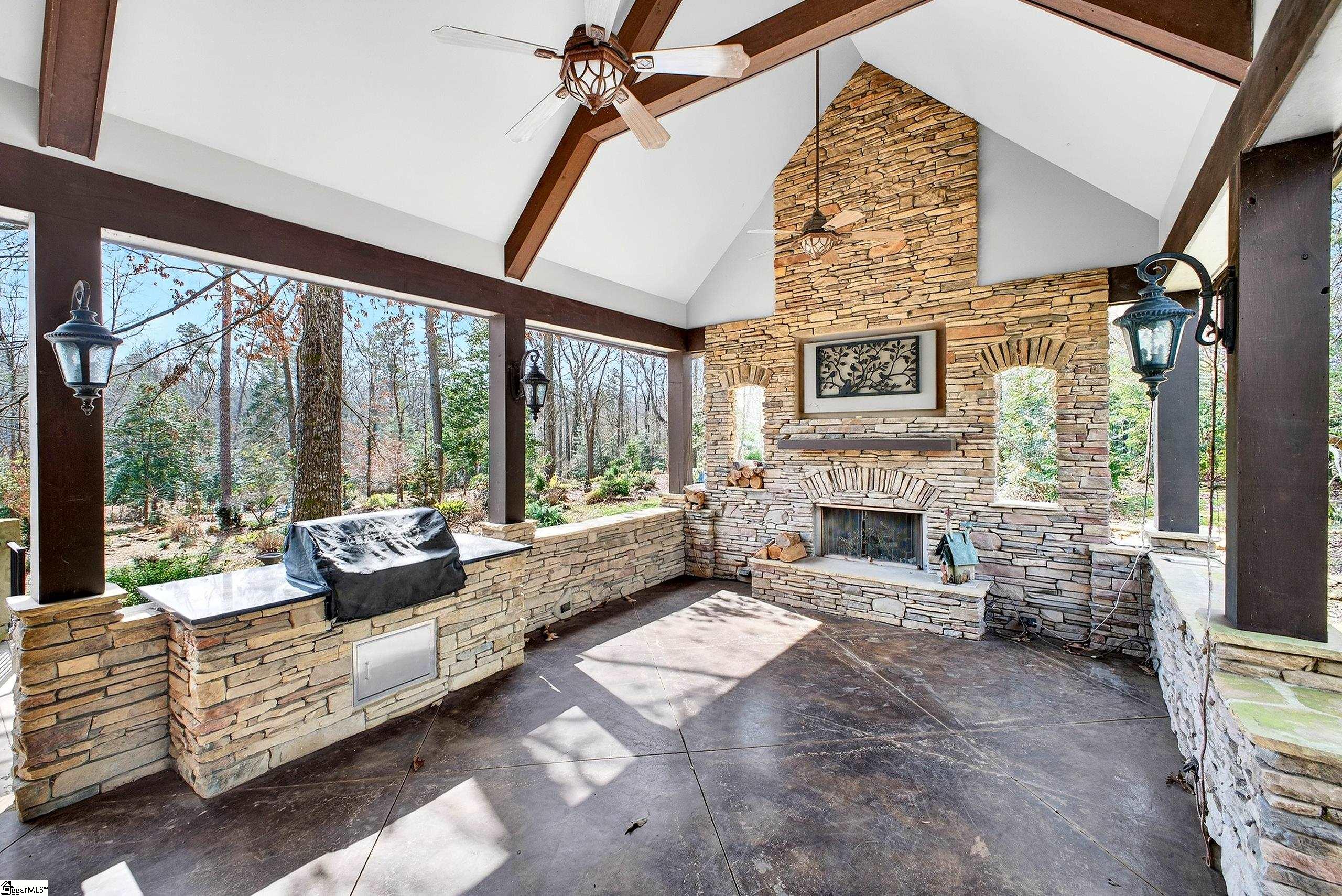 Welcome to your gracious, resort-style retreat on 2. 7 acres of mature trees, tucked on a quiet cul-de-sac with easy access to Pelham Rd and Woodruff, and 10 minutes to GSP. This over 5, 000 sq ft, 5-bedroom, 4. 5-bath custom home, invites you with a welcoming foyer, and elegant formal dining and living spaces. The heart of the home features a sunlit central family room with high ceilings, patio doors opening to a large deck overlooking the beautiful backyard, and a stone fireplace that also opens to a keeping room, breakfast room and the chef’s kitchen—complete with a 6-burner Thermador cooktop, double ovens, and a large island. Step outdoors to a beautiful covered porch with a fireplace, built-in grill, and retractable blinds, perfect for year-round gatherings. The primary suite on the main offers serene views of the backyard and a spa-like ensuite with double vanity, walk-in shower, separate tub, and a spacious walk-in closet. Upstairs, three bedrooms, a Jack-and-Jill bath, ensuite bath and a playroom provide flexible spaces for family life. The expansive basement includes a bedroom and bath, a large office, and a generous gathering room with a stone fireplace, plus walk-out access to the yard. Offering perfect space for guests or an in-law suite. Practical comforts abound: laundry with sink, central vac, recently installed HVACs (12/2024), and both an attached 2-car garage and a detached 2-car garage with extra storage, plus a circular drive for effortless arrivals. The grounds have been lovingly cared for by a master gardener, creating inviting outdoor rooms and year-round beauty. This home blends space, warmth, and sophisticated outdoor living—make it yours with a private showing today.