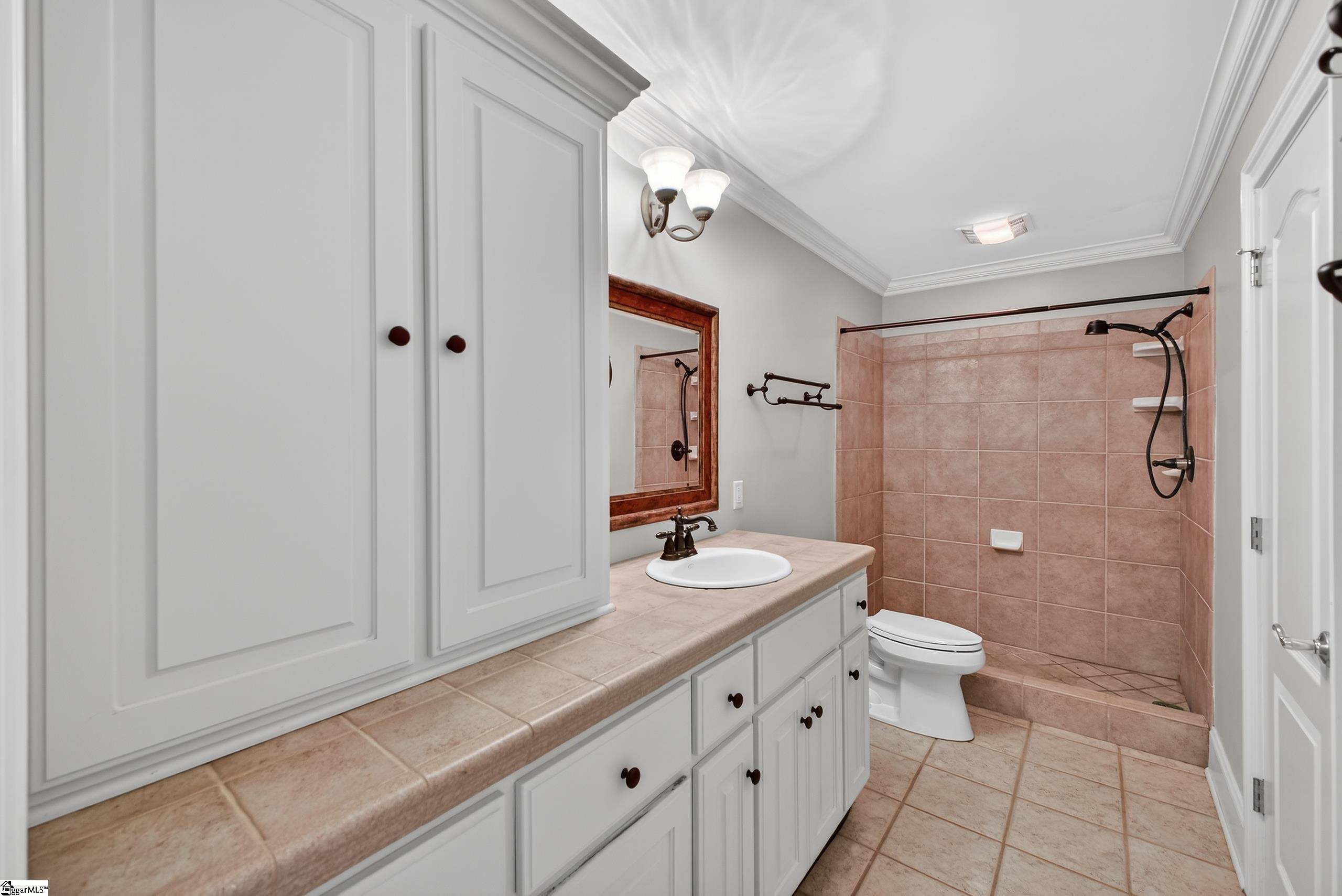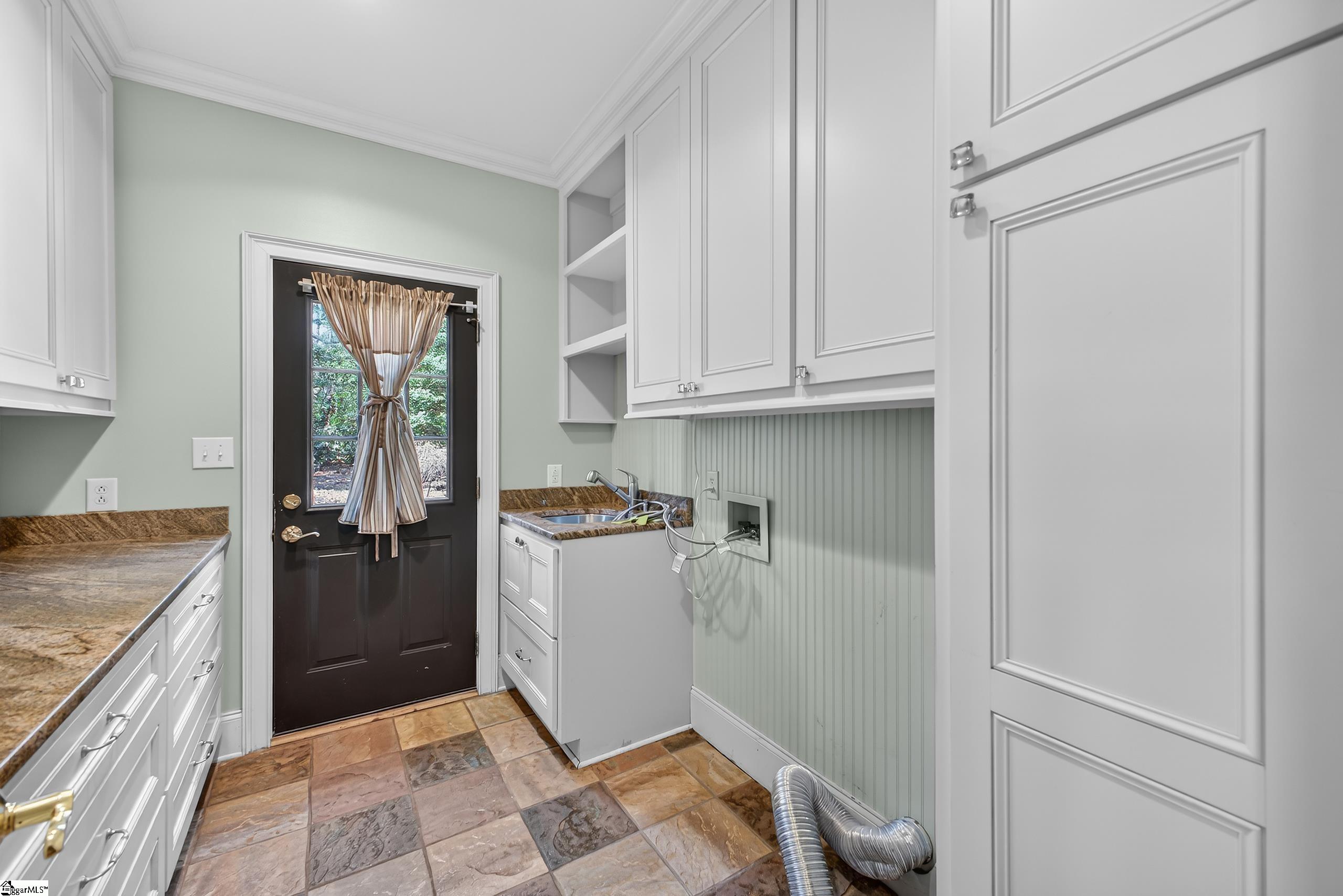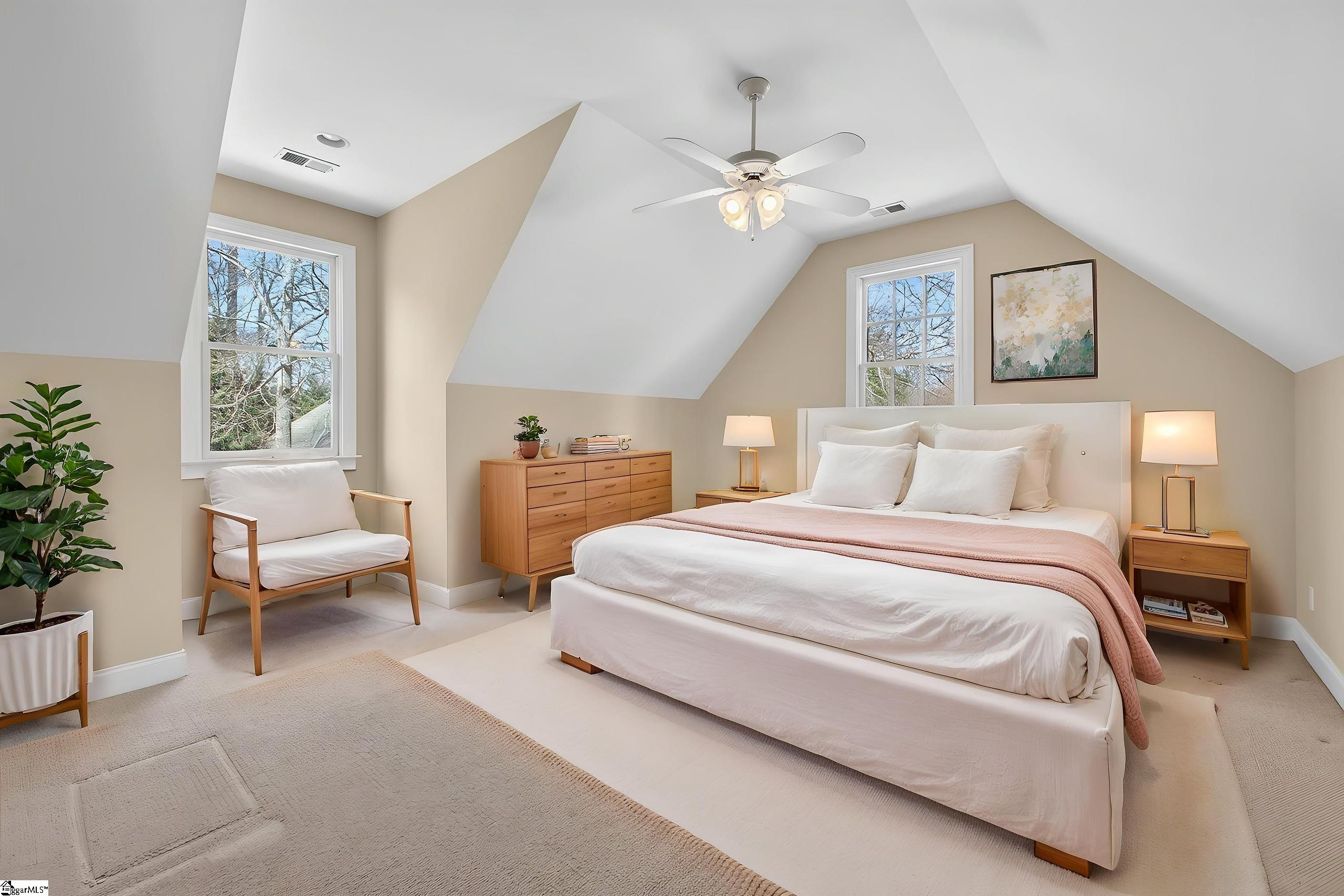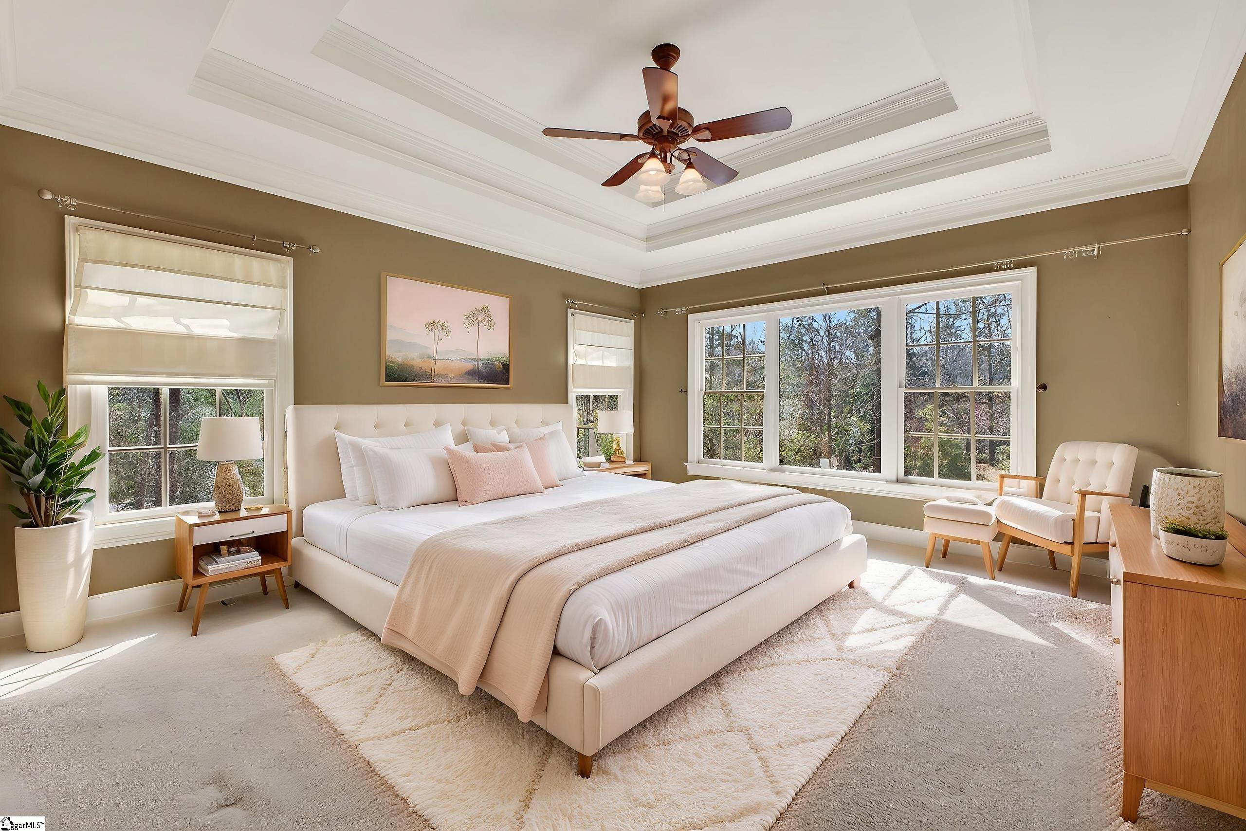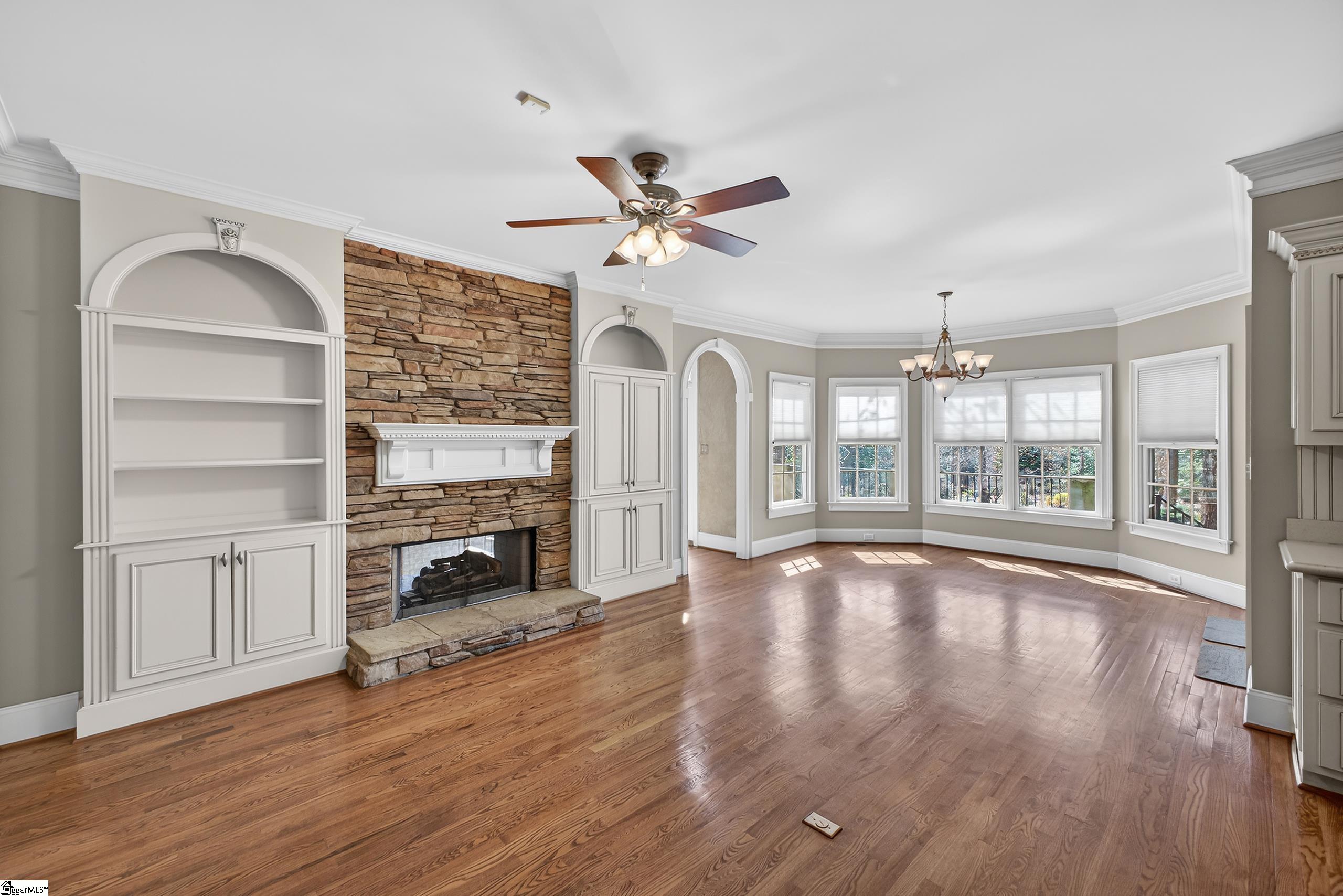 Welcome to your gracious, resort-style retreat on 2. 7 acres of mature trees, tucked on a quiet cul-de-sac with easy access to Pelham Rd and Woodruff, and 10 minutes to GSP. This over 5, 000 sq ft, 5-bedroom, 4. 5-bath custom home, invites you with a welcoming foyer, and elegant formal dining and living spaces. The heart of the home features a sunlit central family room with high ceilings, patio doors opening to a large deck overlooking the beautiful backyard, and a stone fireplace that also opens to a keeping room, breakfast room and the chef’s kitchen—complete with a 6-burner Thermador cooktop, double ovens, and a large island. Step outdoors to a beautiful covered porch with a fireplace, built-in grill, and retractable blinds, perfect for year-round gatherings. The primary suite on the main offers serene views of the backyard and a spa-like ensuite with double vanity, walk-in shower, separate tub, and a spacious walk-in closet. Upstairs, three bedrooms, a Jack-and-Jill bath, ensuite bath and a playroom provide flexible spaces for family life. The expansive basement includes a bedroom and bath, a large office, and a generous gathering room with a stone fireplace, plus walk-out access to the yard. Offering perfect space for guests or an in-law suite. Practical comforts abound: laundry with sink, central vac, recently installed HVACs (12/2024), and both an attached 2-car garage and a detached 2-car garage with extra storage, plus a circular drive for effortless arrivals. The grounds have been lovingly cared for by a master gardener, creating inviting outdoor rooms and year-round beauty. This home blends space, warmth, and sophisticated outdoor living—make it yours with a private showing today.