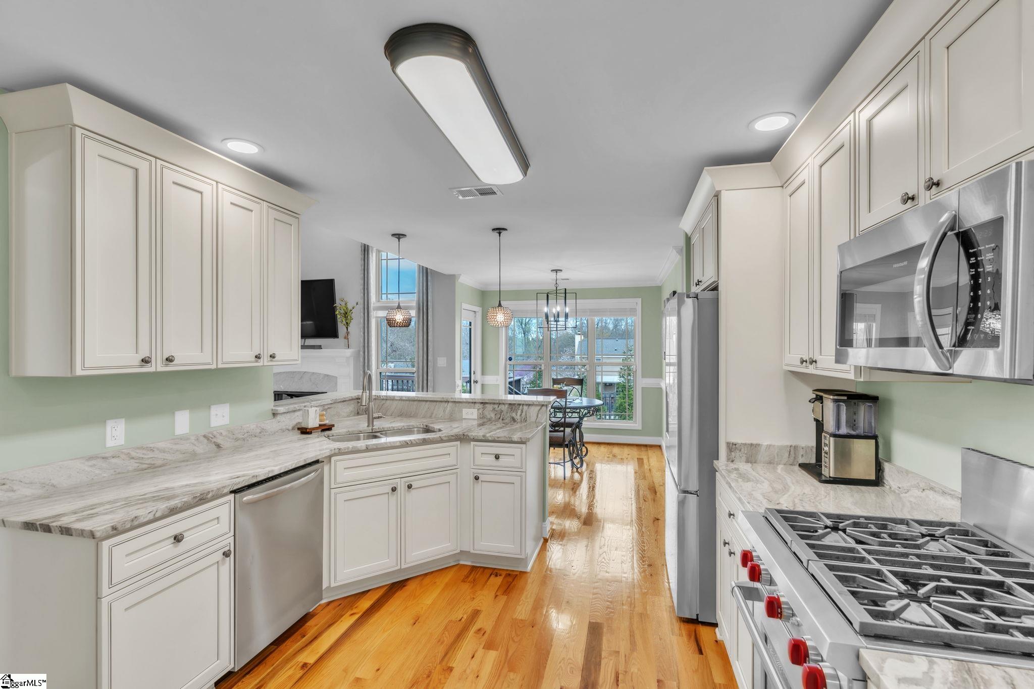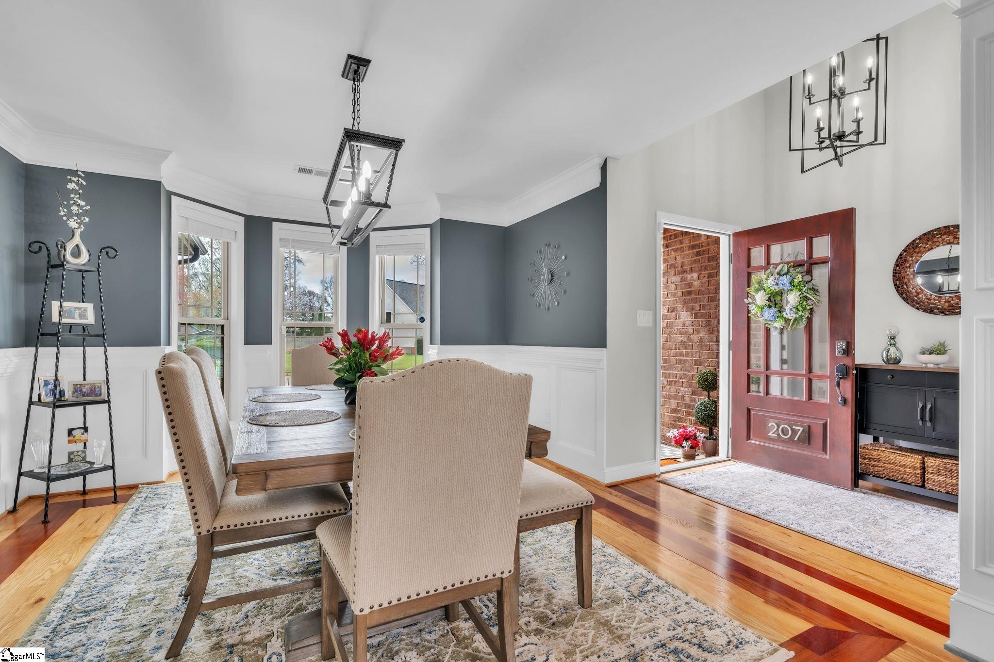Turn key home in sought after Five Forks! This stunning, impeccably maintained 5-bedroom, 3 full-bath home features a desirable floor plan with a luxurious primary suite on the main level, along with two additional bedrooms and a full bath on the opposite side of the home. Upstairs offers two more spacious rooms and a third full bath—any of which can easily serve as flexible space for a home office, guest retreat, or bonus room. Located conveniently near the vibrant shopping and dining options of the Woodruff Corridor, this home is nestled on a generous double . 80-acre flat lot in a well-established neighborhood. The exterior boasts a striking blend of brick and stacked stone, with vinyl siding tastefully applied to the sides and back. Enjoy outdoor living at its finest in a fenced yard with a spacious elevated wood deck and a large patio, perfect for BBQs on those delightful Carolina nights. Step inside to be greeted by elegant surroundings featuring gleaming hardwood floors and a formal dining room. The great room impresses with a 12-foot-high ceiling and a cozy gas log fireplace. The gourmet kitchen is truly a showstopper, boasting exquisite granite countertops, high-end stainless-steel appliances including a Wolf gas range, and ample storage space. The main-level primary suite is complete with a double tray ceiling and an elegant bathroom featuring a cathedral ceiling, granite countertop, double sinks, and a separate Jetta Advantage air-jetted tub and tile/glass shower enclosure. The home is adorned with all new light fixtures, window treatments, and fresh interior paint. The exterior is equally impressive, with newly designed landscape beds, plantings, and maintenance-free river rock. Additionally, the home boasts a partially encapsulated crawl space complete with a dehumidifier for optimal moisture control. With very low HOA fees of only $150. 00 a year, this home offers an incredible opportunity to enjoy space, comfort, and convenience in one of the Upstate’s most desirable areas.