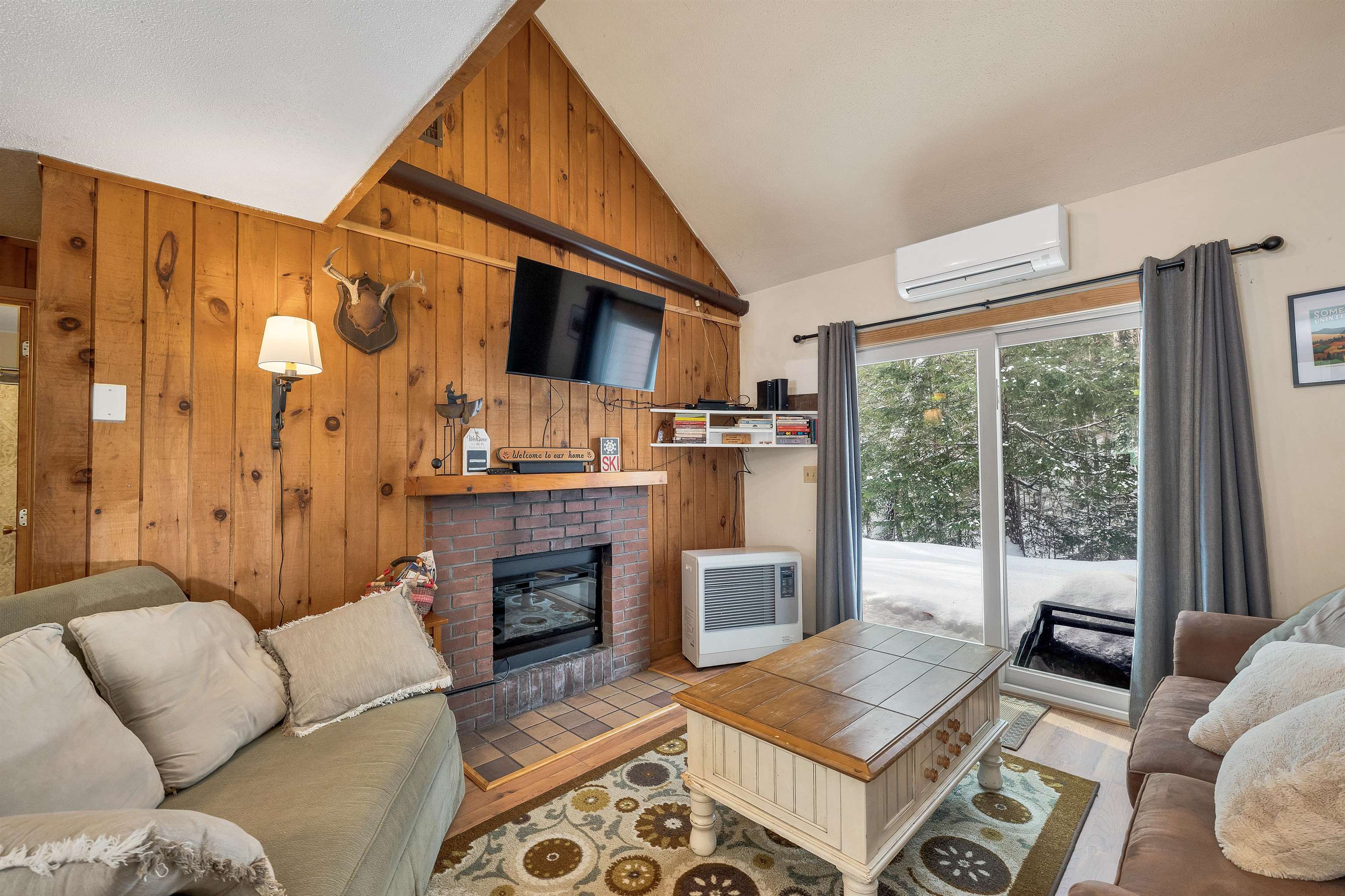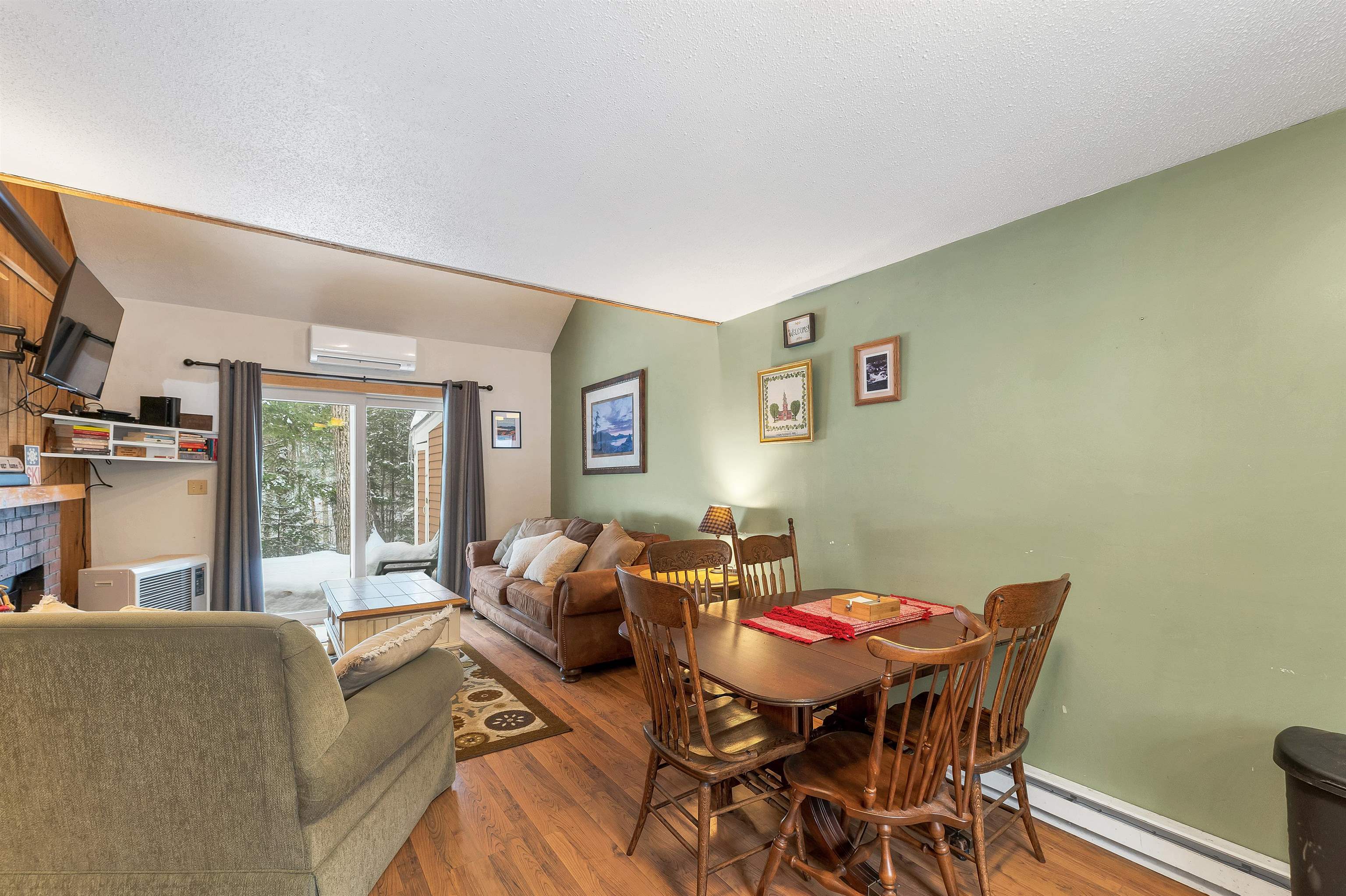 Welcome to this inviting 2-bedroom, 2-bath townhouse-style condo in the desirable Waterville Estates community in Campton, NH. Surrounded by the natural beauty of the White Mountains, this home offers a peaceful setting with easy access to year-round recreation and resort-style amenities. Inside, the main living area features vaulted ceilings and a skylight that fill the space with natural light and create an open, welcoming atmosphere. A fireplace adds warmth and charm for cozy mountain evenings, while the efficient layout makes the home comfortable for everyday living or weekend escapes. Step outside to a private patio overlooking a tranquil stream, where you can unwind to the soothing sounds of flowing water. The home offers two bedrooms and two full baths across two levels, along with a finished private loft area that provides flexible space for additional sleeping, a home office, or a cozy den. A recently installed Mitsubishi Hyper-Heat heating and cooling system ensures efficient year-round comfort. Waterville Estates is known for its outstanding amenities and active mountain lifestyle. Residents enjoy access to a recreation center with indoor and outdoor pools, hot tubs, fitness center, and arcade, along with walking trails and a private ski area within the community. The location also puts you close to major ski resorts, hiking trails, lakes, and the charming towns of the White Mountains and Lakes Region. Whether you're searching for a vacation retreat, full-time residence, or investment opportunity, this property offers comfort, convenience, and access to some of New Hampshire’s best outdoor adventures. Buyer to pay Waterville Estates Association $2, 500 at time of closing for Capital Improvement Fund.