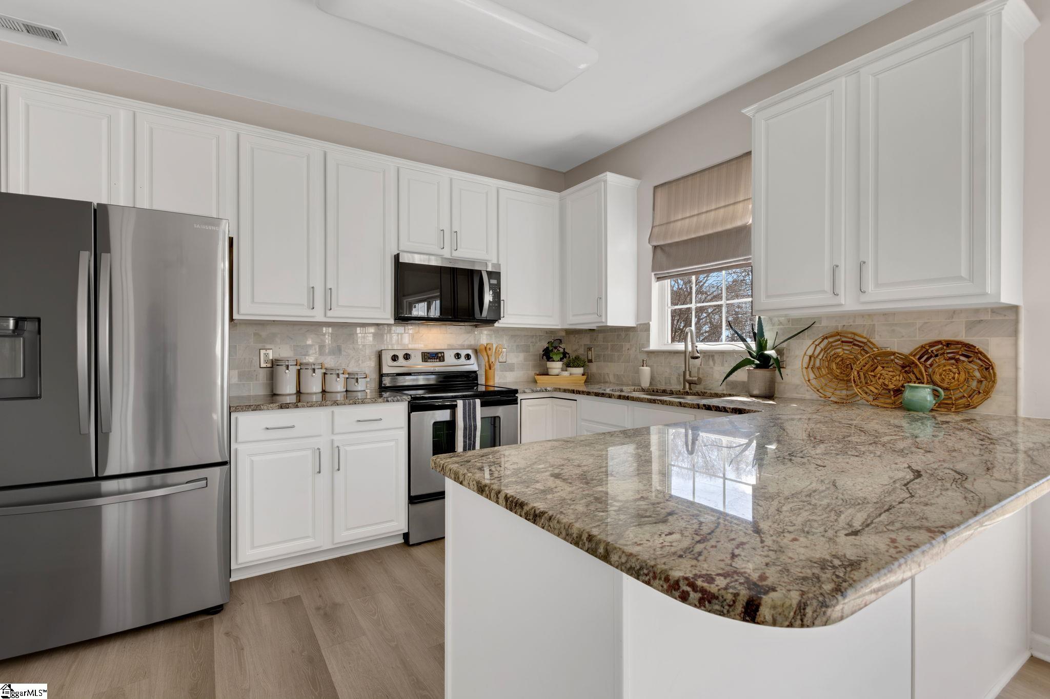 With a remodeled kitchen, fresh paint throughout, and space for both living and working, this Eastside property is move-in ready in all the right ways. The main living areas are bright and comfortable with great natural light and open to a very private, fenced backyard. The kitchen has been beautifully remodeled — it’s stunning, with granite countertops, updated cabinetry, and a new tile backsplash that creates a clean, current feel at the heart of the home. Fresh paint throughout adds to the crisp, well-maintained condition, and the home reflects clear pride of ownership throughout. The layout includes a dining room and great room connected to the kitchen, creating natural gathering spaces while still maintaining defined rooms. A dedicated home office adds valuable flexibility and sits above and beyond the four bedrooms — something many buyers are searching for today. The primary suite is exceptionally spacious and includes its own sitting area, perfect for a reading corner, exercise space, or quiet retreat at the end of the day. Three additional bedrooms are all nicely sized, with one easily functioning as a bonus or rec room and featuring a large walk-in closet. Outside, the fenced backyard creates a private space for pets, play, or relaxing evenings. Located in the highly sought-after Riverside High School district and just minutes from East Riverside Park, the setting is hard to beat. Everyday conveniences like Prisma Health Urgent Care, Lowe's Foods, and Starbucks are close by, with quick access to GSP International Airport as well as both Greer and Greenville and the major Eastside corridors. Such a fun and great neighborhood - sidewalks! Something we don’t see in every Upstate community! Practically perfect in so many ways!