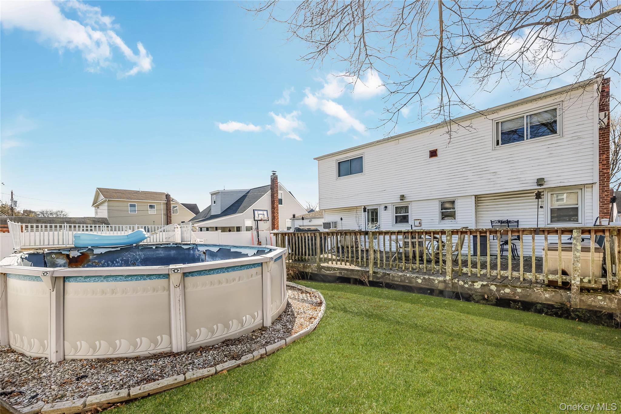 North Wantagh. Beautifully expanded 5 Bedroom Cape. Features Updated Cabinet Lined Kitchen with Granit Counter Tops, Stainless Steel Appliances, Formal Dining Room, Sun filled LR set to southern Exposure, 2 main level Br’s and Full Bath, Rear dormered 2nd Floor Boasts Master BR plus 2 BR’s and Full Bath, Full Basement, Partially finished with Family room, laundry, utilities. Circular Drive, with 1 Car dual entry Garage, Plenty of parking’ Fenced Yard with Deck, Convenient to Parkways , Shops and LIRR. Come find why they call Wantagh the Gateway to Jones Beach