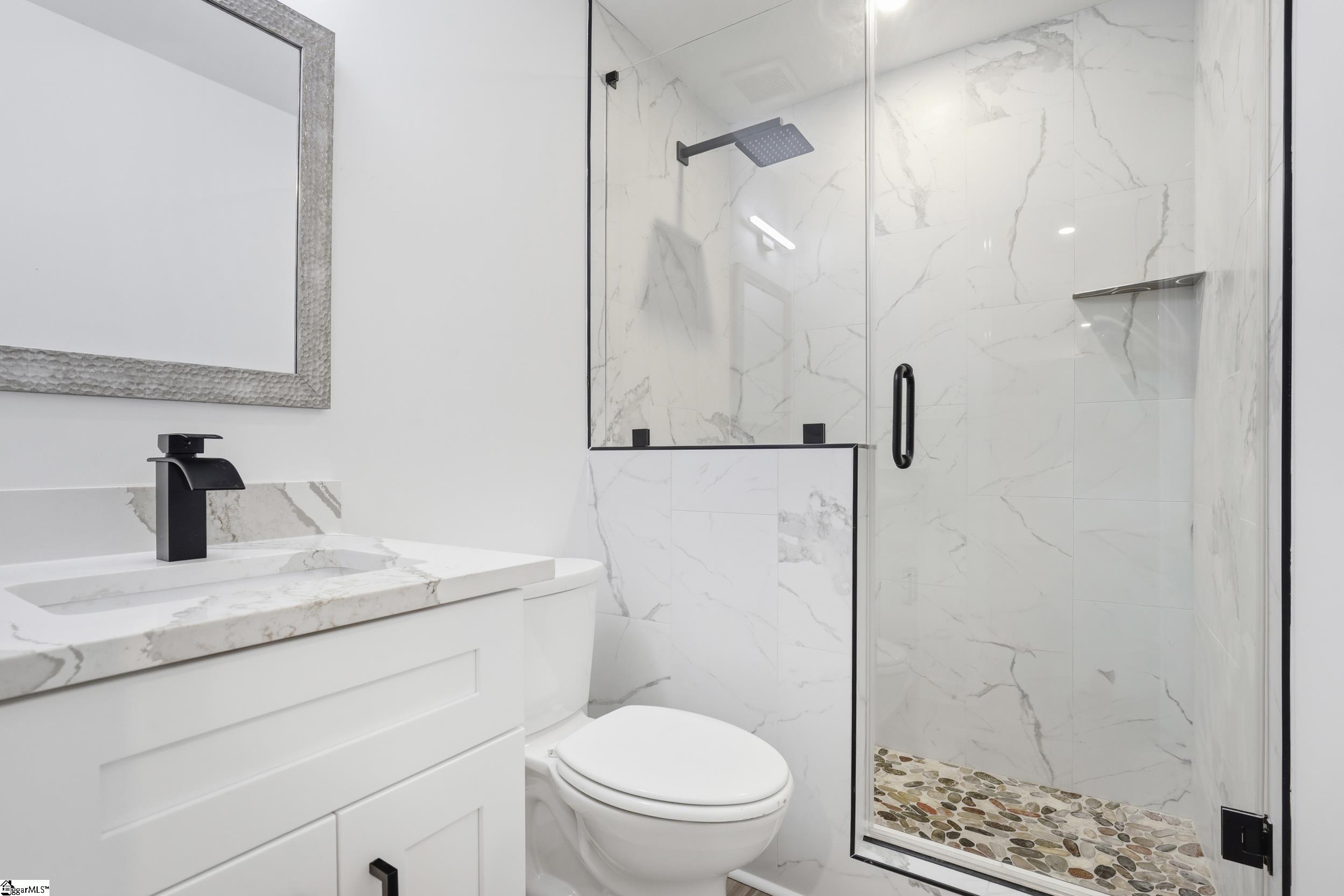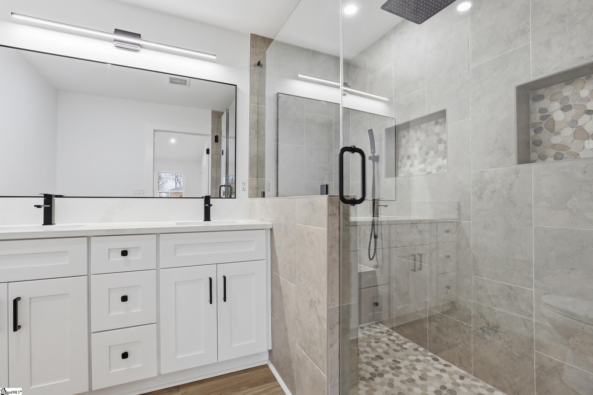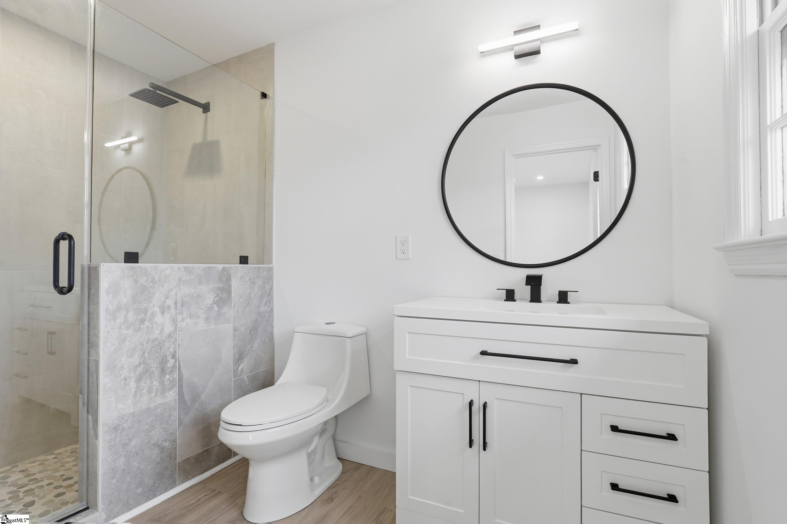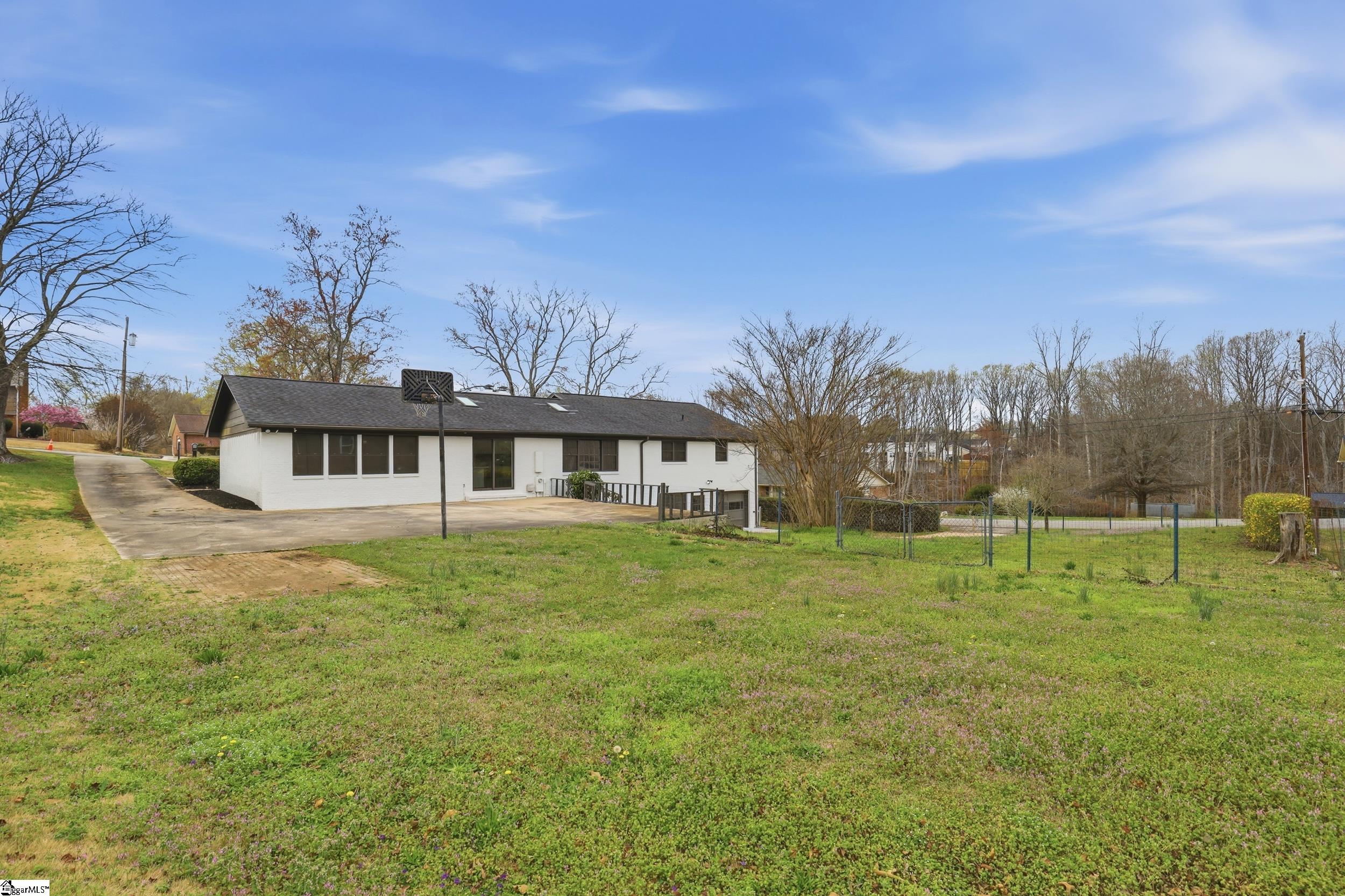 Completely renovated in 2025/2026 from top to bottom, inside and out, this spacious home offers modern style, incredible flexibility, and an unbeatable Greer location just minutes from Downtown Greer, Greenville-Spartanburg International Airport, and the Wade Hampton Boulevard corridor for quick access to Greenville, Spartanburg, and major employers. This home has been thoughtfully reimagined and expanded. What was once a 3-bedroom, 2-bath home is now a spacious 6-bedroom, 4-bathroom property, offering exceptional versatility for large households, guests, or multi-generational living. The main level features a thoughtfully designed layout with two primary suites, each with a private full bathroom, along with two additional bedrooms and another beautifully renovated full bath. Enjoy a bright open-concept floor plan anchored by an inviting great room that flows seamlessly into a luxury eat-in kitchen and dining area. A split-floor plan design offers privacy, and a convenient hallway laundry closet adds everyday functionality. The fully finished basement adds incredible flexibility and can easily function as second living quarters or an in-law suite. With both interior access from the main level and its own exterior entrance, it offers privacy and convenience for multi-generational living or guests. The space includes a huge recreation room perfect for entertaining, room for a pool table or media area, two additional bedrooms, another full bathroom, and a second large walk-in laundry room. You will also find a partially finished 1-car garage with ample space for a workshop. Step outside to enjoy multiple outdoor living areas including a covered front porch with beautiful wood ceilings, a decorative concrete entry, and a large rear patio ideal for entertaining, basketball, or additional parking. The basement level also features a separate driveway, entrance, and patio, further enhancing its potential for private guest or in-law accommodations. Major systems and improvements completed in 2025 include two new HVAC systems, a new tankless water heater, all new plumbing, all new electrical, fresh paint throughout the entire home, and all new appliances. A security camara system will also convey with the property, and a home warranty, adding peace of mind for the new owner. Situated on a corner lot in an established neighborhood, this move-in ready, turnkey property includes all new appliances and thoughtful upgrades throughout. With Greer continuing to grow rapidly due to its proximity to GSP Airport, BMW, and the Greenville and Spartanburg metro area, homes in this location remain highly desirable for both homeowners and investors. Priced to sell and ready for its next owner.