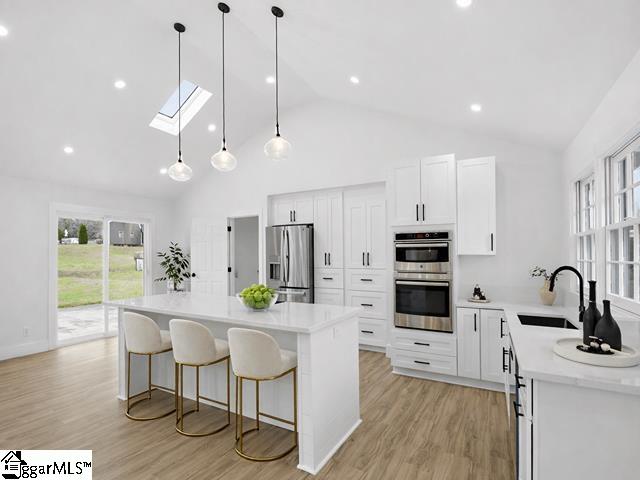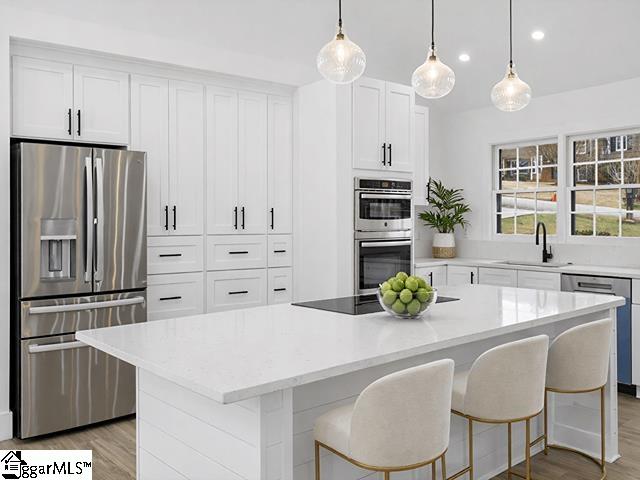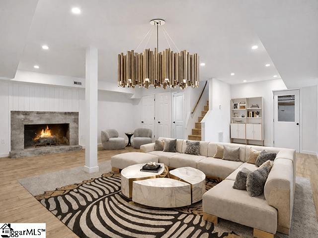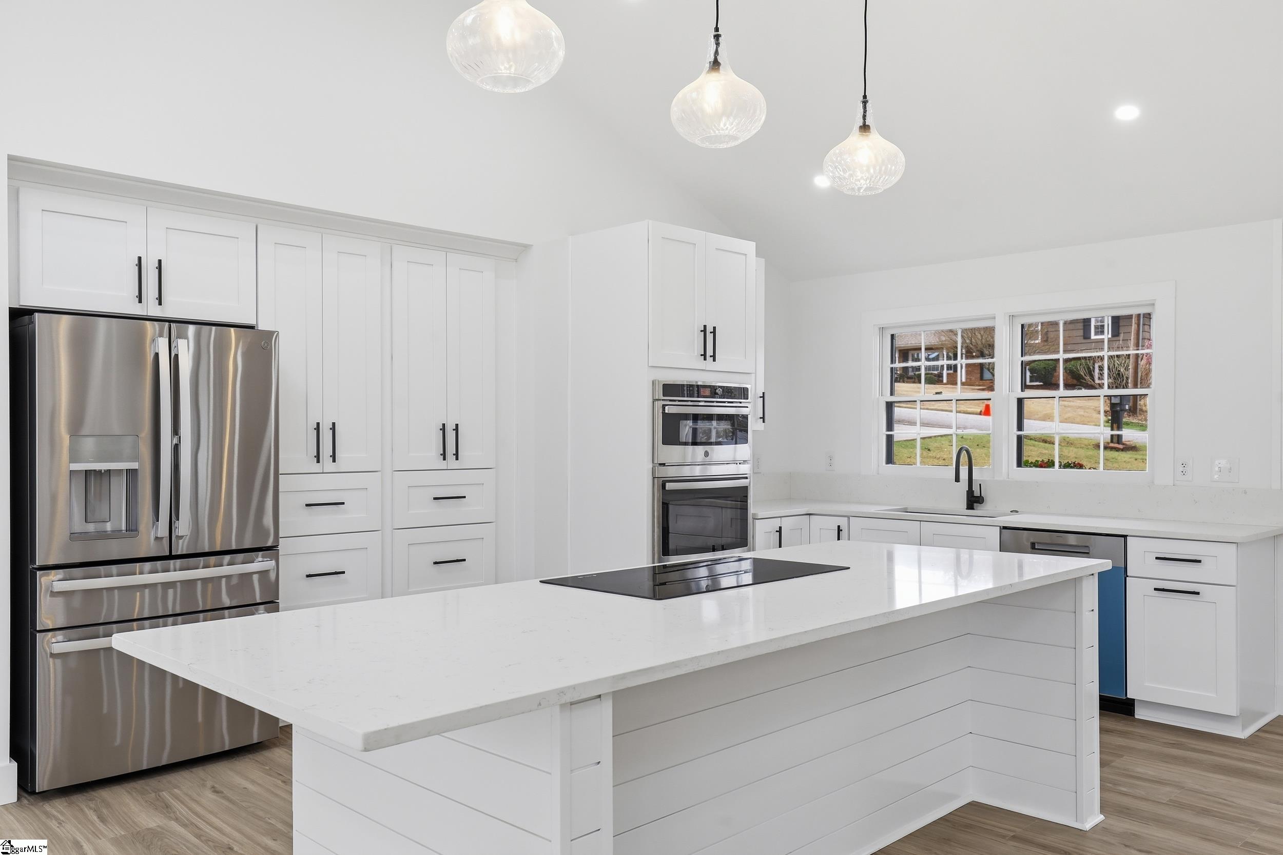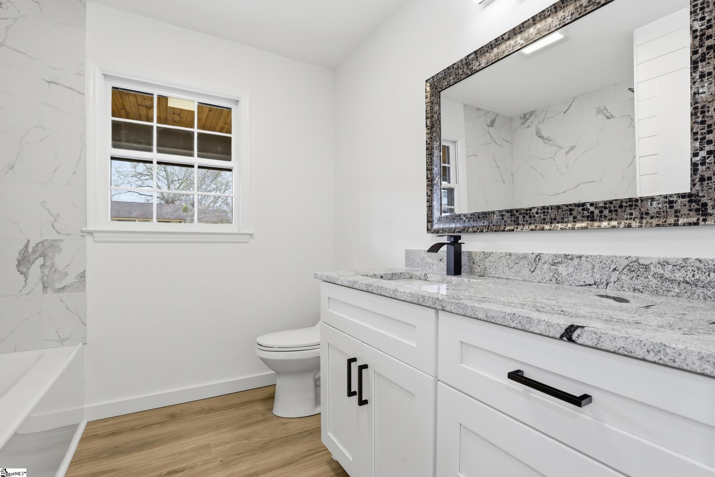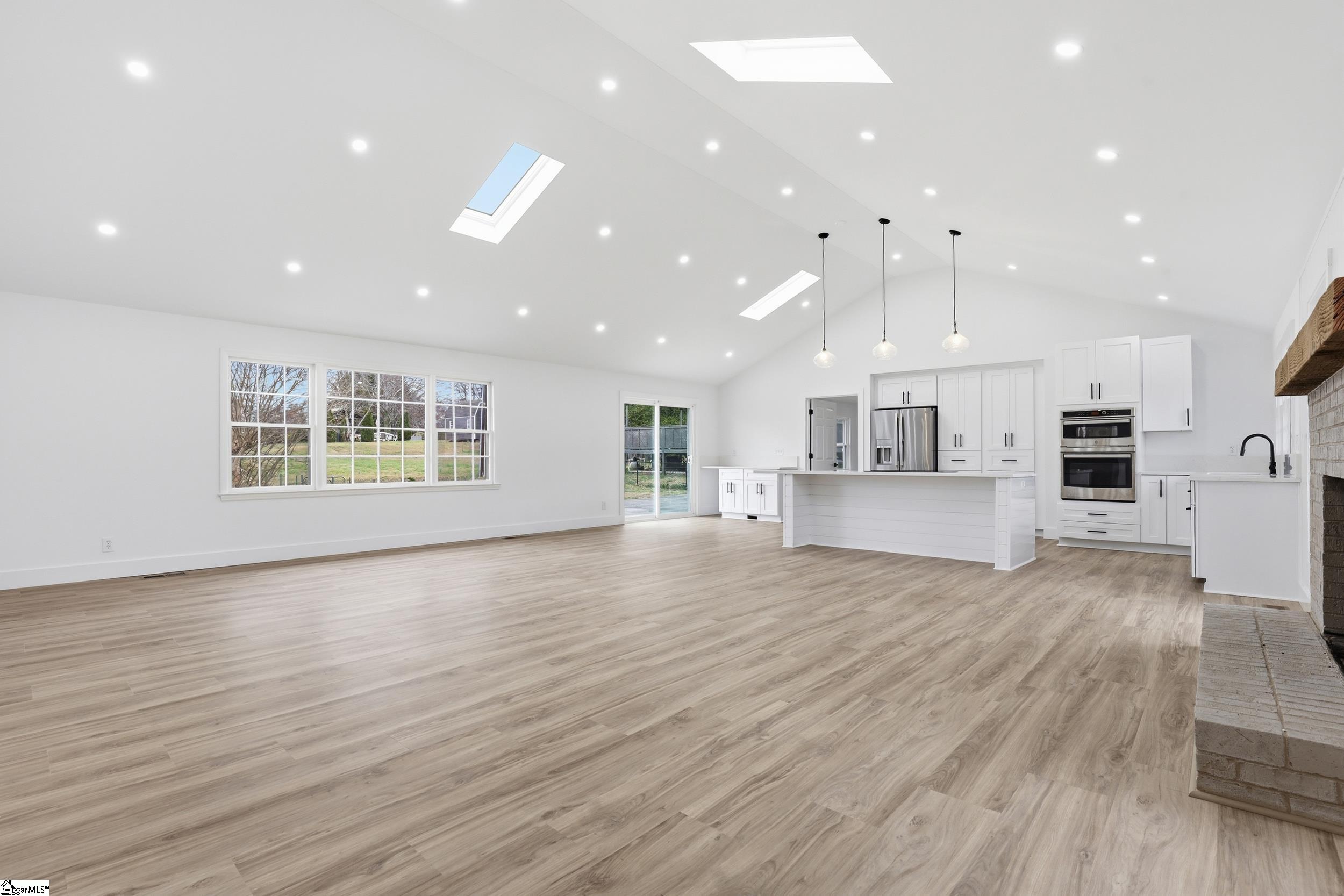 Completely renovated in 2025/2026 from top to bottom, inside and out, this spacious home offers modern style, incredible flexibility, and an unbeatable Greer location just minutes from Downtown Greer, Greenville-Spartanburg International Airport, and the Wade Hampton Boulevard corridor for quick access to Greenville, Spartanburg, and major employers. This home has been thoughtfully reimagined and expanded. What was once a 3-bedroom, 2-bath home is now a spacious 6-bedroom, 4-bathroom property, offering exceptional versatility for large households, guests, or multi-generational living. The main level features a thoughtfully designed layout with two primary suites, each with a private full bathroom, along with two additional bedrooms and another beautifully renovated full bath. Enjoy a bright open-concept floor plan anchored by an inviting great room that flows seamlessly into a luxury eat-in kitchen and dining area. A split-floor plan design offers privacy, and a convenient hallway laundry closet adds everyday functionality. The fully finished basement adds incredible flexibility and can easily function as second living quarters or an in-law suite. With both interior access from the main level and its own exterior entrance, it offers privacy and convenience for multi-generational living or guests. The space includes a huge recreation room perfect for entertaining, room for a pool table or media area, two additional bedrooms, another full bathroom, and a second large walk-in laundry room. You will also find a partially finished 1-car garage with ample space for a workshop. Step outside to enjoy multiple outdoor living areas including a covered front porch with beautiful wood ceilings, a decorative concrete entry, and a large rear patio ideal for entertaining, basketball, or additional parking. The basement level also features a separate driveway, entrance, and patio, further enhancing its potential for private guest or in-law accommodations. Major systems and improvements completed in 2025 include two new HVAC systems, a new tankless water heater, all new plumbing, all new electrical, fresh paint throughout the entire home, and all new appliances. A security camara system will also convey with the property, and a home warranty, adding peace of mind for the new owner. Situated on a corner lot in an established neighborhood, this move-in ready, turnkey property includes all new appliances and thoughtful upgrades throughout. With Greer continuing to grow rapidly due to its proximity to GSP Airport, BMW, and the Greenville and Spartanburg metro area, homes in this location remain highly desirable for both homeowners and investors. Priced to sell and ready for its next owner.