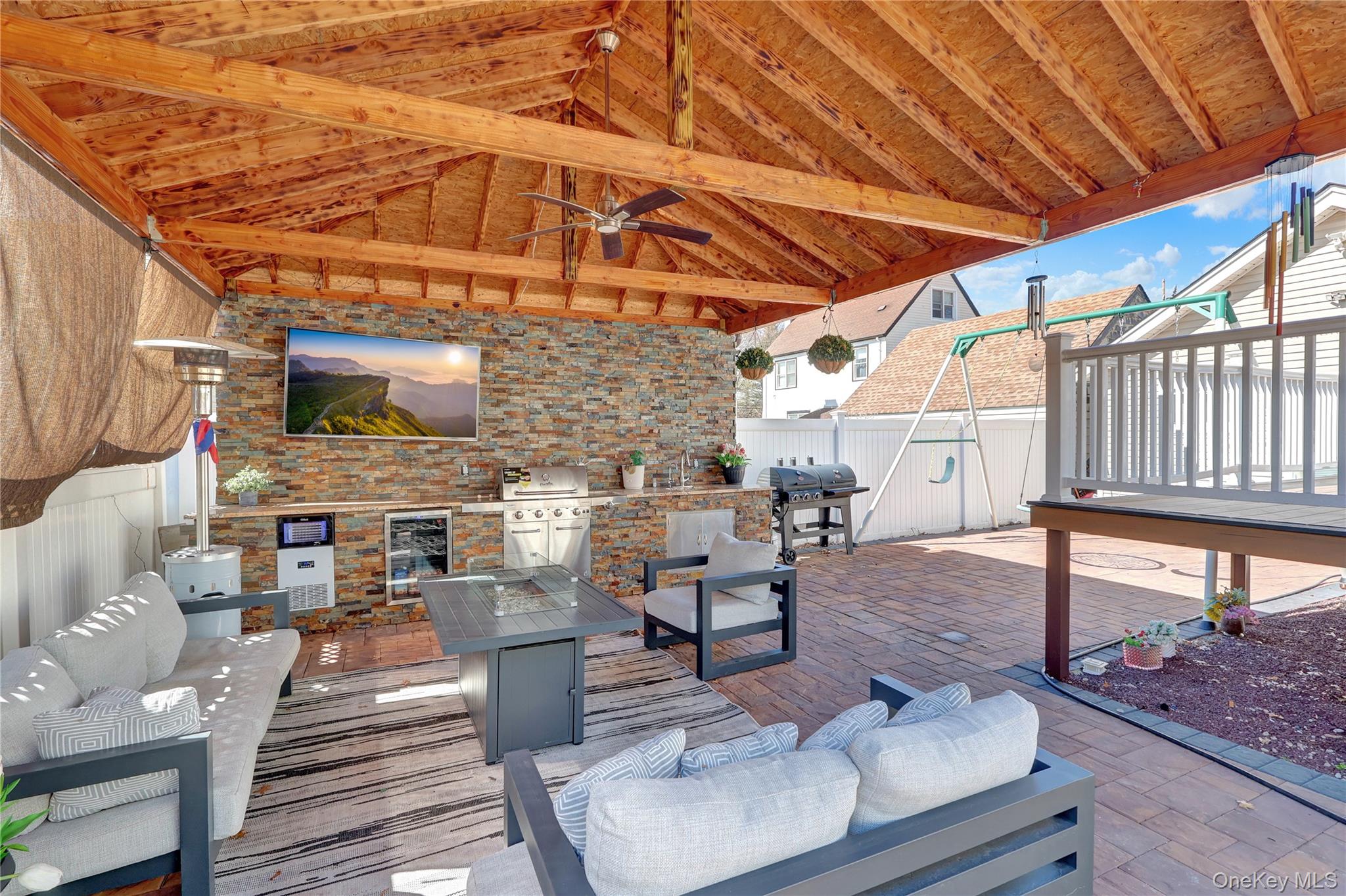 Welcome to this great new listing located in the beautiful and desirable Cathedral Gardens neighborhood in Hempstead. This spacious 4-bedroom, 4-full-bath Colonial offers the perfect blend of comfort, functionality, and lifestyle—ideal for everyday living and creating your own staycation experience at home. The first floor features a bright and spacious living room with a fireplace and gleaming hardwood floors, creating a warm and inviting atmosphere. The gorgeous eat-in kitchen includes a center island, state-of-the-art stainless steel appliances, and abundant cabinet space, perfect for cooking and entertaining. The main level also offers a formal dining room, a bedroom, and a full bathroom, providing flexibility for guests or multi-generational living. On the second floor, you’ll find the primary suite with its own full bathroom and walk-in closet, along with two additional bedrooms and another full bathroom. The home also features a fully finished basement with a full bathroom and walk-out access, offering additional living, recreation, or work-from-home space. Step outside to an entertainer’s dream backyard, featuring a large Trex deck and a hardtop roof gazebo equipped with a built-in barbecue grill, sink, wine cooler, ice maker, and more. Perfect for hosting gatherings and outdoor entertaining. Additional features include gas cooking, 200-amp electrical service, and an efficient Navien heating system. A wonderful opportunity to own a beautiful home in one of the area’s most sought-after neighborhoods in Hempstead.