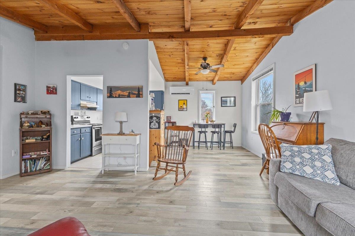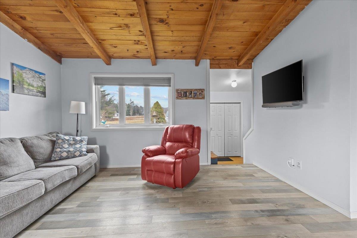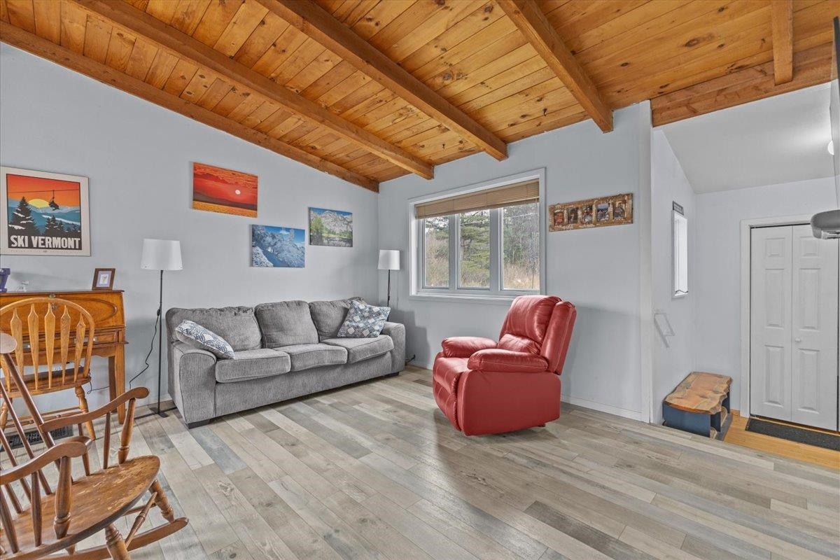 Don't miss this hard to find affordable Monkton home in move-in condition. Located just over the Hinesburg town line, this cozy Monkton property is an excellent opportunity for a first-time homebuyer or anyone looking to downsize. Situated on 1. 1 acres, the home offers a peaceful country setting with an easy commute north to Burlington or south toward Middlebury. The residence sits well off the main road and features large side and back yards surrounded by trees for added privacy. Recent updates include: vinyl plank flooring in living and dining area, mini-split, ceiling fan, two new basement windows 2026, newer vinyl windows throughout the first level, bathroom vanity, composite deck on the southern side of the home, a new pressure-treated platform (2025) for the included (unassembled) shed. Most of the interior was repainted within the past 5 years. The property also features a walkout basement with a large 18x21 family room, a laundry room, and a half bath (please note the half bath is not reflected on the listing card). For energy-efficient heating, the home offers a mini-split heat pump, a woodstove, and a monitor heater. NOTE: All dimensions are approximate