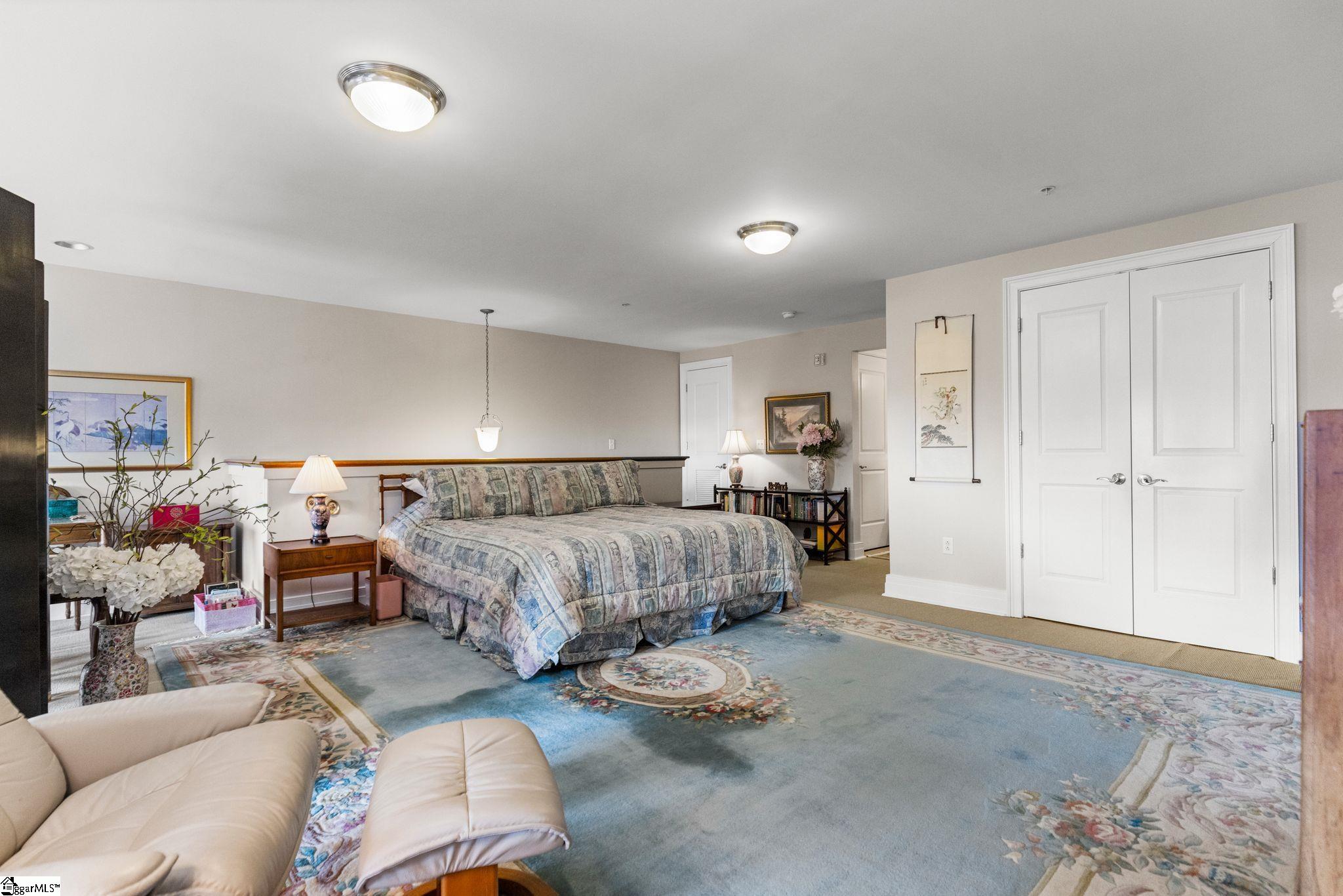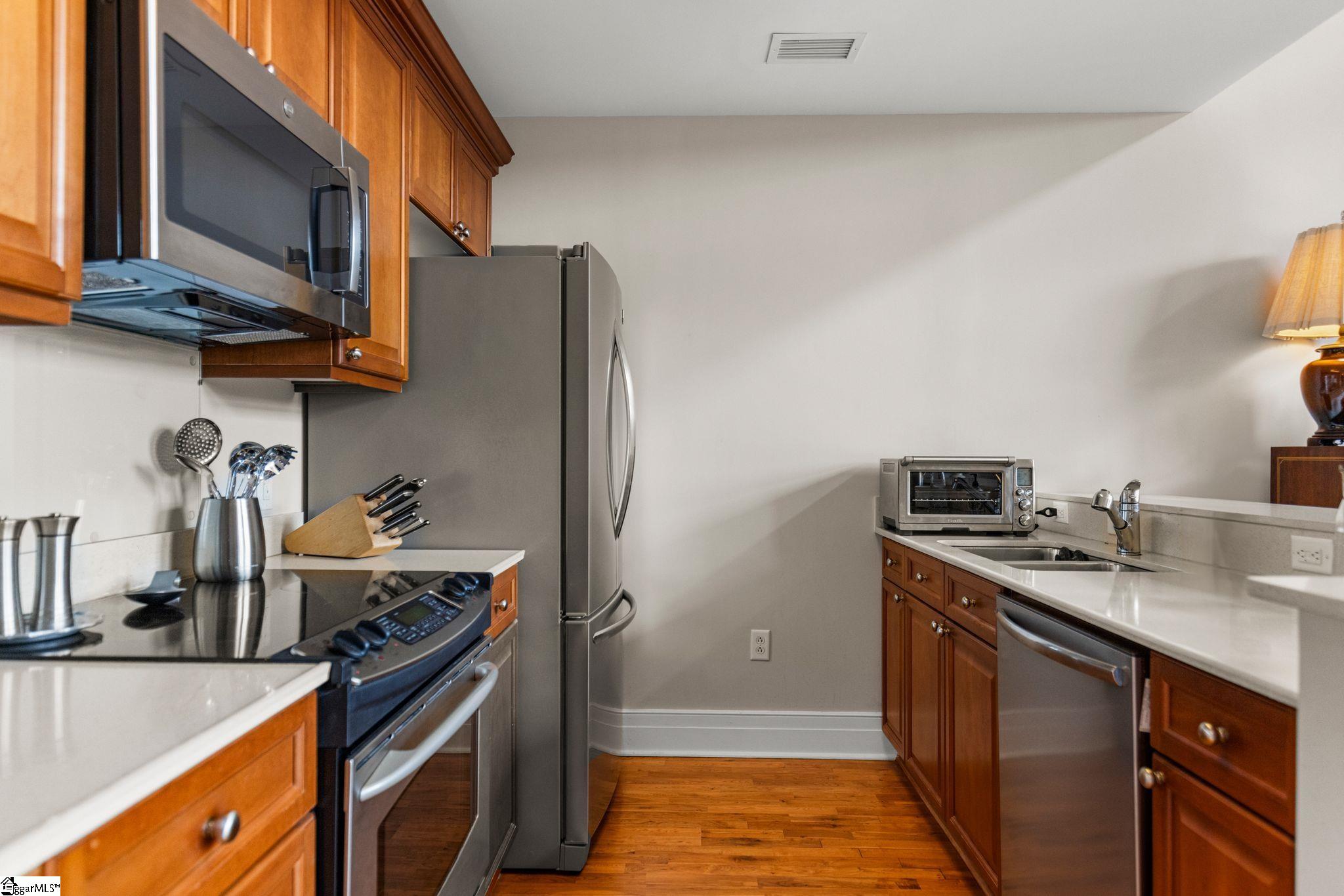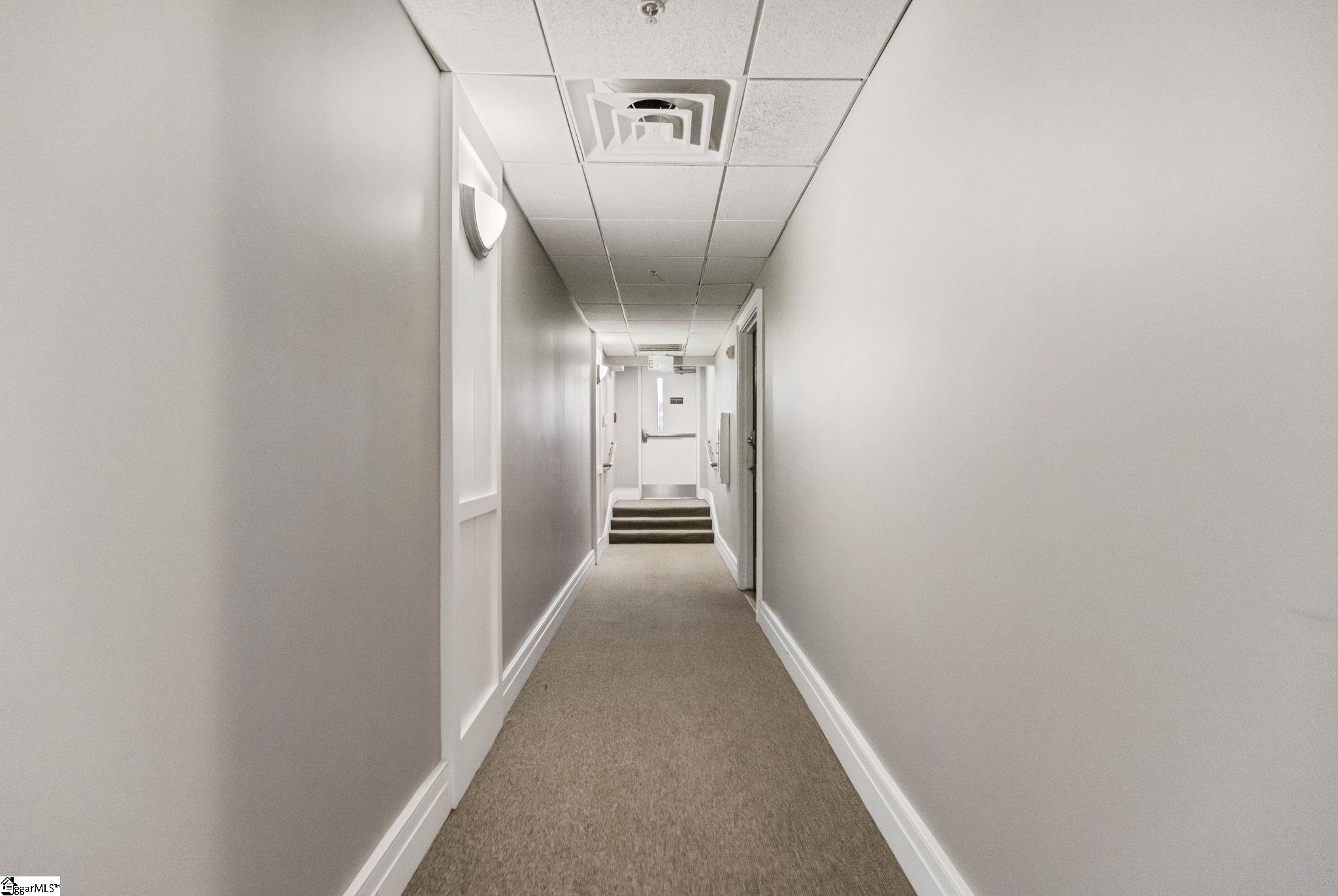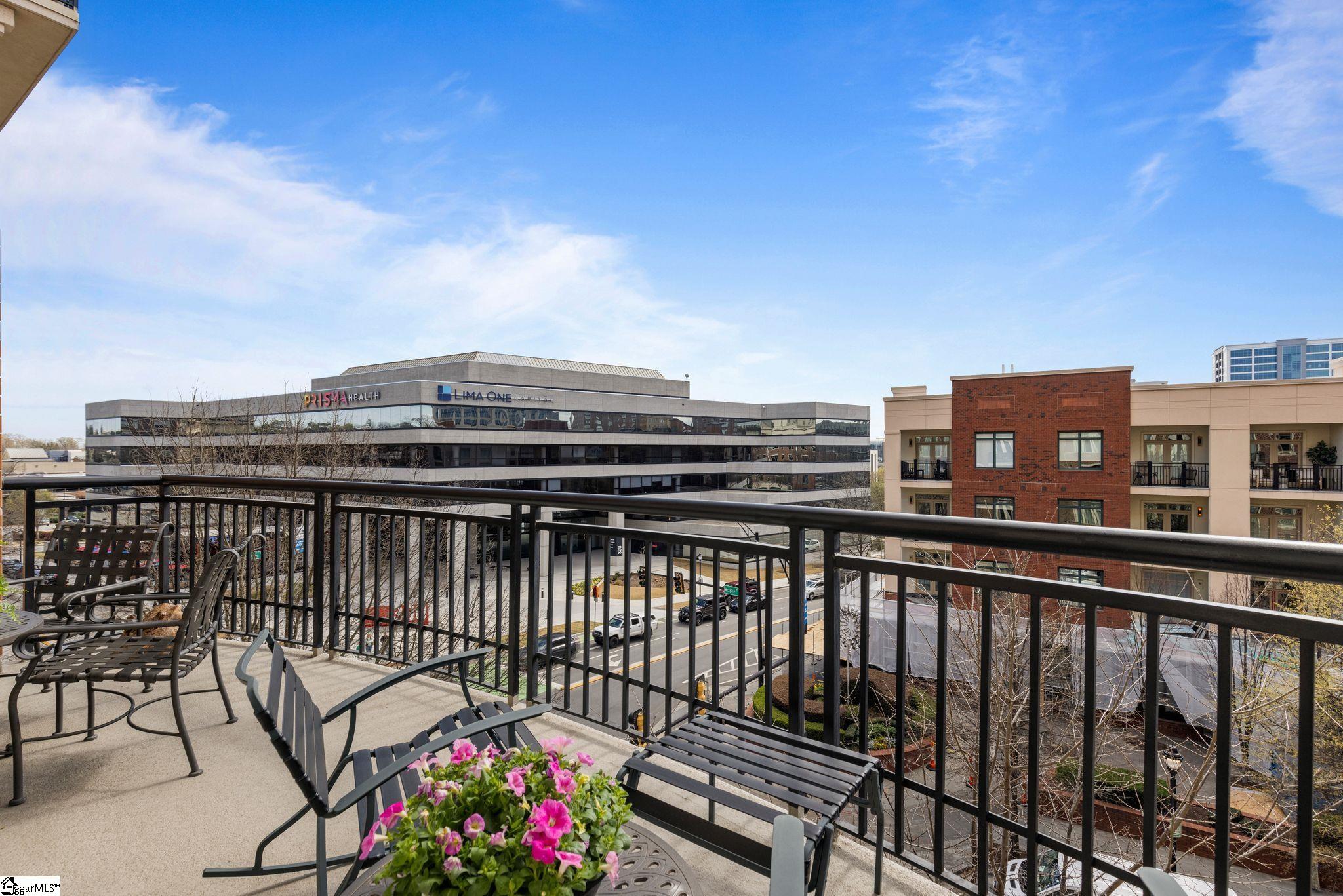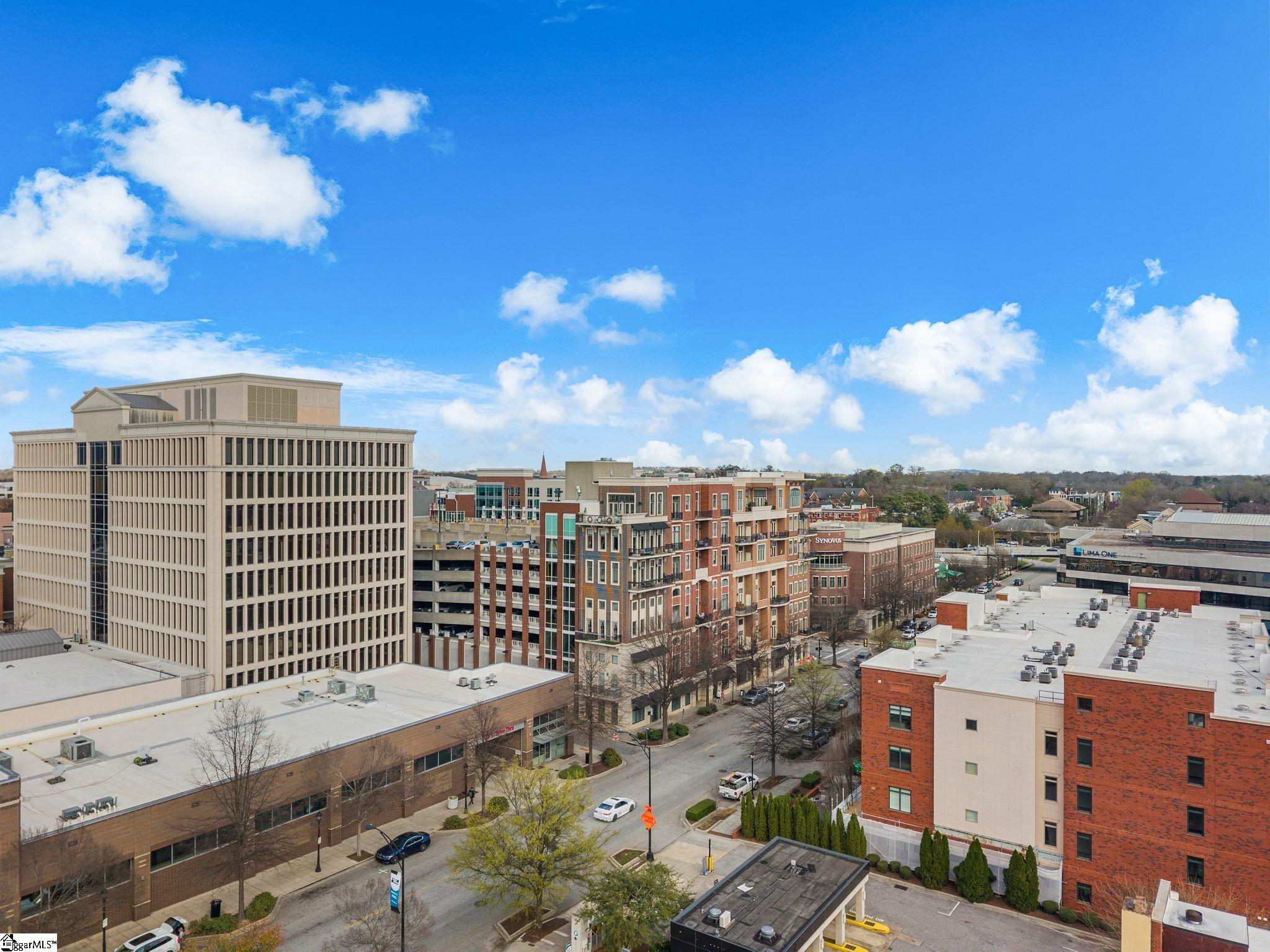 Downtown Greenville living at its very best just off Main. Rare opportunity to live in the Bookends with city garage facility attached to the Condos. Priced below appraisal on file for instant equity and room to make updates as your heart desires. Stainless steel appliance in kitchen looking out on a sleek open concept living room with fabulous balcony space worthy for entertaining. Second bedroom currently used as a downstairs den with massive size primary suite and laundry room upstairs.