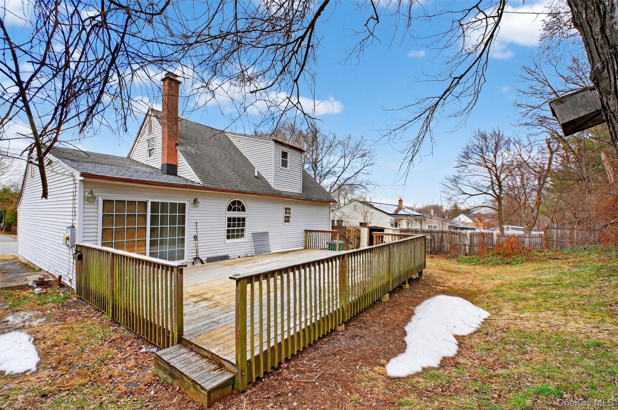 Come take a look at this adorable and affordable beautifully maintained Cape Style home on a quiet cul-de-sac, this home offers 3 bedrooms, 2 full baths, updated eat in kitchen that leads to a large deck, large family room, formal living room and master bedroom with huge walk in closet on the main level. Second level offers 2 bedrooms and full bathroom, full unfinished basement with laundry area and tons of storage, hardwood floors, brand new carpeting, freshly painted move in condition. The property is level and the backyard is private great place to relax and entertain. Minutes to Metro North train and Route 9 leading to all shopping, schools and much more, town water and sewer, this home offers it all and is priced to sell, make your appointment today because this will not last.