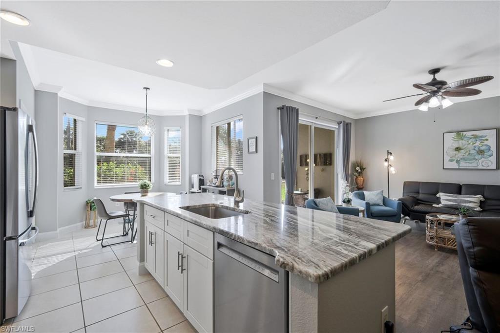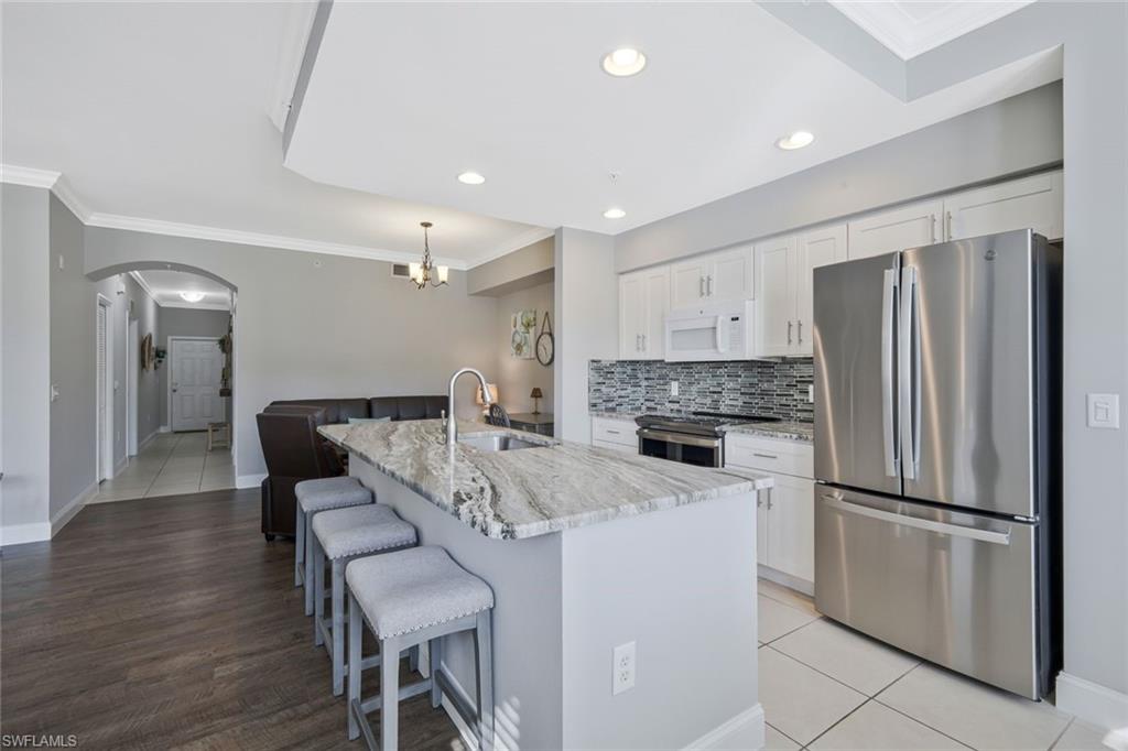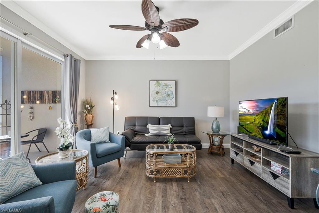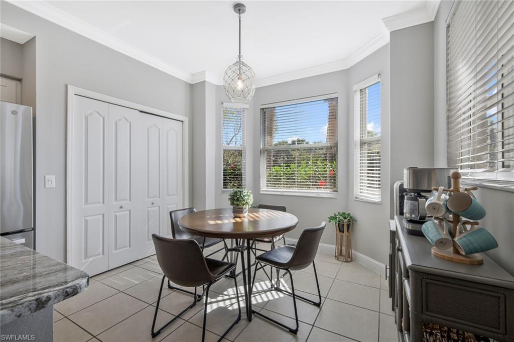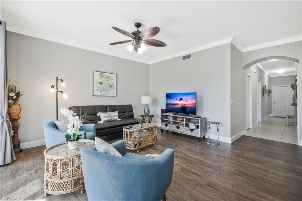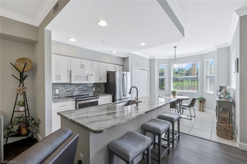 BEST PRICED in BELLA TERRA! TURNKEY FURNISHED AND TASTEFULLY RENOVATED FIRST FLOOR Condo with PRIVACY! This LIGHT and BRIGHT 2bed 2bath OPEN floor plan is the MOST DESIRABLE. Recently UPDATED w/ tasteful, modern, and contemporary FINISHES that include: New Premium Countertops in Kitchen & Baths, NEW KITCHEN CABINETS, NEW APPLIANCES, NEW FLOORING, NEW PAINT THROUGHOUT , NEW TRIM AND CROWN MOLDING. 20X20 MESH SCREEN INSTALLED in the fully enclosed lanai . A Covered Carport with designated parking and storage closet are included with sale. Residents of Bella Terra enjoy resort-style amenities including a resort pool and spa, 24-hour fitness center, tennis and pickleball courts, bocce, basketball, beach volleyball, walking paths, scenic lakes, playground, sports fields, and an additional community pool just steps away. Ideally located in the heart of Estero, you’re minutes from Miromar Outlets, Coconut Point Mall, Gulf Coast Town Center, Florida Gulf Coast University, and Southwest Florida International Airport, along with countless restaurants, shopping, and the beautiful Gulf beaches. Whether you’re looking for a full-time residence, seasonal getaway, or investment opportunity, this UPDATED FIRST FLOOR Bella Terra condo offers an exceptional combination of location, lifestyle, and value.