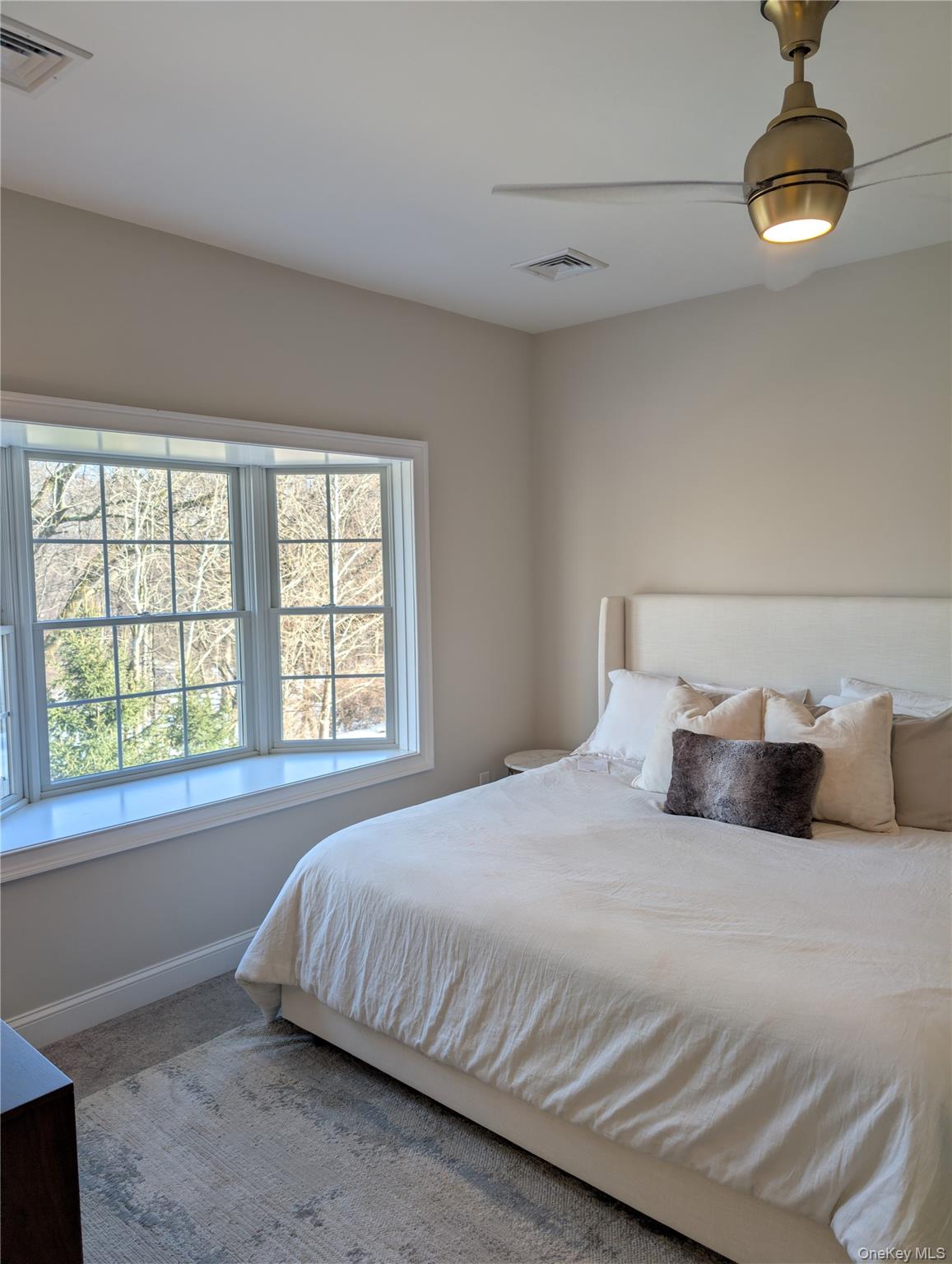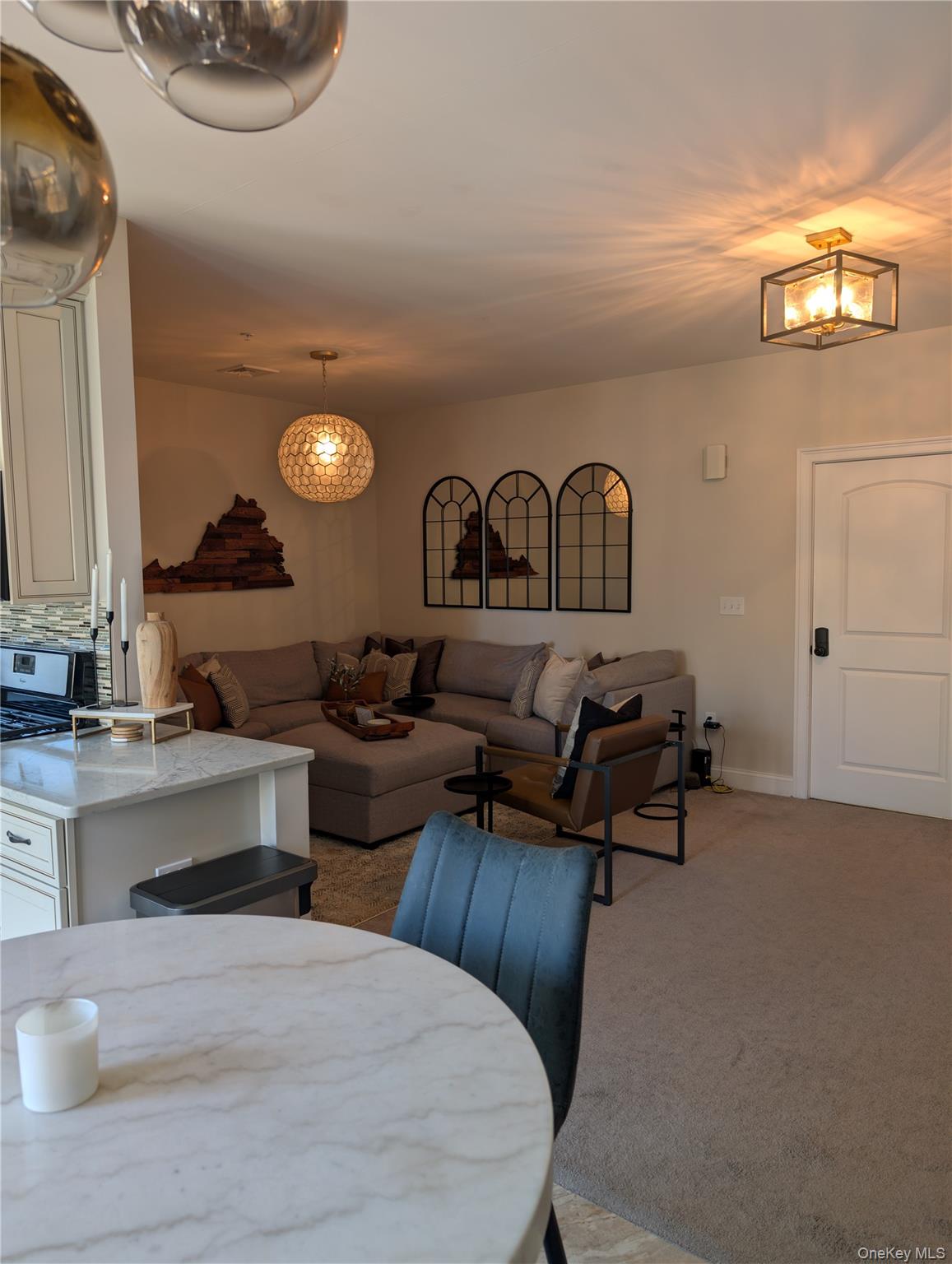 AO March 17th. Move in ready top floor two-bedroom, two bath brick condo at Stony Brook in the Town of Newburgh just needs your furniture. Enter into the spacious living room/dining room area perfect for entertaining. The updated kitchen features stainless steel appliances, custom backsplash, granite countertops, recessed lighting and a bay window to grow your herbs for cooking. The private Juliette deck off the dining area overlooks the common open space with seasonal stream views. There is a stackable washer/dryer combination in the hallway for your convenience. The guest bedroom has a whole wall closet for storage. The main bathroom has been updated and has custom tiling in the tub/shower area. The primary suite has a large sleeping area with a bay window overlooking the rear yard, 8'6" X 5' walk-in closet, open vanity with sink and a separate lavatory and tub/shower room. There is a one car garage with a storage/utility room on the first floor. This well-maintained complex features a club house with inground pool, tennis court, snow removal, lawn service, refuse pickup and water & sewer included. It is close to routes 84 and NY State Thruway, 8 miles to the Metro North train station, 1 mile to Shortline bus terminal and close to Stewart International Airport. Conveniently located near schools, shopping, restaurants, medical and recreation.