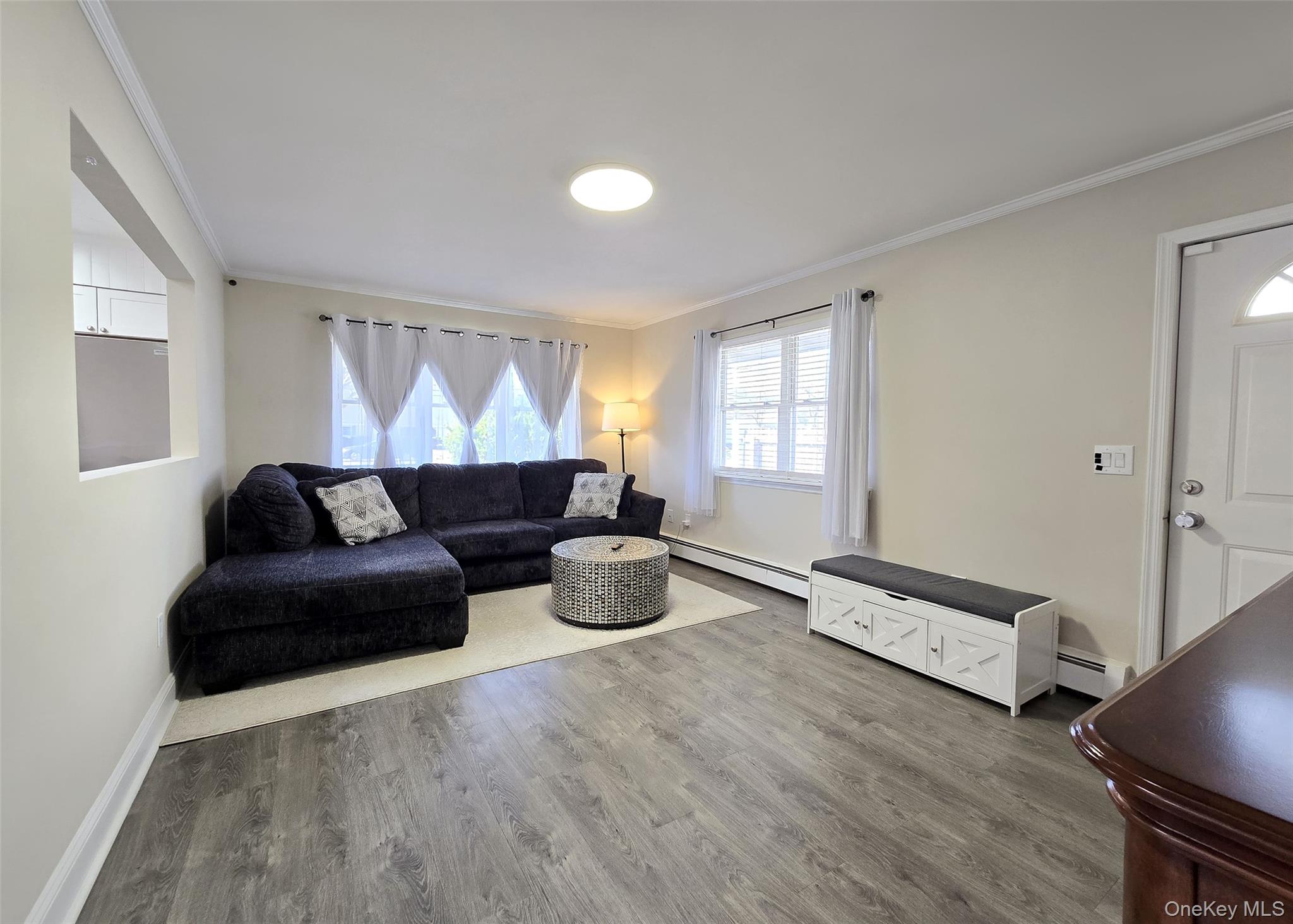 Move right into this beautifully updated 3-bedroom, 1-bath ranch featuring quality improvements throughout. Built with 2x6 insulated walls, this home offers efficiency and comfort. The eat-in kitchen boasts stainless steel appliances and quartz countertops. Stay comfortable year-round with two new ductless air-conditioning units. The laundry/utility room provides convenient access to the fully fenced side and backyard, complete with a brick patio—perfect for relaxing or entertaining. Additional highlights include vinyl siding, a large attic for storage, and nicely landscaped grounds. Easy access for commuting, shopping, and LIRR. Nothing to do but unpack and enjoy