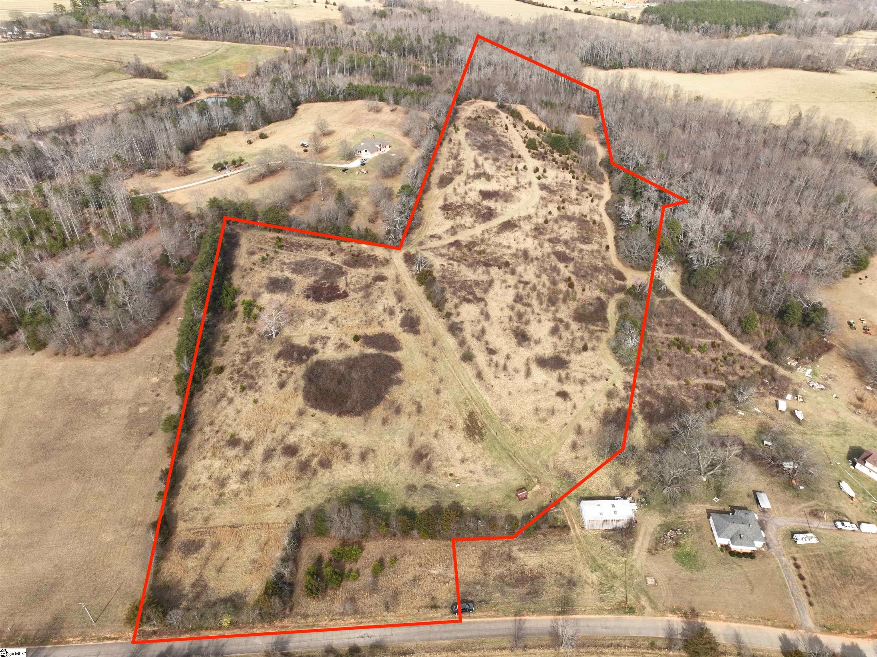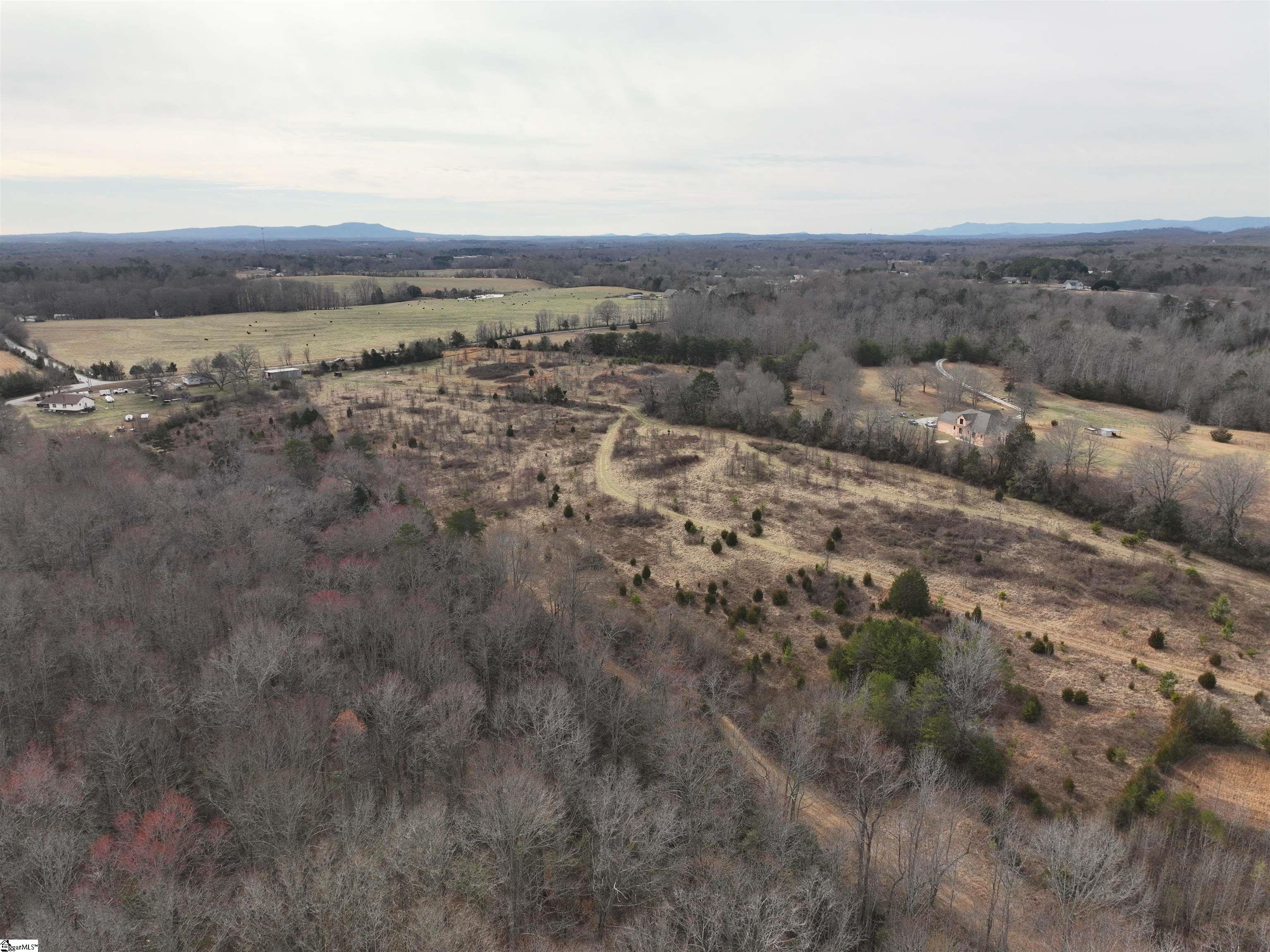 A 25-acre farm property is available in Greenville County's Blue Ridge High School area, offering stunning mountain views, pasture, woods, and a creek fed by a natural spring located on the property. Public water is available, and there are no restrictions. This property is perfect for a horse farm, a private mountain view homesite, or future development. Around 250 feet of road frontage. 20 miles from downtown Greenville.