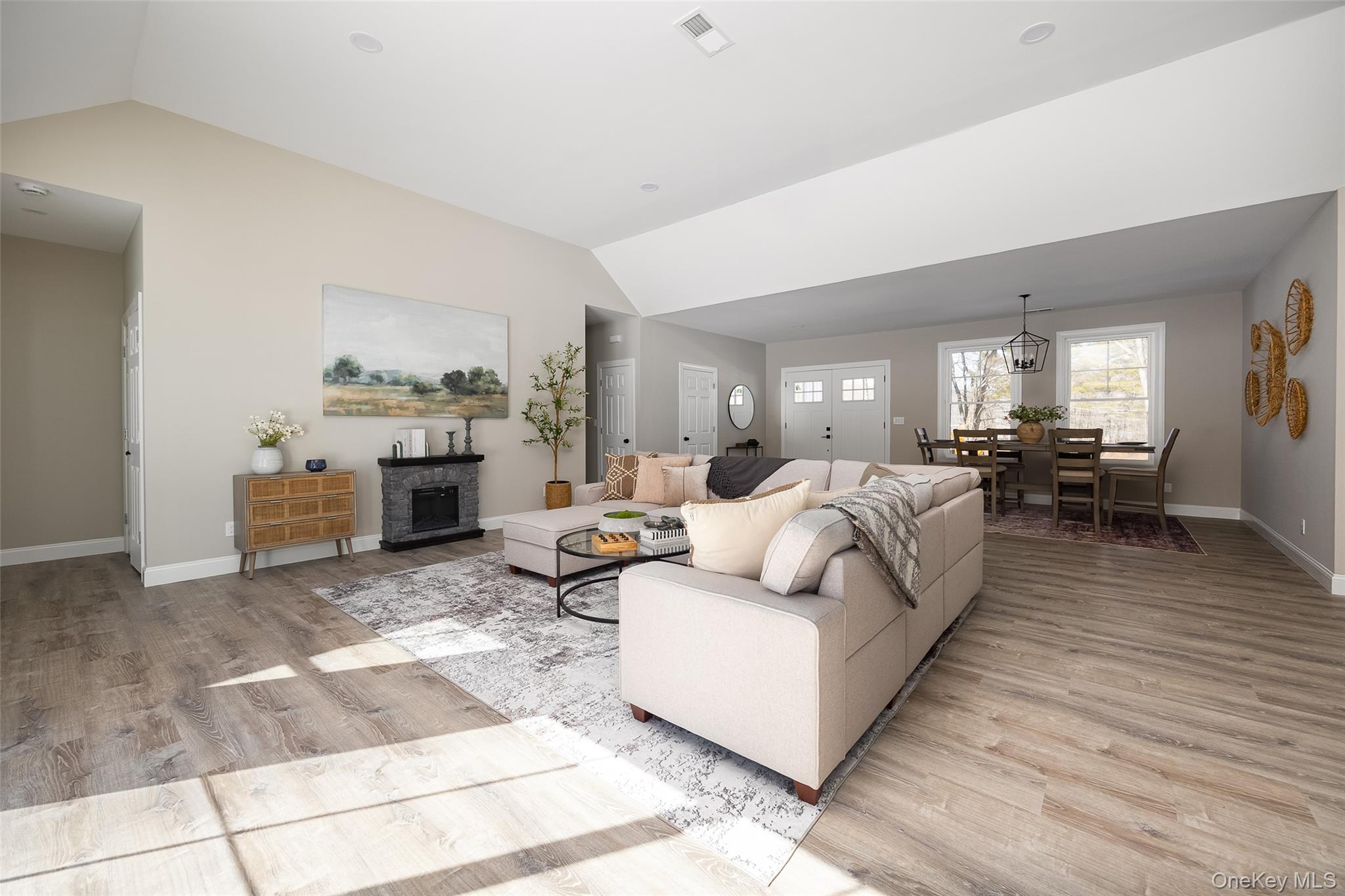NEW CONSTRUCTION WITHOUT THE WAIT! Welcome to this beautifully crafted brand-new Farmhouse Ranch in the desirable hamlet of Stormville. Set on over 1. 5 acres of privacy, following the long meandering driveway, this single-level home offers over 2900 SQFT of comfortable, modern living space. Step inside to discover an expansive open floor plan where the kitchen, dining area, and living room flow effortlessly together—creating the ideal environment for both daily living and entertaining. The chef’s kitchen showcases elegant quartz countertops and backsplash, high-quality custom cabinets, and SS appliances. A custom wet bar with wine fridge, adds an extra touch of convenience when hosting guests. The home offers an expansive primary suite with his and hers oversized walk-in closets, en suite bath with custom tile surround glass enclosed shower and double vanity. Three generously sized bedrooms and a beautifully appointed full main bathroom features stylish, modern finishes designed for both comfort and sophistication. Oversized windows throughout the home invite in plenty of natural light, creating a bright and welcoming atmosphere. High efficient forced air heat pump for heating and cooling. Outside, enjoy a large stamped concrete patio, level yard and a low-maintenance Trex rocking chair front porch. The board-and-batten siding adds classic curb appeal, while the property backs up to state land offering exceptional privacy with no future development behind. This home is conveniently located just minutes from I-84, shopping, and local schools—providing the perfect blend of all things the Hudson Valley has to offer. Make this your HOME today!
