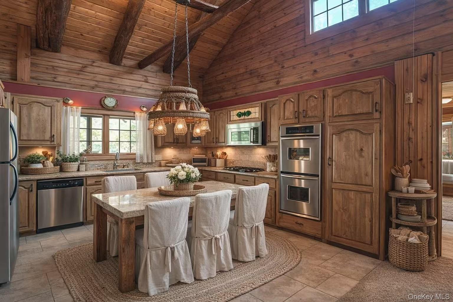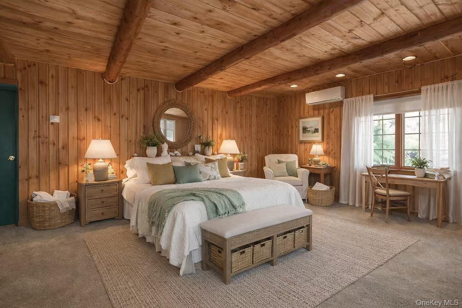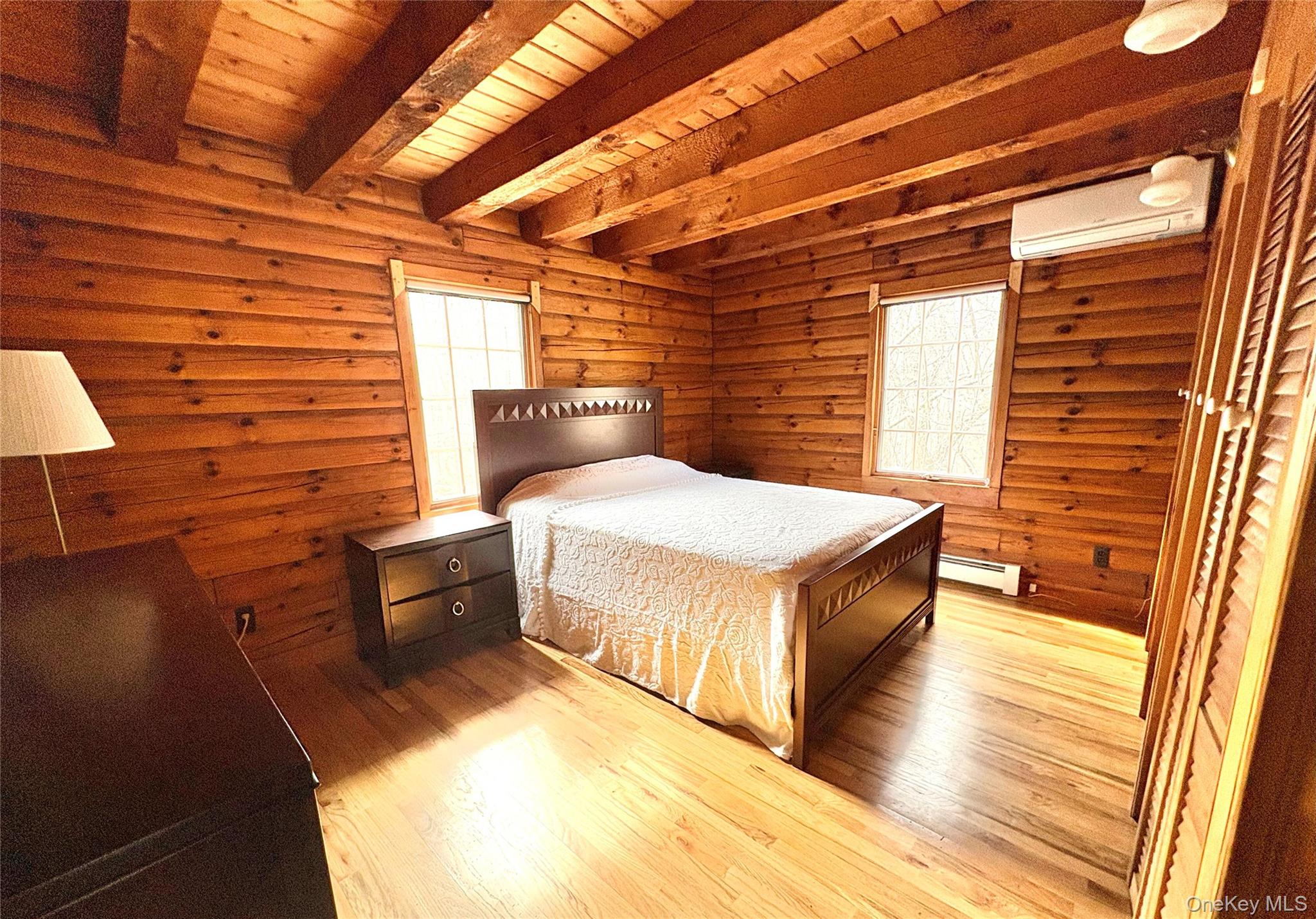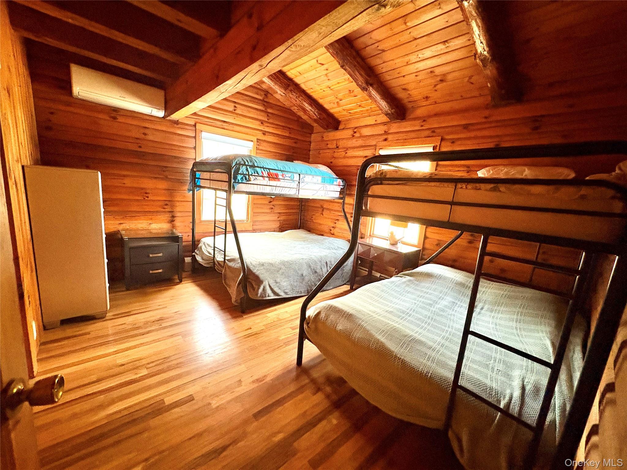 Seeking privacy and tranquility without complete seclusion? This charming log home sits on 15 acres surrounded by natural beauty (partially wetlands) and peaceful views of a neighboring lake. The expansive deck is ideal for entertaining and summer barbecues, while the three-season porch provides a cozy retreat in any weather. Inside, the great room impresses with vaulted ceilings, exposed beams, and a striking stone fireplace, creating a warm and inviting gathering space. It flows seamlessly into a modern eat-in kitchen featuring stainless steel appliances and custom cabinetry with elegant leaded-glass details. Three bedrooms on the first floor, along with a versatile loft above, offer flexible living options for guests, work, or recreation. Conveniently located just minutes from shopping, approximately three miles from Orange Regional Hospital, and about 45 miles (roughly a 1–1. 5 hour drive) from New York City, this special property offers a wonderful balance of comfort, charm, and peaceful country living. Note: The last five images are virtually staged. The property will be delivered either semi-furnished or vacant and broom-cleaned.