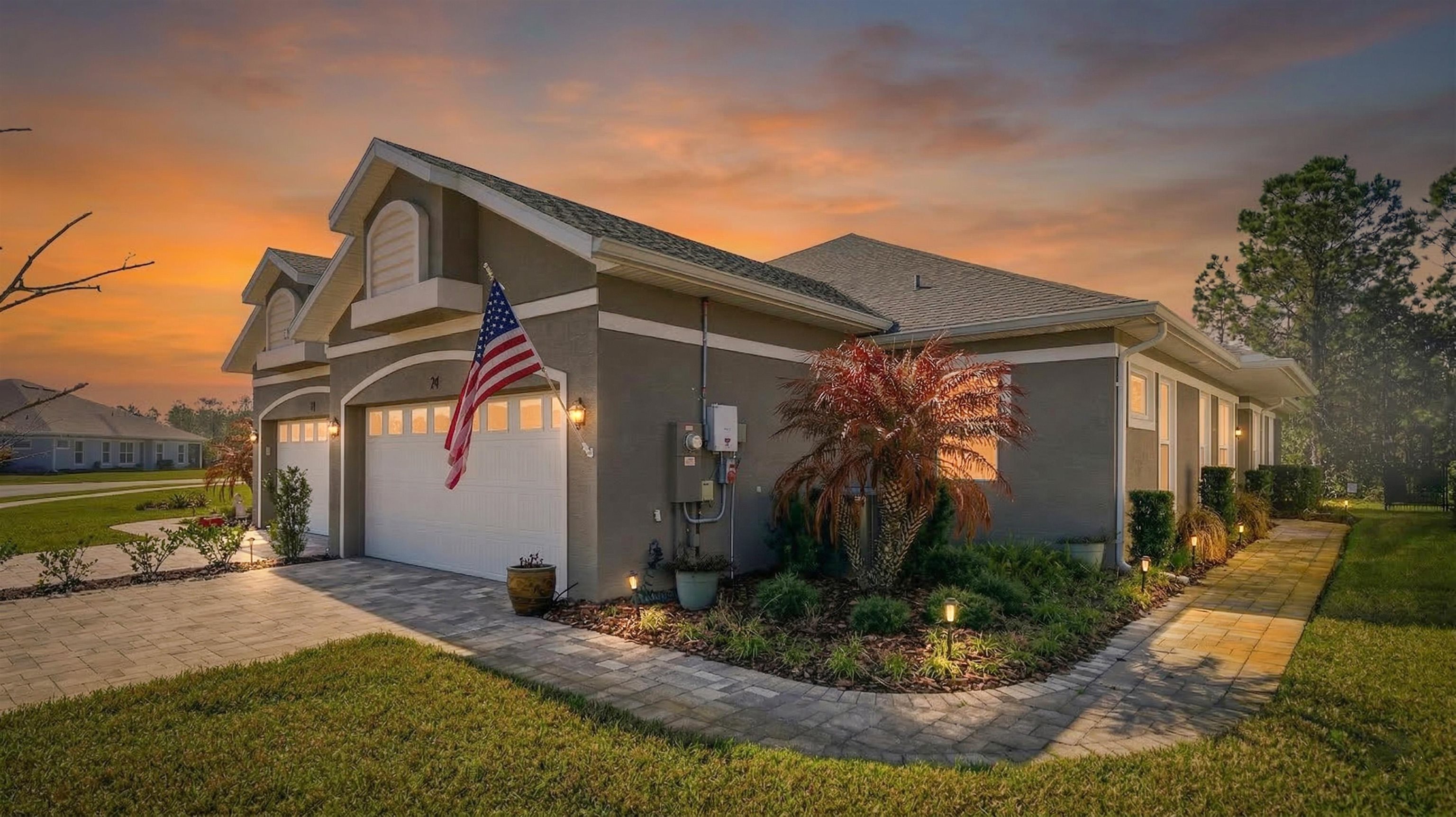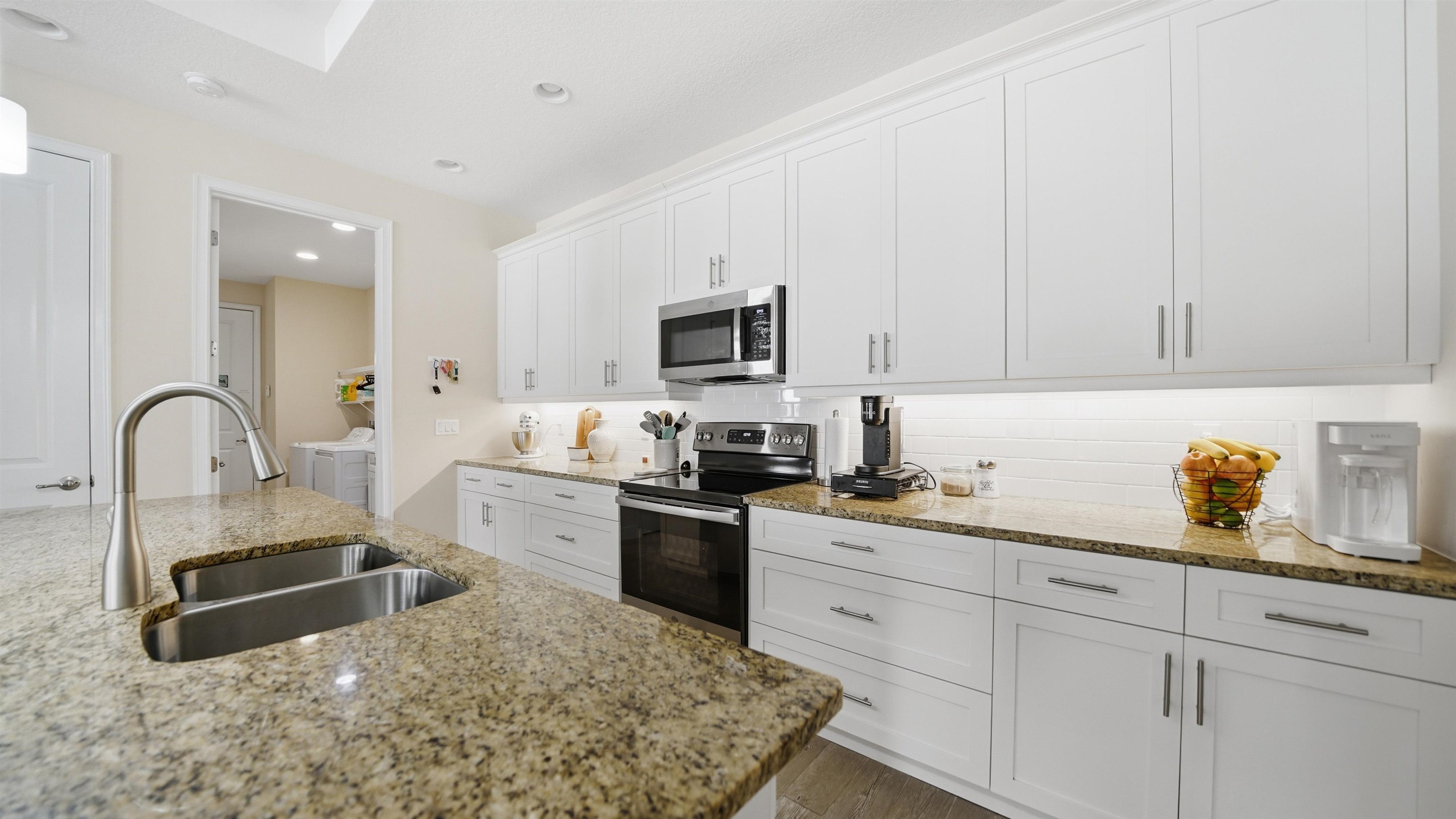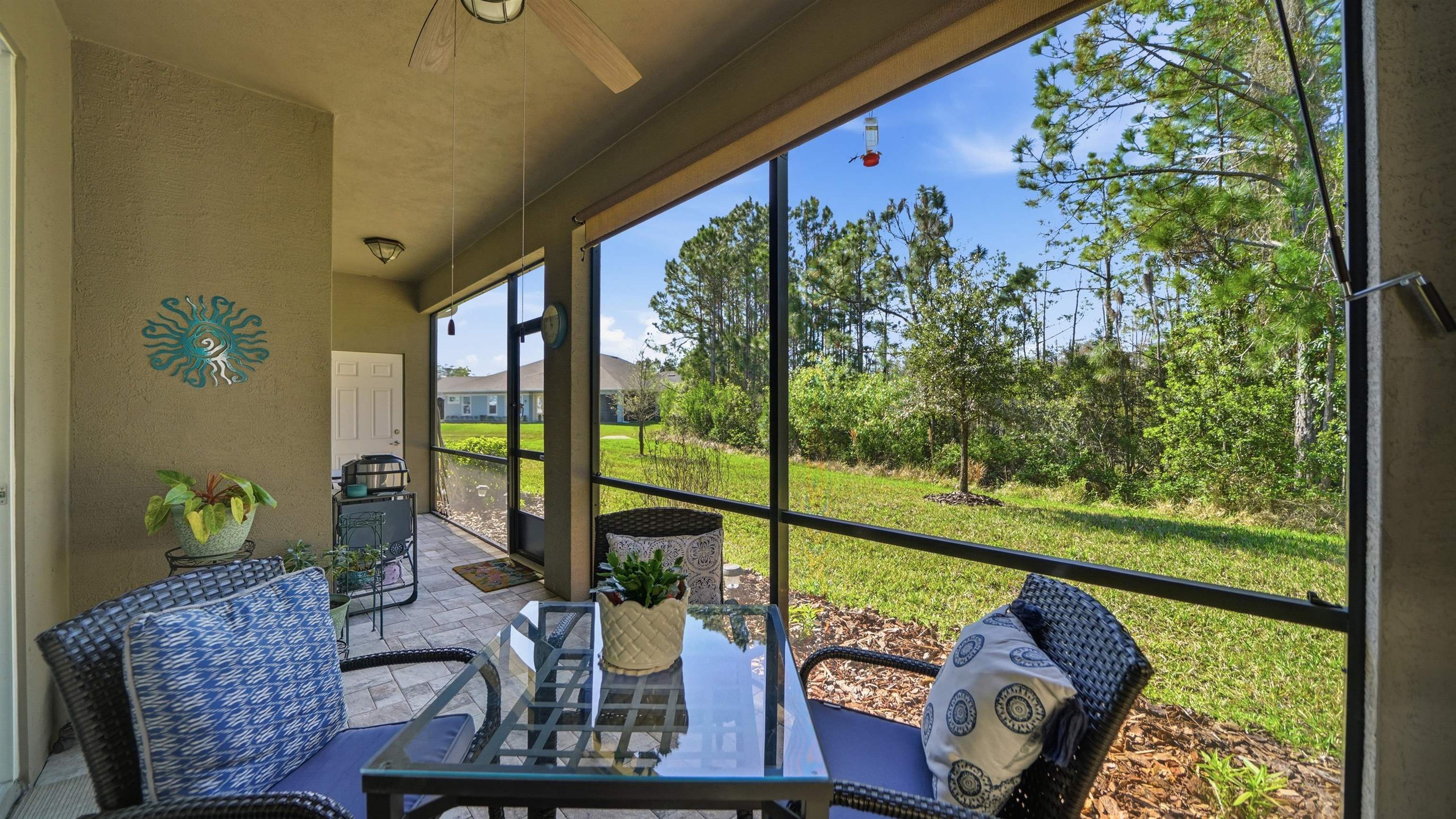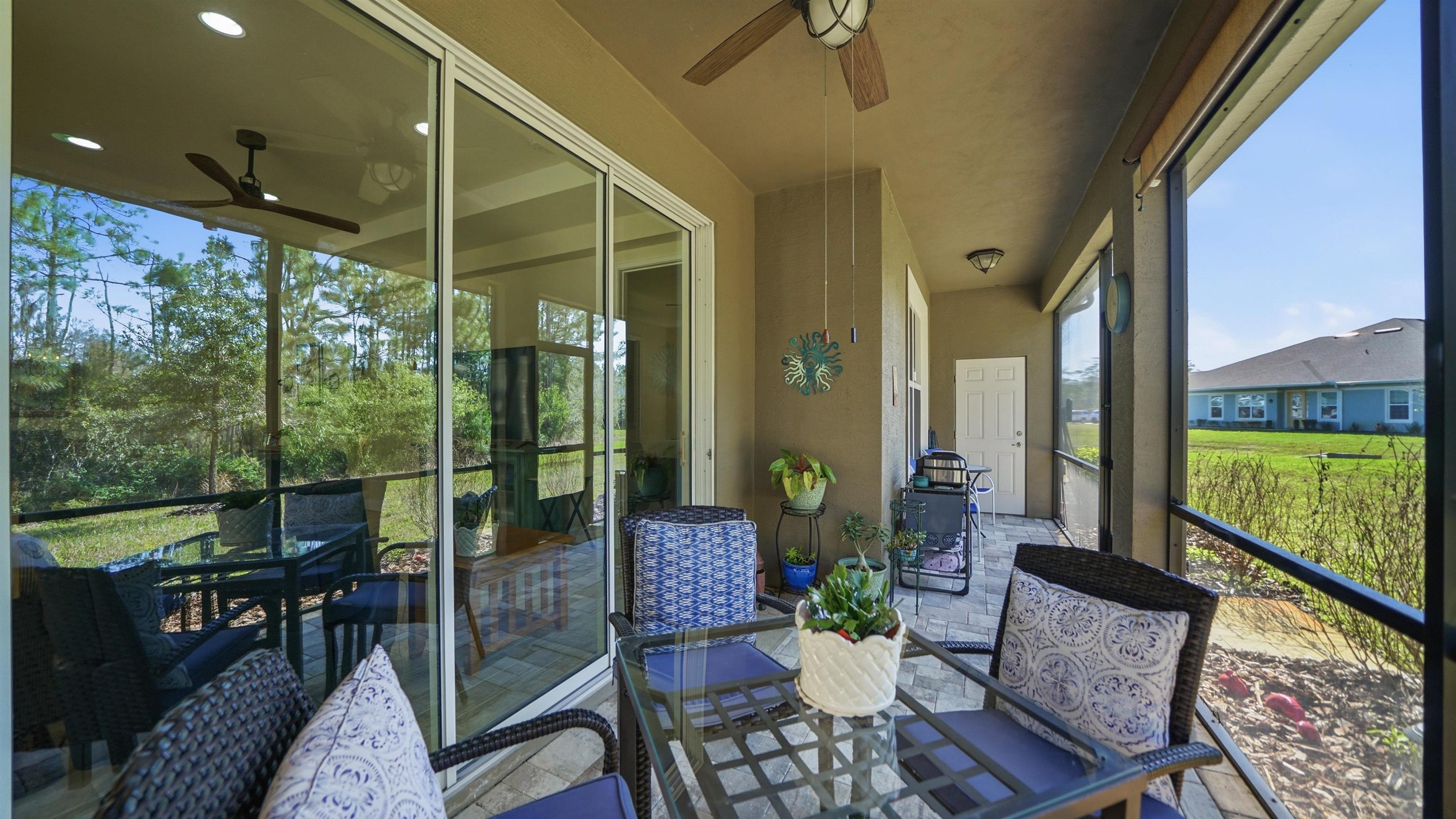 Welcome to 74 Wrendale Loop in the sought-after Huntington Villas within Hunter’s Ridge—an inviting 55+ community designed for comfortable, low-maintenance living and an active lifestyle. This beautifully maintained home offers approximately 1, 600 square feet of thoughtfully designed living space and has been lightly lived in as a part-time residence, making it feel exceptionally fresh and well cared for. The unique layout features two spacious master suites which are perfect for hosting guests or providing privacy for visiting family, along with an additional half bath for convenience. Everything about this home is high-end! Inside, you’ll find stylish and durable tile plank flooring throughout the entire home, combining modern aesthetics with easy maintenance and durability. The gorgeous kitchen is a standout, featuring elegant white shaker cabinetry, granite countertops, and a large island, with plenty of workspace for cooking and entertaining. Both bathrooms are upgraded with sleek quartz countertops and glass shower doors. Functionality meets convenience in the large utility room, which includes a washer and dryer along with matching cabinets that provide extra storage and organization. Step outside to the private lanai, where you can relax and enjoy peaceful preserve views—an ideal spot for morning coffee or unwinding at the end of the day. Living in Huntington Villas means more than just owning a beautiful home—it’s a lifestyle. Residents can enjoy a vibrant, social atmosphere with a variety of activities and events designed to keep you engaged, active, and connected with neighbors if you choose. The community also offers fantastic amenities, including two pools (Huntington Villas' own 55+ pool and Huntington Ridge's community pool), clubhouse, and fitness center. The HOA provides exceptional value and convenience, covering internet, cable, landscaping, pest control, community amenities, exterior power washing, and house and roof maintenance—allowing you to spend less time on upkeep and more time enjoying everything this wonderful community has to offer. If you’re looking for a move-in ready home in a welcoming 55+ community with beautiful surroundings and low-maintenance living, 74 Wrendale Loop is the perfect place to call home. All information pertaining to the property is deemed reliable, but not guaranteed. Information to be verified by the Buyer. Be advised that cameras may exist recording audio and video inside/outside the property, such as ring doorbells. Photos are digitally enhanced and could be altered, please verify.
