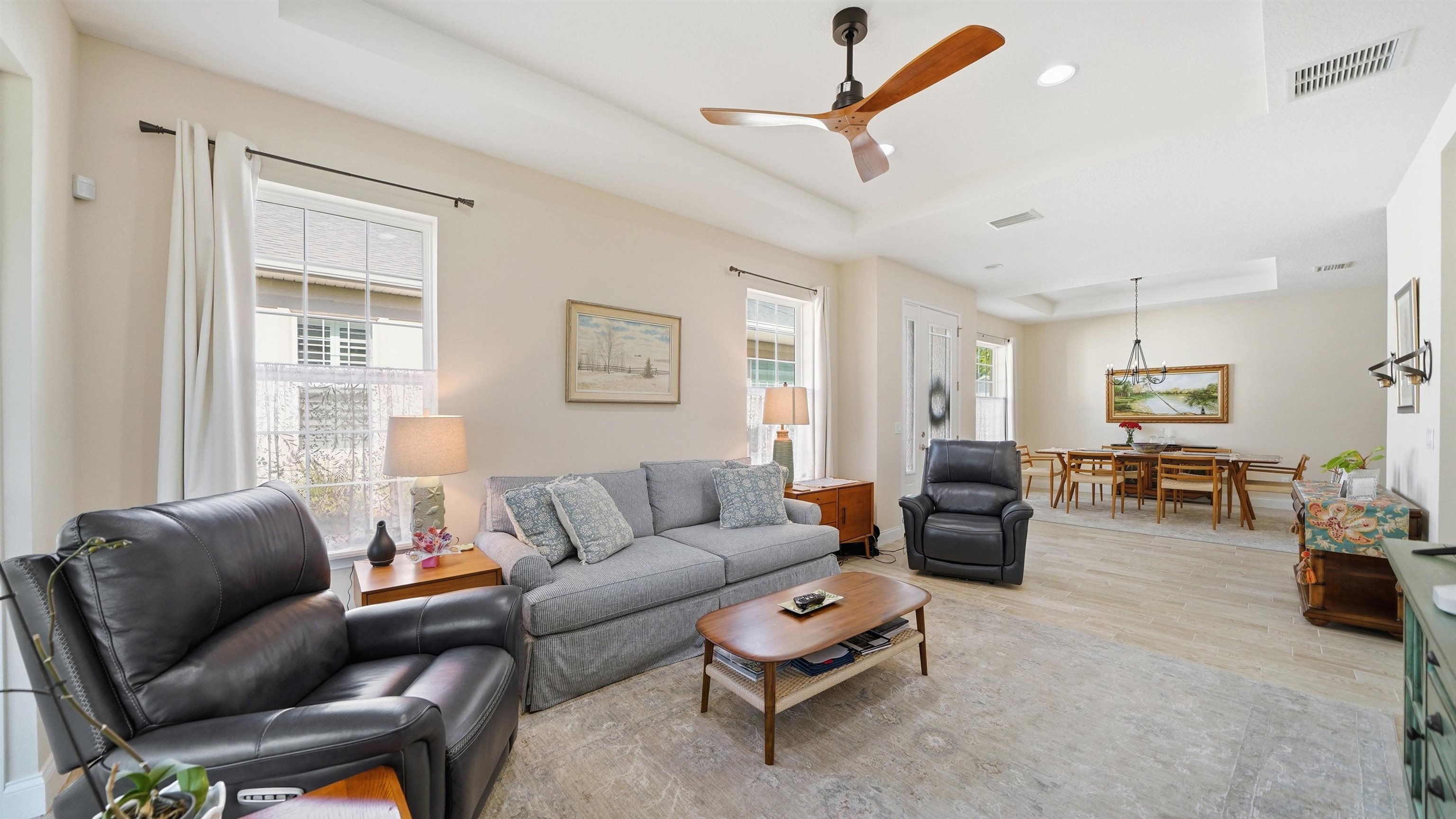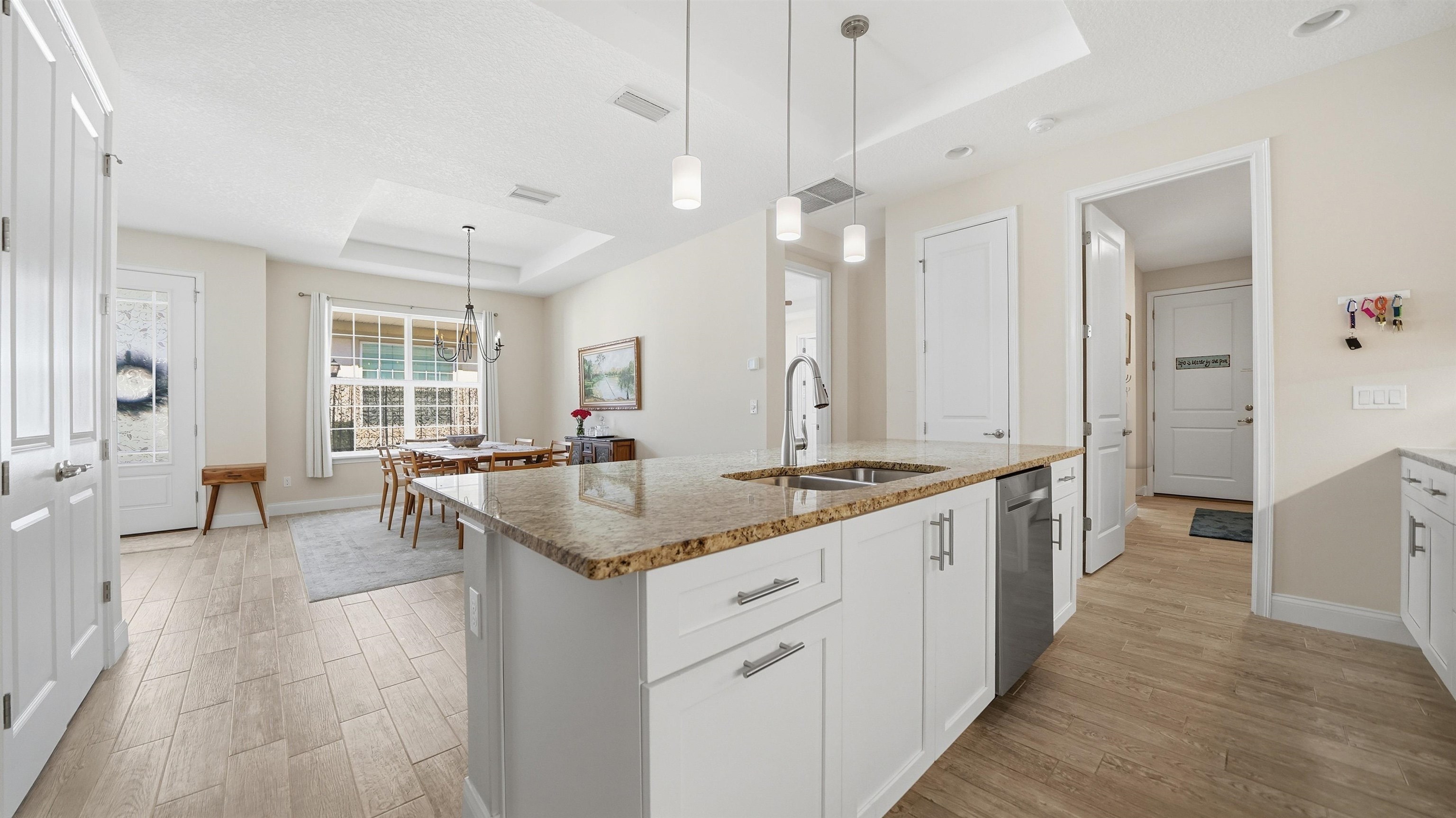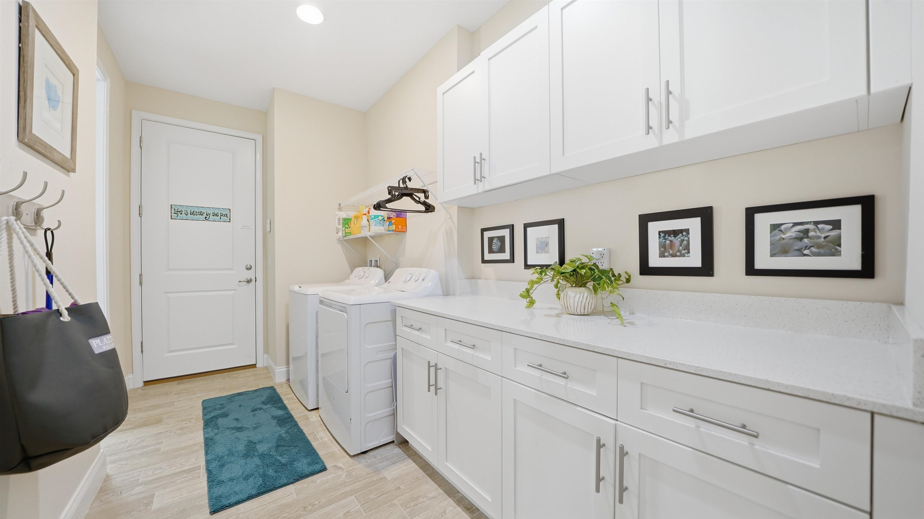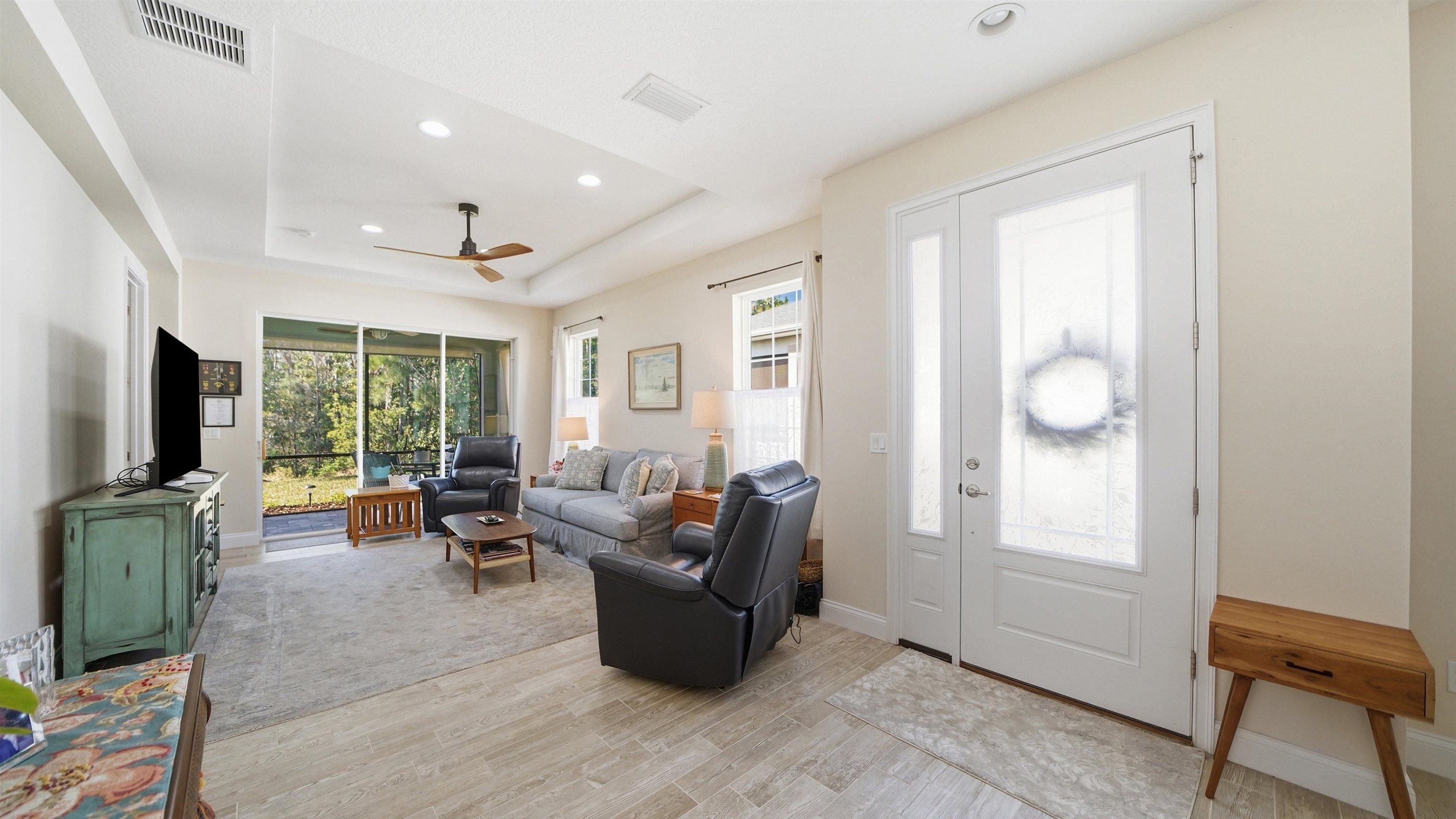 Welcome to 74 Wrendale Loop in the sought-after Huntington Villas within Hunter’s Ridge—an inviting 55+ community designed for comfortable, low-maintenance living and an active lifestyle. This beautifully maintained home offers approximately 1, 600 square feet of thoughtfully designed living space and has been lightly lived in as a part-time residence, making it feel exceptionally fresh and well cared for. The unique layout features two spacious master suites which are perfect for hosting guests or providing privacy for visiting family, along with an additional half bath for convenience. Everything about this home is high-end! Inside, you’ll find stylish and durable tile plank flooring throughout the entire home, combining modern aesthetics with easy maintenance and durability. The gorgeous kitchen is a standout, featuring elegant white shaker cabinetry, granite countertops, and a large island, with plenty of workspace for cooking and entertaining. Both bathrooms are upgraded with sleek quartz countertops and glass shower doors. Functionality meets convenience in the large utility room, which includes a washer and dryer along with matching cabinets that provide extra storage and organization. Step outside to the private lanai, where you can relax and enjoy peaceful preserve views—an ideal spot for morning coffee or unwinding at the end of the day. Living in Huntington Villas means more than just owning a beautiful home—it’s a lifestyle. Residents can enjoy a vibrant, social atmosphere with a variety of activities and events designed to keep you engaged, active, and connected with neighbors if you choose. The community also offers fantastic amenities, including two pools (Huntington Villas' own 55+ pool and Huntington Ridge's community pool), clubhouse, and fitness center. The HOA provides exceptional value and convenience, covering internet, cable, landscaping, pest control, community amenities, exterior power washing, and house and roof maintenance—allowing you to spend less time on upkeep and more time enjoying everything this wonderful community has to offer. If you’re looking for a move-in ready home in a welcoming 55+ community with beautiful surroundings and low-maintenance living, 74 Wrendale Loop is the perfect place to call home. All information pertaining to the property is deemed reliable, but not guaranteed. Information to be verified by the Buyer. Be advised that cameras may exist recording audio and video inside/outside the property, such as ring doorbells. Photos are digitally enhanced and could be altered, please verify.