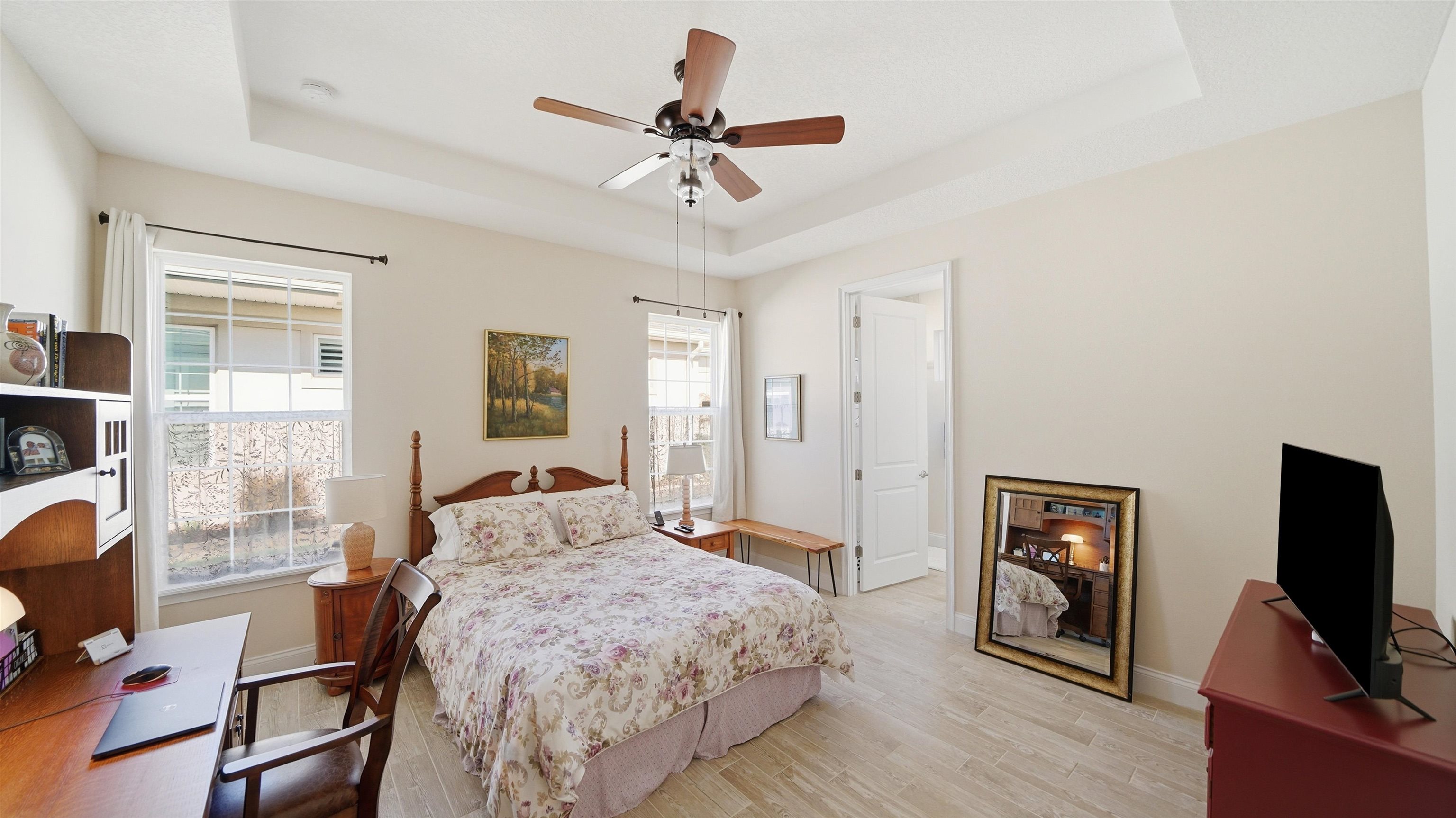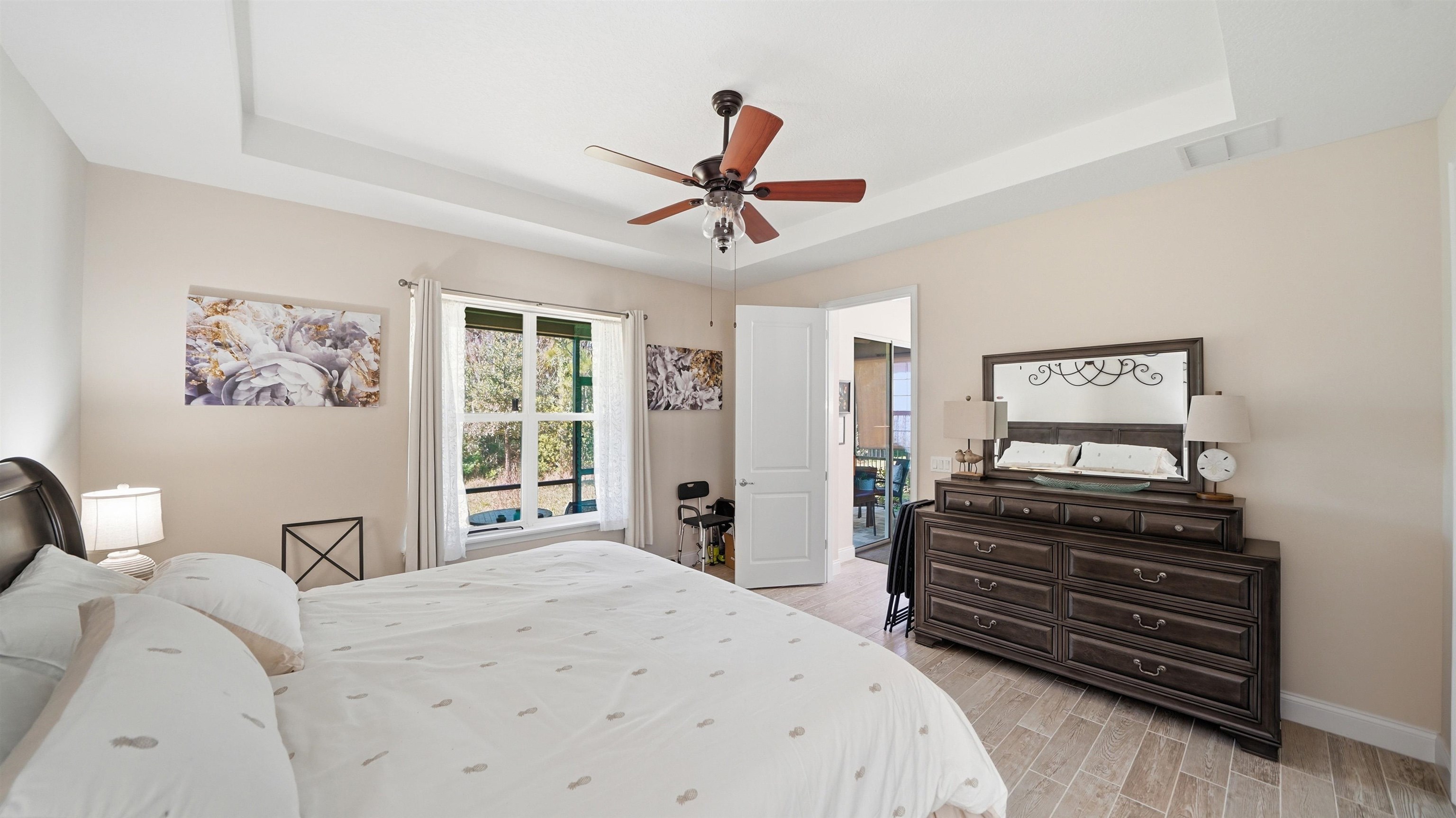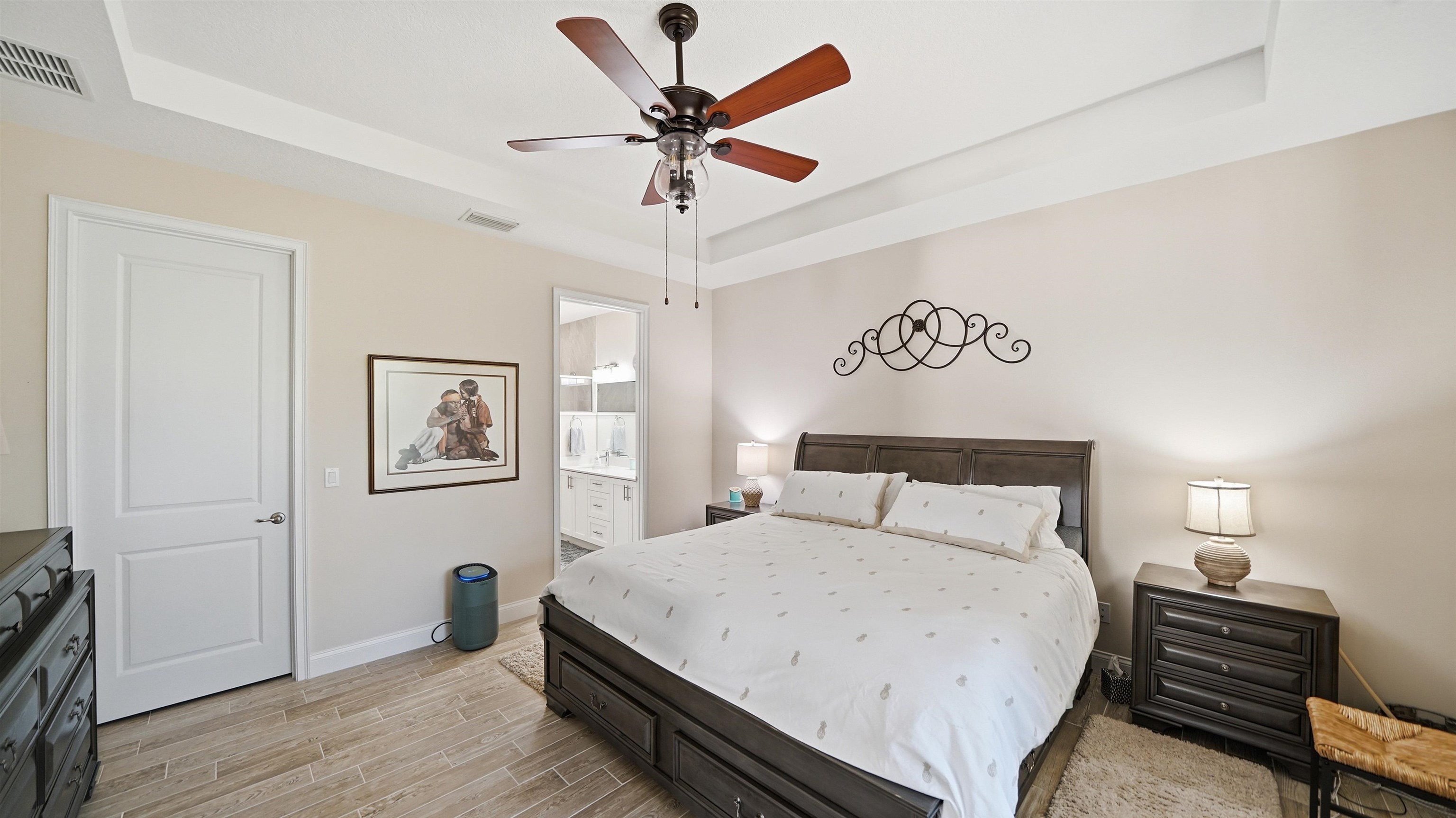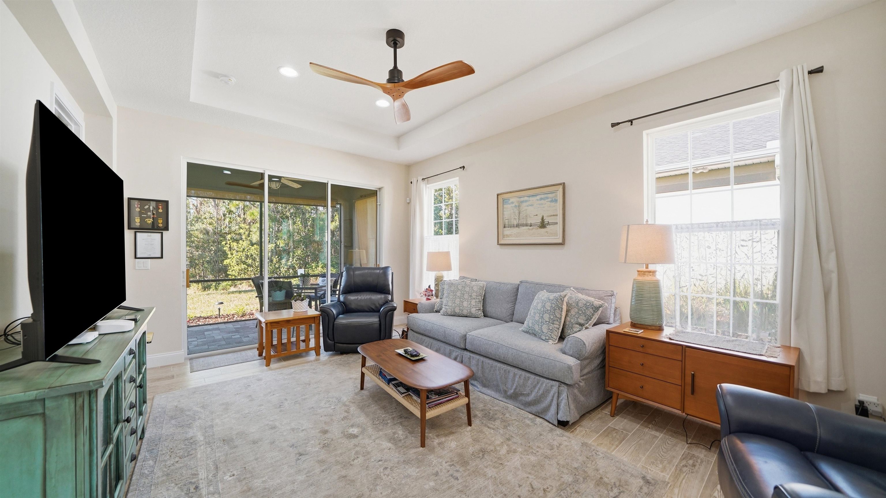 Welcome to 74 Wrendale Loop in the sought-after Huntington Villas within Hunter’s Ridge—an inviting 55+ community designed for comfortable, low-maintenance living and an active lifestyle. This beautifully maintained home offers approximately 1, 600 square feet of thoughtfully designed living space and has been lightly lived in as a part-time residence, making it feel exceptionally fresh and well cared for. The unique layout features two spacious master suites which are perfect for hosting guests or providing privacy for visiting family, along with an additional half bath for convenience. Everything about this home is high-end! Inside, you’ll find stylish and durable tile plank flooring throughout the entire home, combining modern aesthetics with easy maintenance and durability. The gorgeous kitchen is a standout, featuring elegant white shaker cabinetry, granite countertops, and a large island, with plenty of workspace for cooking and entertaining. Both bathrooms are upgraded with sleek quartz countertops and glass shower doors. Functionality meets convenience in the large utility room, which includes a washer and dryer along with matching cabinets that provide extra storage and organization. Step outside to the private lanai, where you can relax and enjoy peaceful preserve views—an ideal spot for morning coffee or unwinding at the end of the day. Living in Huntington Villas means more than just owning a beautiful home—it’s a lifestyle. Residents can enjoy a vibrant, social atmosphere with a variety of activities and events designed to keep you engaged, active, and connected with neighbors if you choose. The community also offers fantastic amenities, including two pools (Huntington Villas' own 55+ pool and Huntington Ridge's community pool), clubhouse, and fitness center. The HOA provides exceptional value and convenience, covering internet, cable, landscaping, pest control, community amenities, exterior power washing, and house and roof maintenance—allowing you to spend less time on upkeep and more time enjoying everything this wonderful community has to offer. If you’re looking for a move-in ready home in a welcoming 55+ community with beautiful surroundings and low-maintenance living, 74 Wrendale Loop is the perfect place to call home. All information pertaining to the property is deemed reliable, but not guaranteed. Information to be verified by the Buyer. Be advised that cameras may exist recording audio and video inside/outside the property, such as ring doorbells. Photos are digitally enhanced and could be altered, please verify.