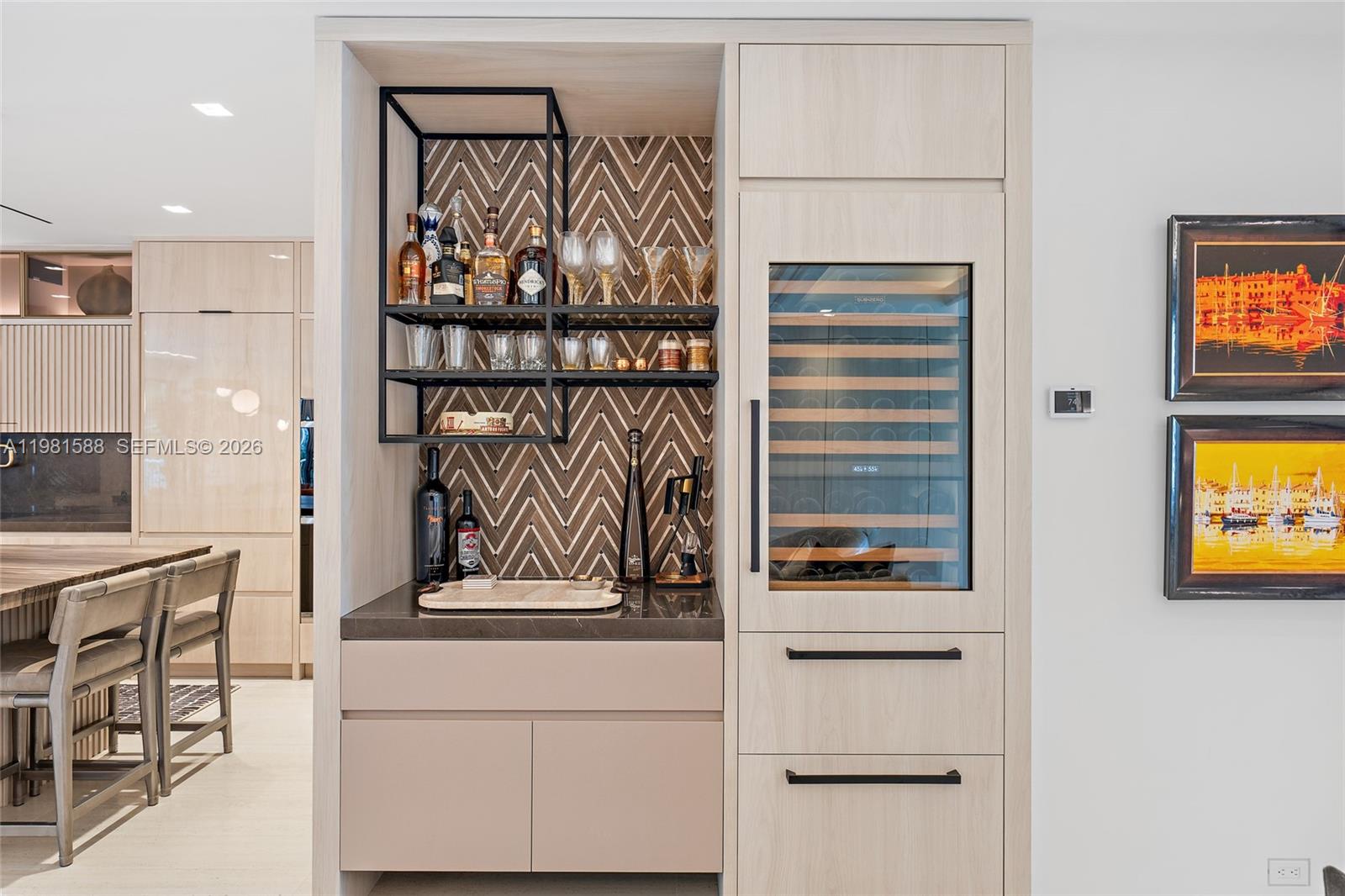 Fully renovated and thoughtfully re-designed, this exceptional cottage offers a rare blend of sophisticated design and effortless indoor-outdoor living. High-end finishes, sleek clean lines, and a bright open floor plan create a modern yet inviting atmosphere throughout the home. Expansive impact glass windows and doors fill the interiors with natural light while seamlessly connecting the living spaces to the outdoors. The redesigned layout maximizes flow and functionality—creating a one-of-a-kind cottage floor plan unlike any other in the community. Step outside to a backyard that rivals homes twice its size. Designed for both relaxation and entertaining, the outdoor space features multiple lounge areas, an impressive summer kitchen, and thoughtfully designed entertainment spaces.