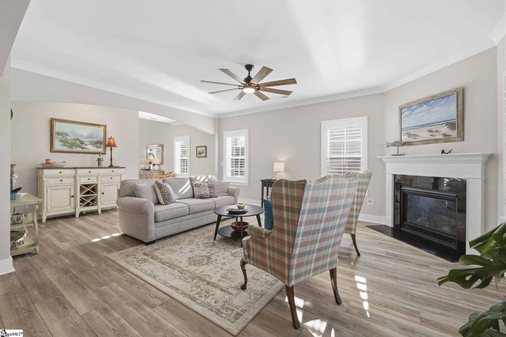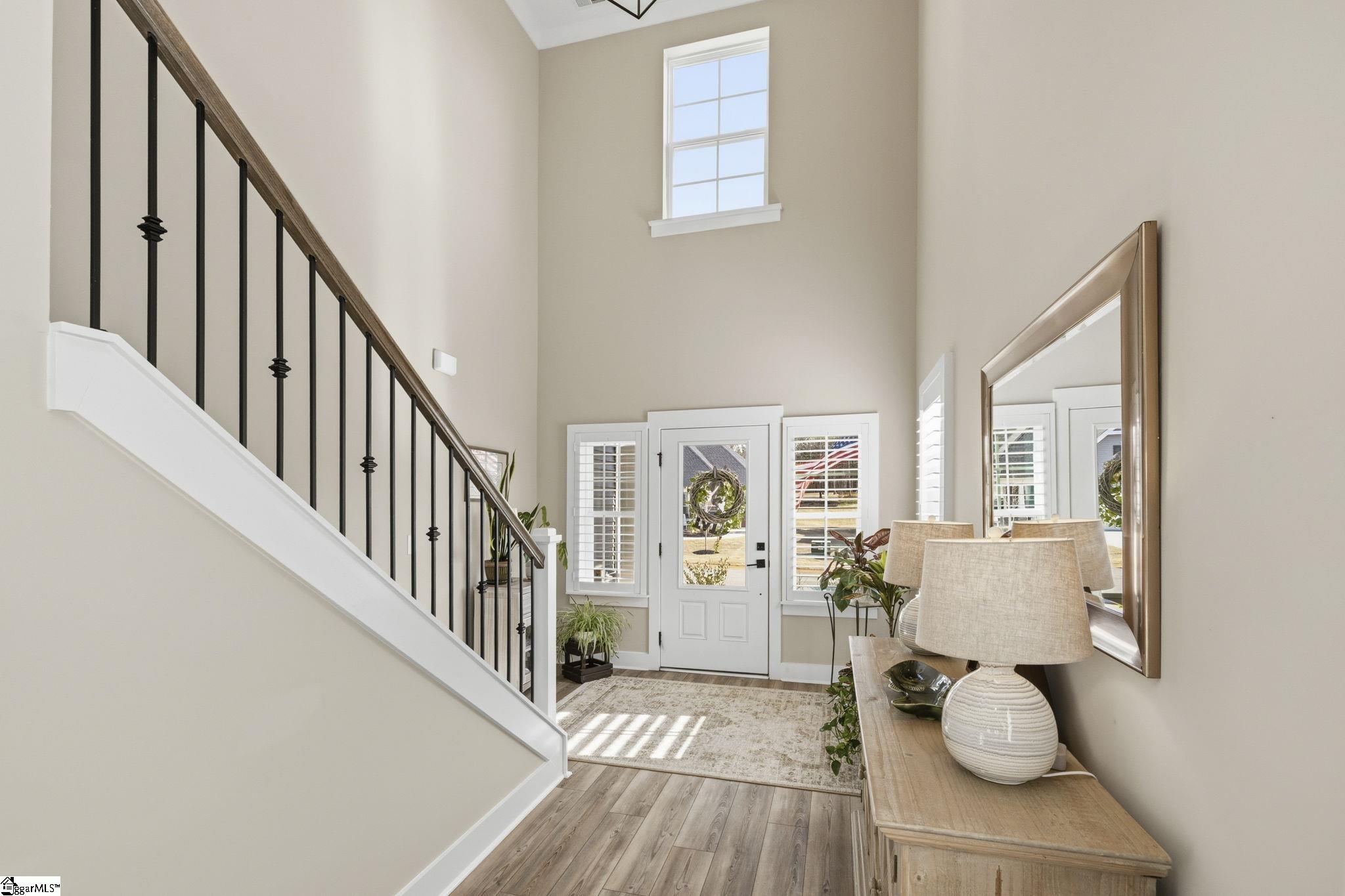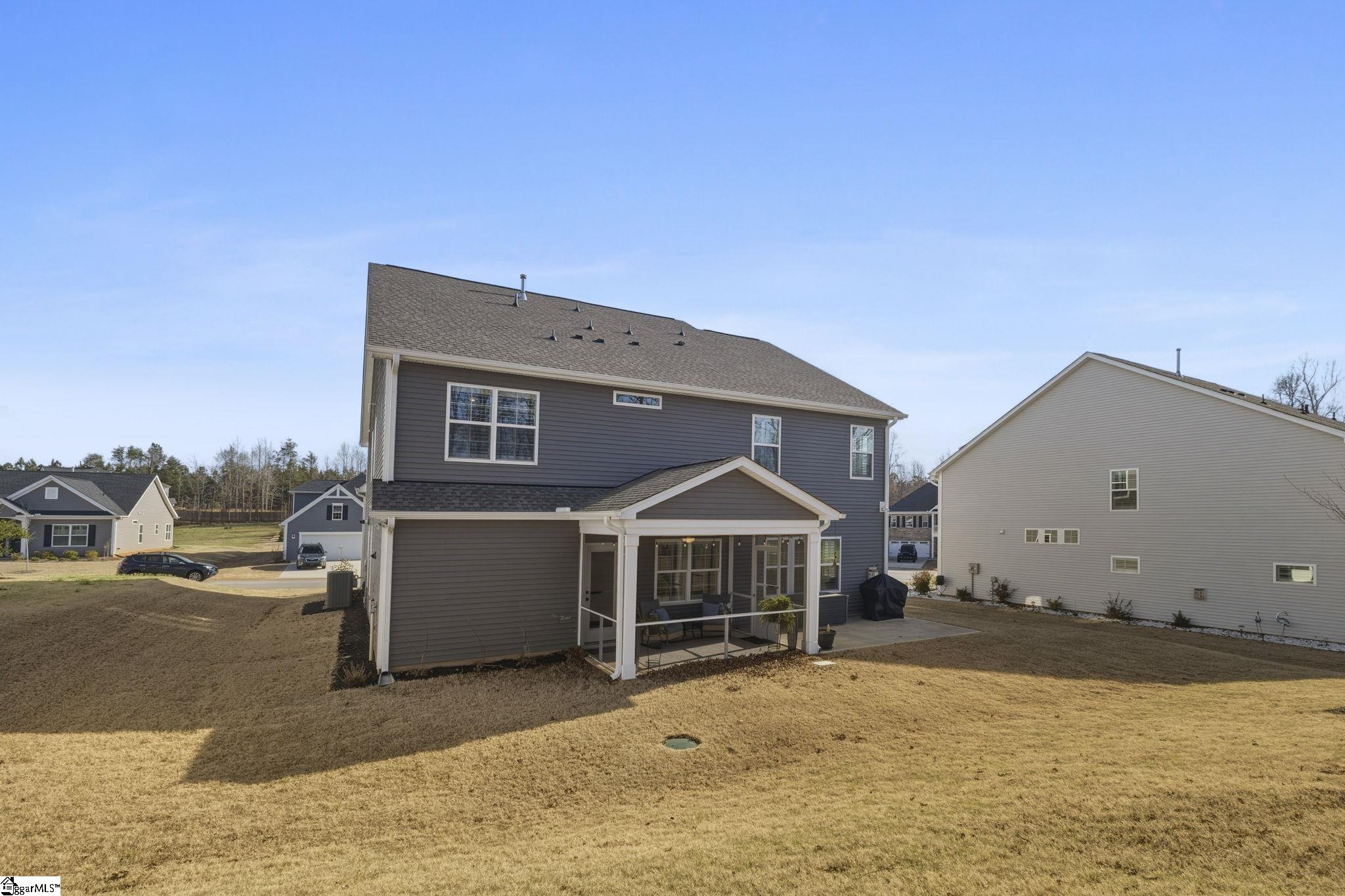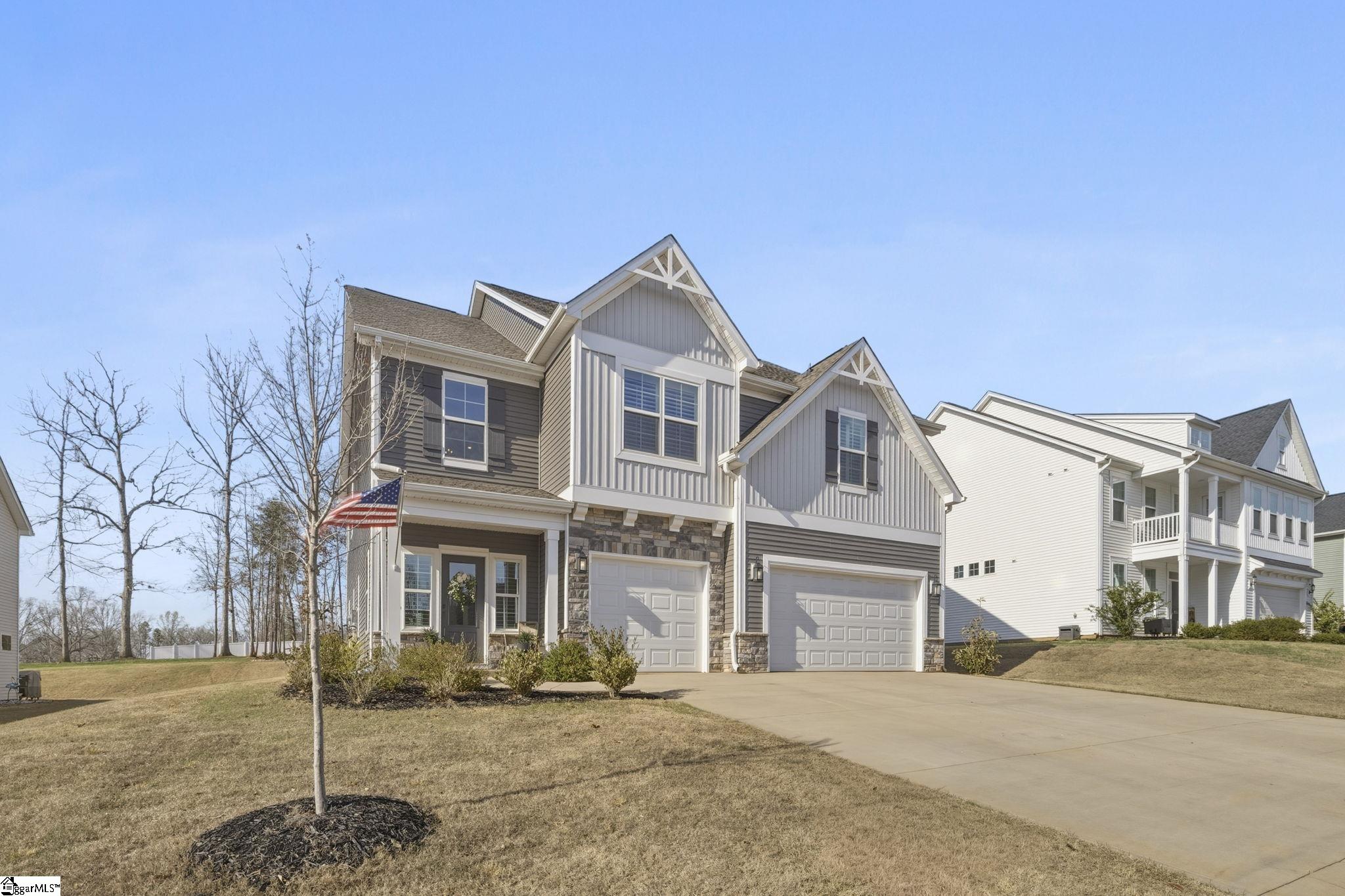 Beautifully maintained and just like new, this immaculate 5-bedroom, 3. 5-bath home on half an acre is located on a cul-de-sac in Phase II of Providence Farm and offers convenient access to I-26 and I-85, making travel to Asheville, Hendersonville, Greenville, and downtown Spartanburg easy. Step inside to a grand two-story foyer, an open floor plan, 9 foot ceilings downstairs, sun-filled rooms, and thoughtful upgrades throughout. The main level features a formal dining room with coffered ceilings, a spacious family room with a gas log fireplace, and a gourmet kitchen designed for both everyday living and entertaining. The kitchen includes bar seating, a prep island, butlers pantry, GE Gourmet Profile appliances with built-in convection microwave and oven, quartz countertops, upgraded soft-close cabinetry with roll-out drawers, under-cabinet lighting, exterior-vented cooktop, farmhouse sink, gas range, and a beautiful backsplash. Luxury vinyl plank flooring runs throughout the home with no carpet, complemented by plantation shutters on every window and upgraded crown molding and trim. A private home office on the main level could also serve as a 5th bedroom with walk in closet and is conveniently located near a half bath and a mud nook with bench and cubbies for added storage. Upstairs, the spacious primary suite serves as a private retreat featuring tray ceilings, sound insulation for added privacy, a luxurious bathroom with frameless walk-in shower, double vanity with quartz countertops, comfort-height commodes and vanities, and an oversized walk-in closet. The upper level also includes a large loft area, three additional generously sized bedrooms, two full bathrooms, and a dedicated laundry room. Additional highlights include a three-car attached garage, a tankless gas water heater, gas system updated to support portable generator, and ample storage space throughout home, garage and in attic. Step outside to the expansive backyard and enjoy your outdoor retreat featuring a screened-in porch, patio, and cozy fire pit, perfect for relaxing or entertaining. Conveniently located near top-rated schools, shopping, major highways, Lake Bowen and the Blue Ridge Mountains, this exceptional home offers modern elegance, thoughtful design, and everyday functionality as well as outdoor living in one of the Upstate's most sought-after communities. Schedule your private tour today!