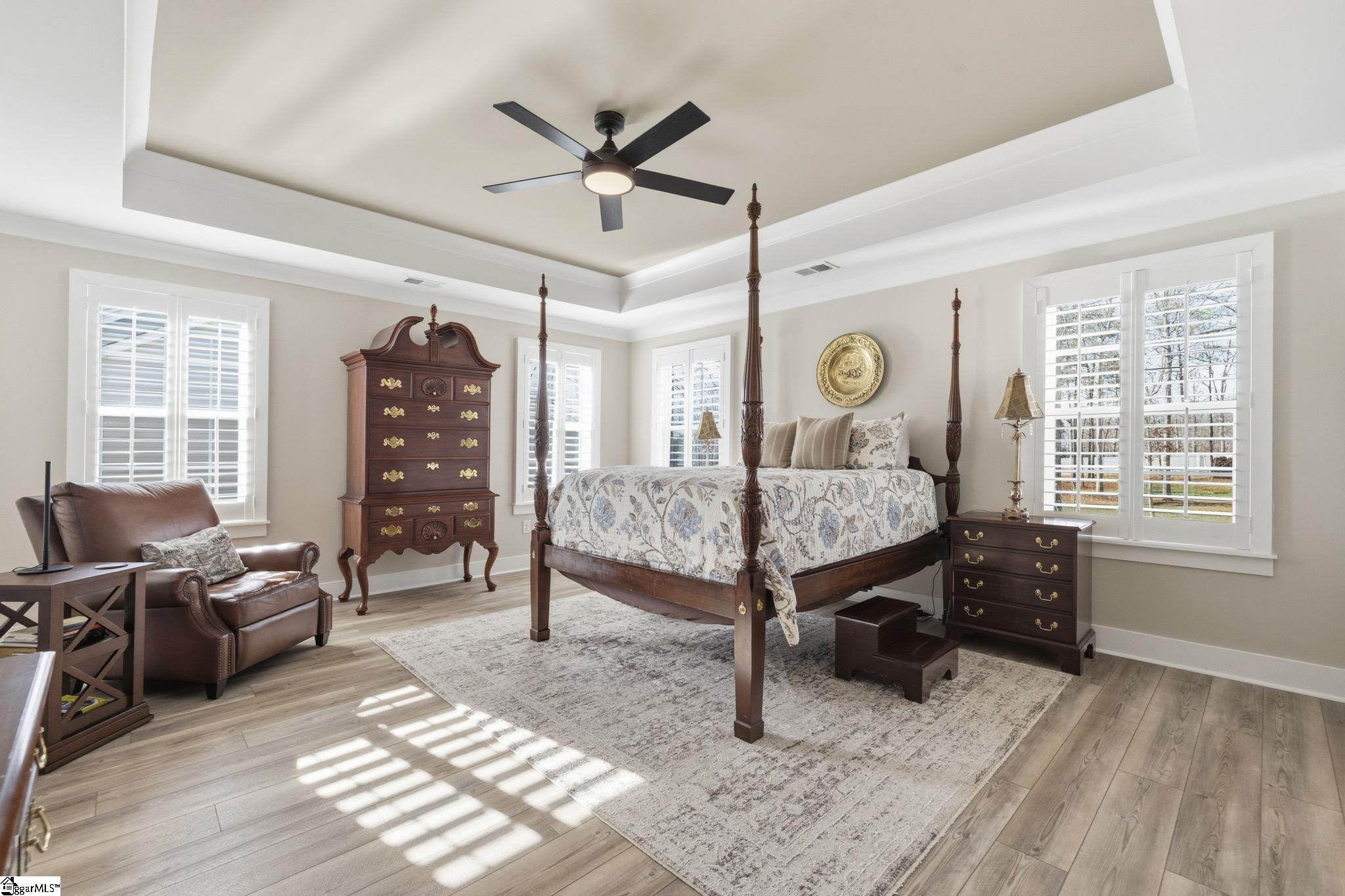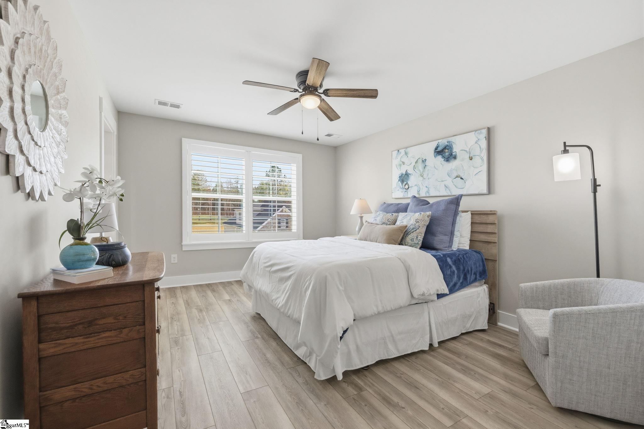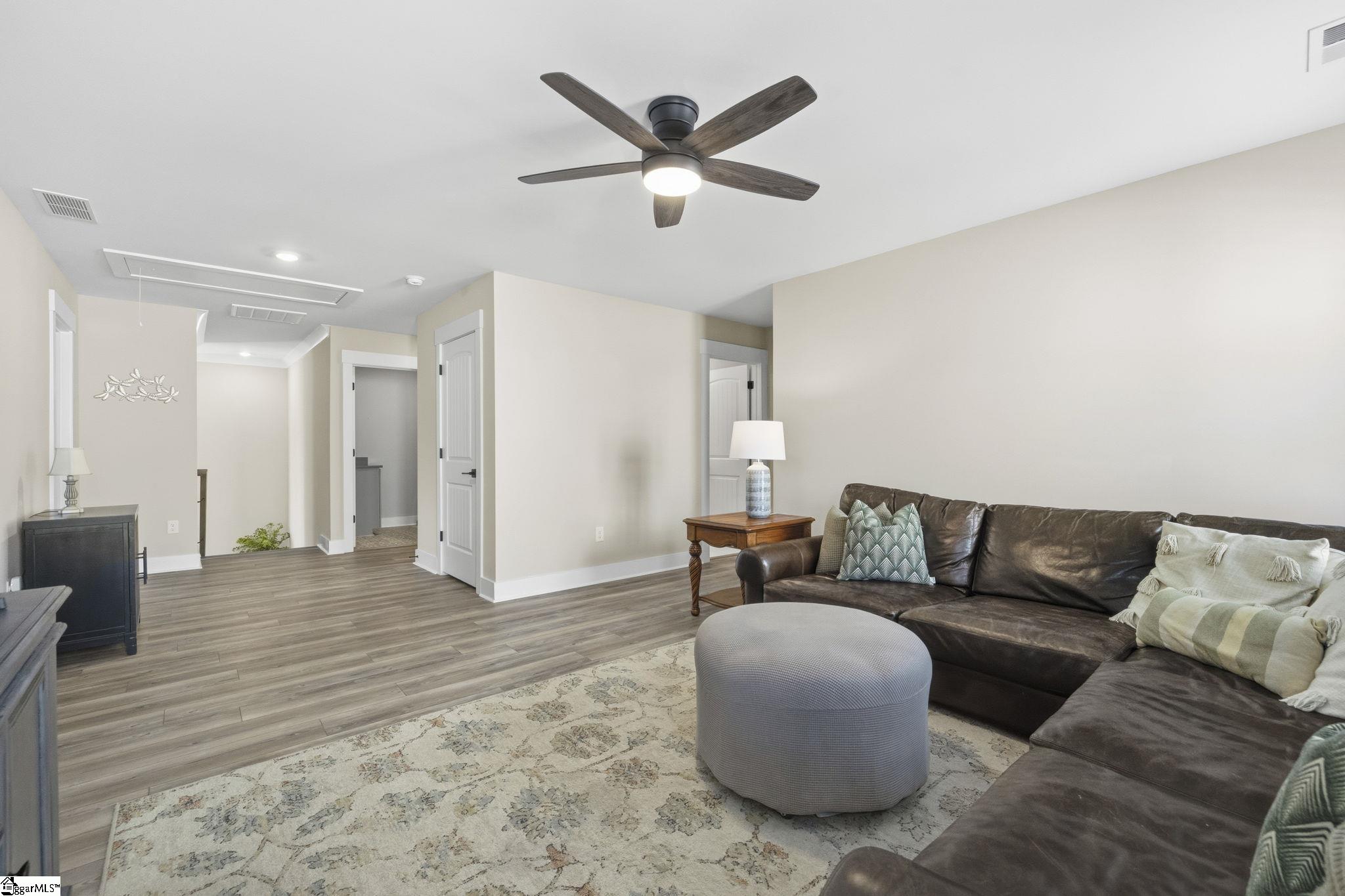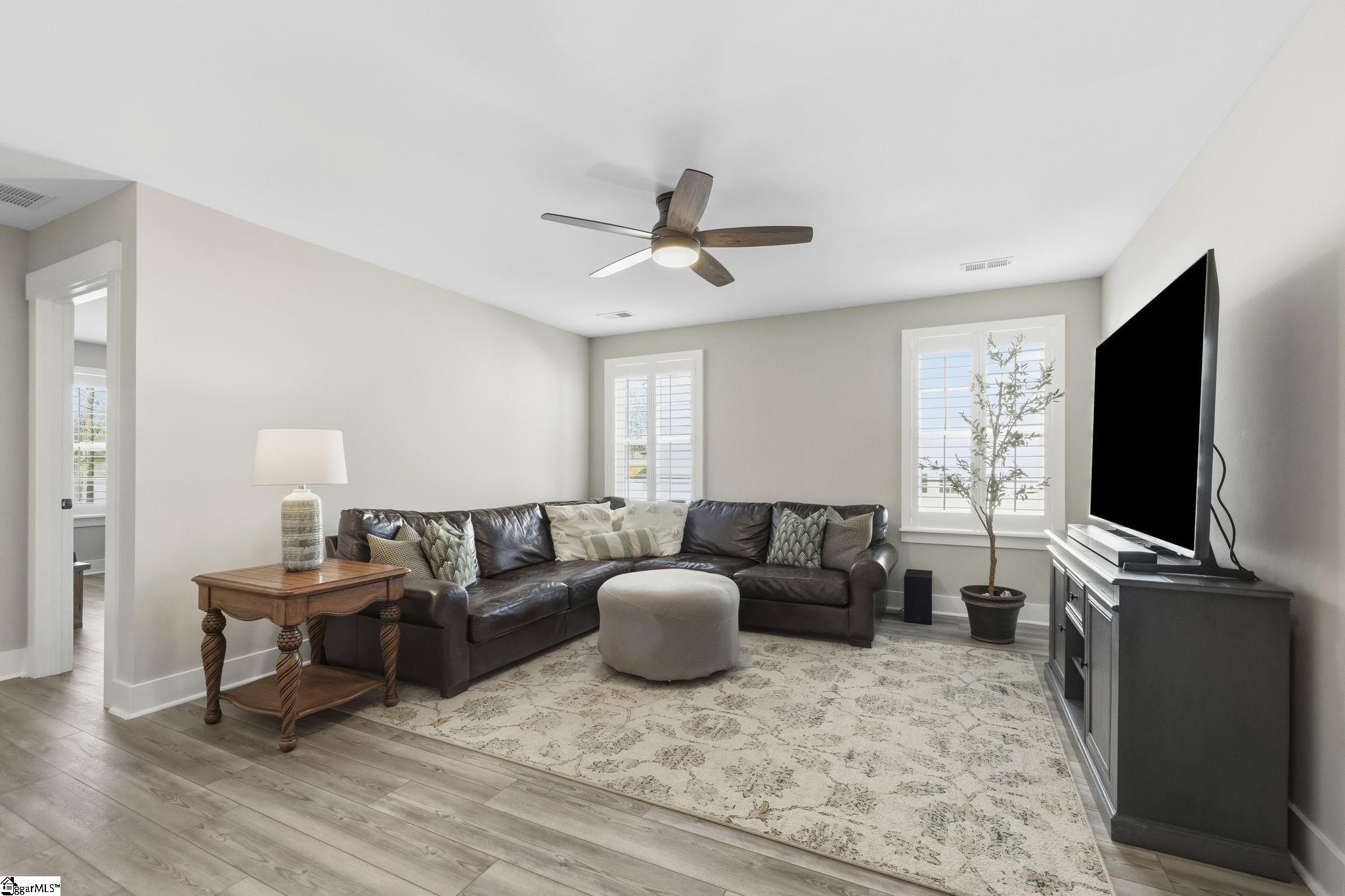 Beautifully maintained and just like new, this immaculate 5-bedroom, 3. 5-bath home on half an acre is located on a cul-de-sac in Phase II of Providence Farm and offers convenient access to I-26 and I-85, making travel to Asheville, Hendersonville, Greenville, and downtown Spartanburg easy. Step inside to a grand two-story foyer, an open floor plan, 9 foot ceilings downstairs, sun-filled rooms, and thoughtful upgrades throughout. The main level features a formal dining room with coffered ceilings, a spacious family room with a gas log fireplace, and a gourmet kitchen designed for both everyday living and entertaining. The kitchen includes bar seating, a prep island, butlers pantry, GE Gourmet Profile appliances with built-in convection microwave and oven, quartz countertops, upgraded soft-close cabinetry with roll-out drawers, under-cabinet lighting, exterior-vented cooktop, farmhouse sink, gas range, and a beautiful backsplash. Luxury vinyl plank flooring runs throughout the home with no carpet, complemented by plantation shutters on every window and upgraded crown molding and trim. A private home office on the main level could also serve as a 5th bedroom with walk in closet and is conveniently located near a half bath and a mud nook with bench and cubbies for added storage. Upstairs, the spacious primary suite serves as a private retreat featuring tray ceilings, sound insulation for added privacy, a luxurious bathroom with frameless walk-in shower, double vanity with quartz countertops, comfort-height commodes and vanities, and an oversized walk-in closet. The upper level also includes a large loft area, three additional generously sized bedrooms, two full bathrooms, and a dedicated laundry room. Additional highlights include a three-car attached garage, a tankless gas water heater, gas system updated to support portable generator, and ample storage space throughout home, garage and in attic. Step outside to the expansive backyard and enjoy your outdoor retreat featuring a screened-in porch, patio, and cozy fire pit, perfect for relaxing or entertaining. Conveniently located near top-rated schools, shopping, major highways, Lake Bowen and the Blue Ridge Mountains, this exceptional home offers modern elegance, thoughtful design, and everyday functionality as well as outdoor living in one of the Upstate's most sought-after communities. Schedule your private tour today!