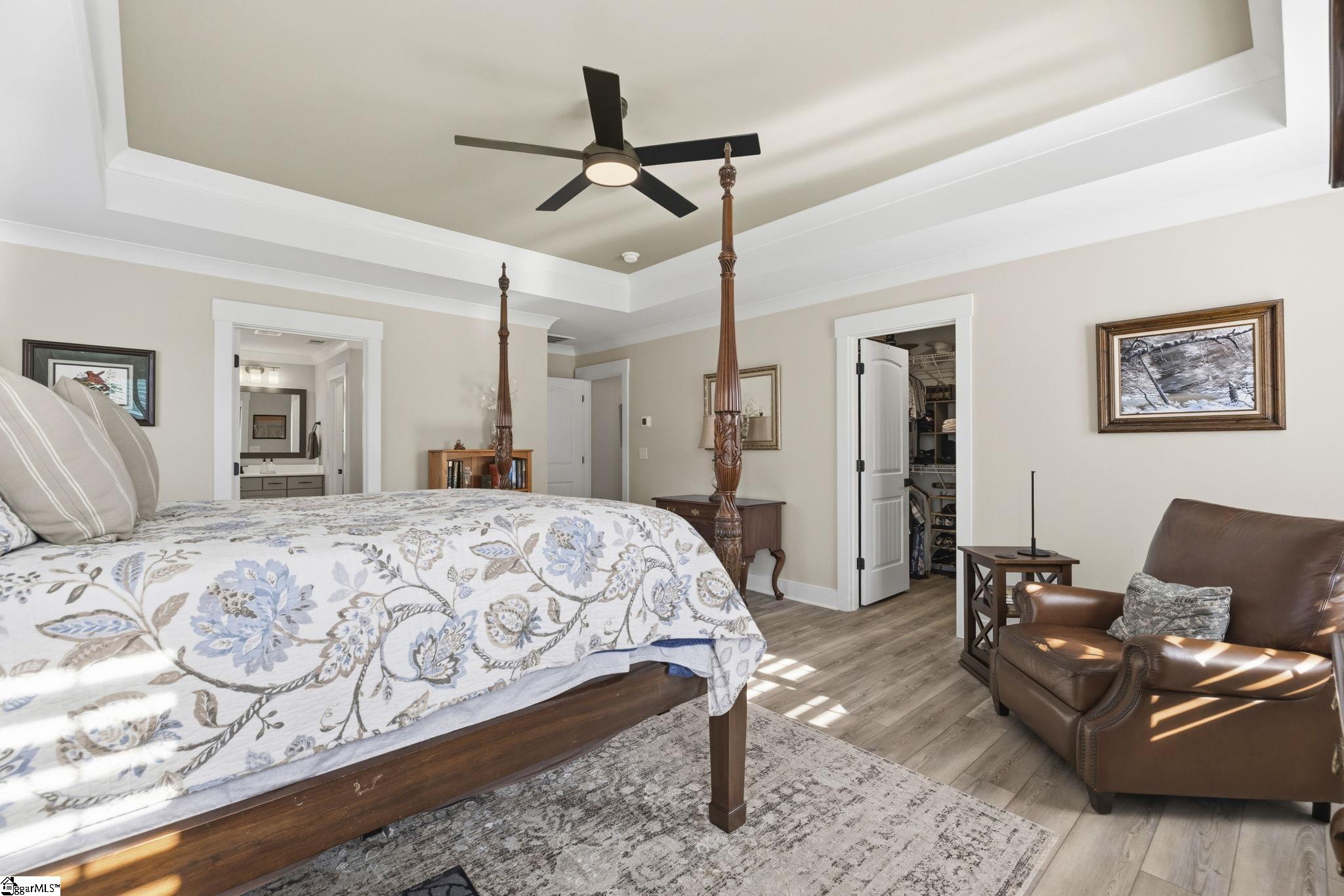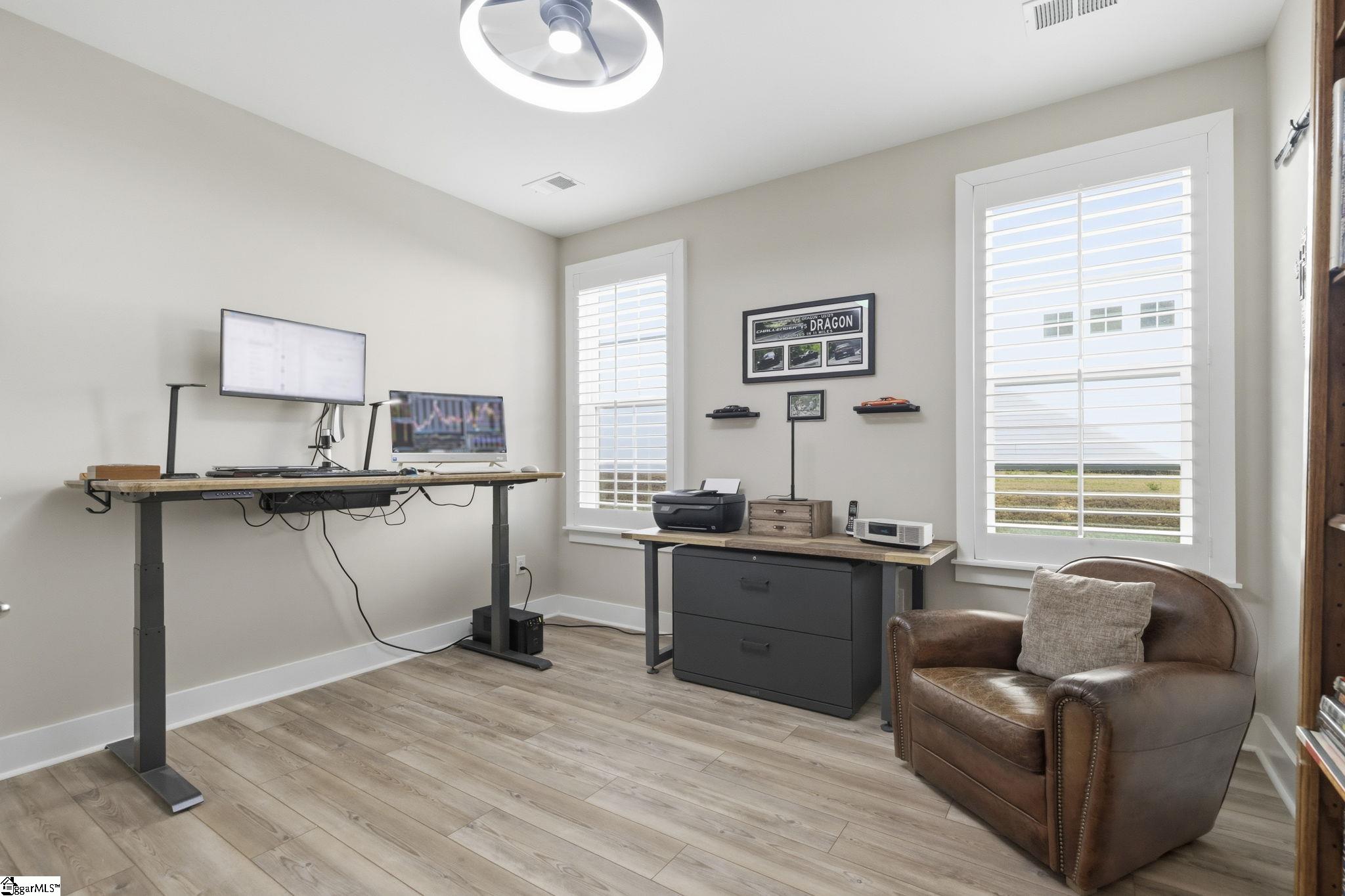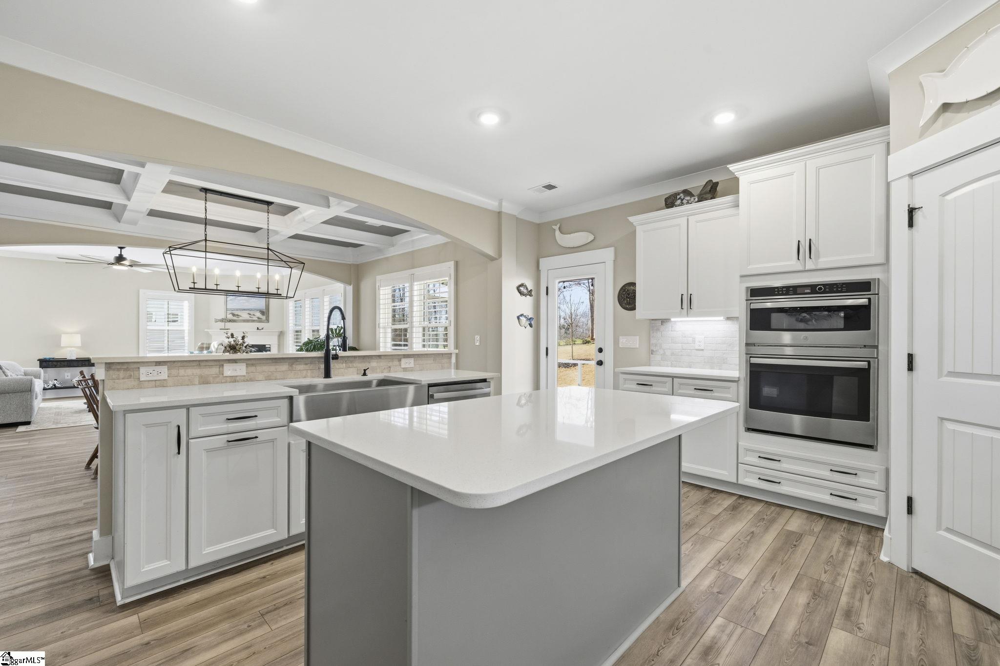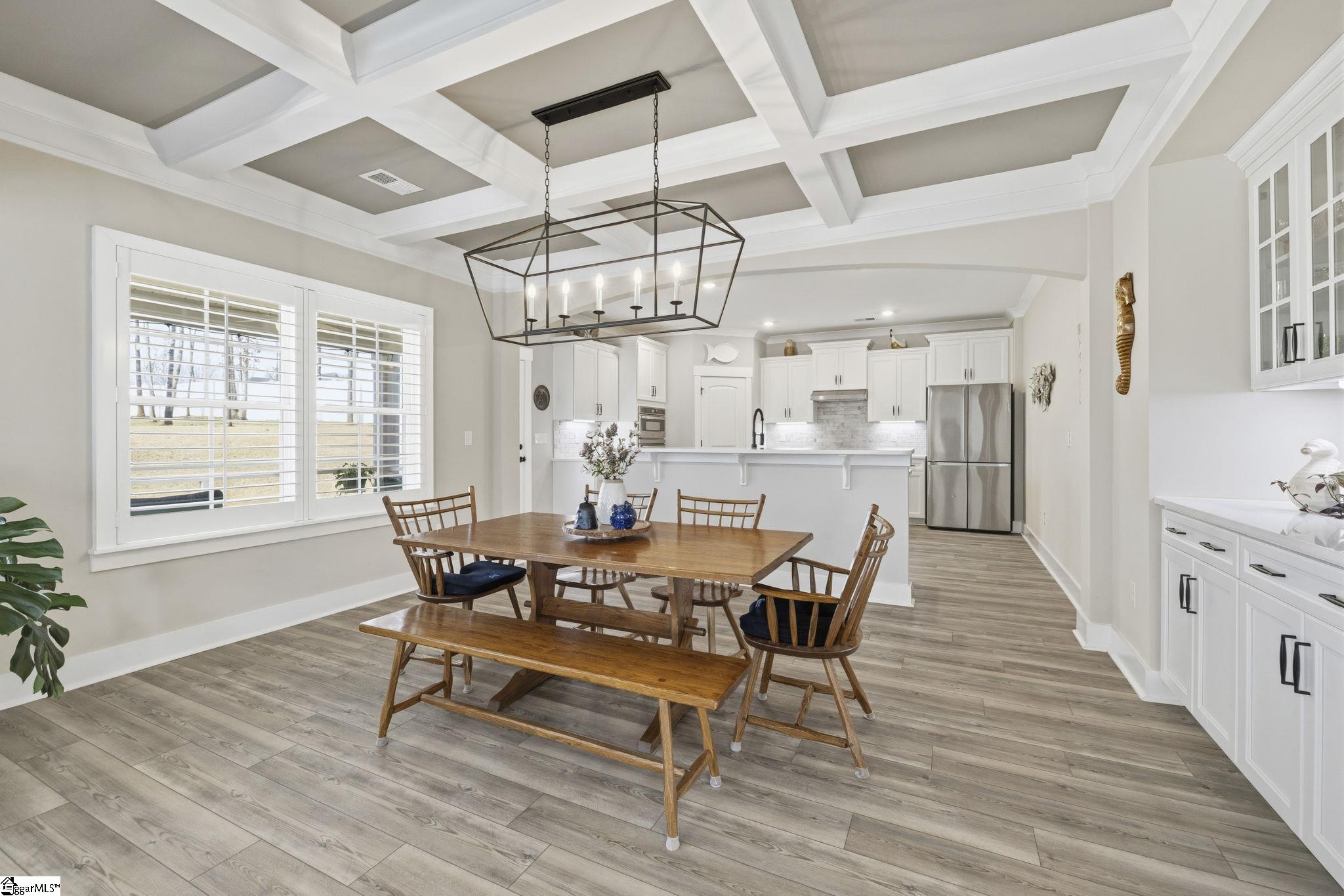 Beautifully maintained and just like new, this immaculate 5-bedroom, 3. 5-bath home on half an acre is located on a cul-de-sac in Phase II of Providence Farm and offers convenient access to I-26 and I-85, making travel to Asheville, Hendersonville, Greenville, and downtown Spartanburg easy. Step inside to a grand two-story foyer, an open floor plan, 9 foot ceilings downstairs, sun-filled rooms, and thoughtful upgrades throughout. The main level features a formal dining room with coffered ceilings, a spacious family room with a gas log fireplace, and a gourmet kitchen designed for both everyday living and entertaining. The kitchen includes bar seating, a prep island, butlers pantry, GE Gourmet Profile appliances with built-in convection microwave and oven, quartz countertops, upgraded soft-close cabinetry with roll-out drawers, under-cabinet lighting, exterior-vented cooktop, farmhouse sink, gas range, and a beautiful backsplash. Luxury vinyl plank flooring runs throughout the home with no carpet, complemented by plantation shutters on every window and upgraded crown molding and trim. A private home office on the main level could also serve as a 5th bedroom with walk in closet and is conveniently located near a half bath and a mud nook with bench and cubbies for added storage. Upstairs, the spacious primary suite serves as a private retreat featuring tray ceilings, sound insulation for added privacy, a luxurious bathroom with frameless walk-in shower, double vanity with quartz countertops, comfort-height commodes and vanities, and an oversized walk-in closet. The upper level also includes a large loft area, three additional generously sized bedrooms, two full bathrooms, and a dedicated laundry room. Additional highlights include a three-car attached garage, a tankless gas water heater, gas system updated to support portable generator, and ample storage space throughout home, garage and in attic. Step outside to the expansive backyard and enjoy your outdoor retreat featuring a screened-in porch, patio, and cozy fire pit, perfect for relaxing or entertaining. Conveniently located near top-rated schools, shopping, major highways, Lake Bowen and the Blue Ridge Mountains, this exceptional home offers modern elegance, thoughtful design, and everyday functionality as well as outdoor living in one of the Upstate's most sought-after communities. Schedule your private tour today!
