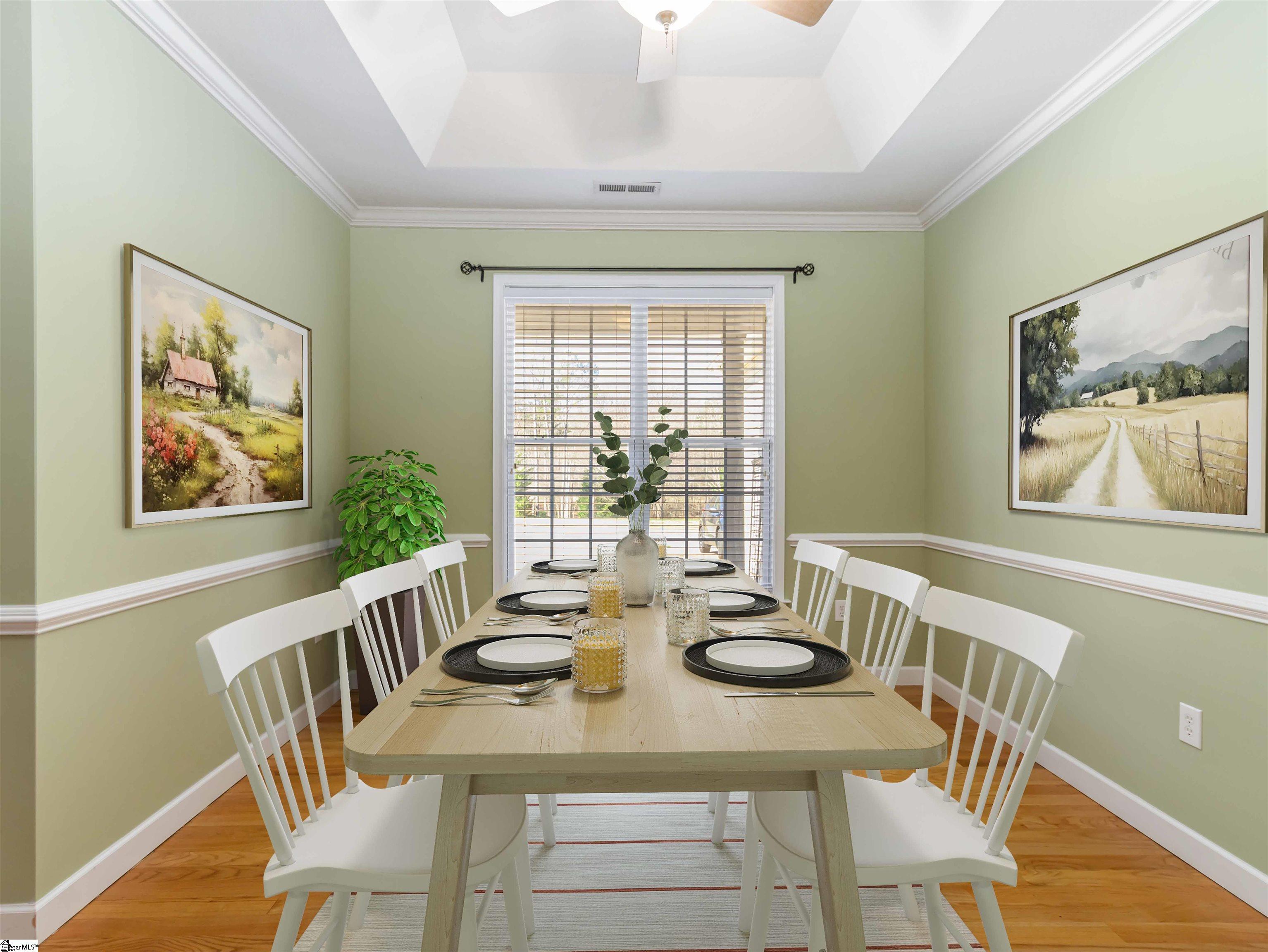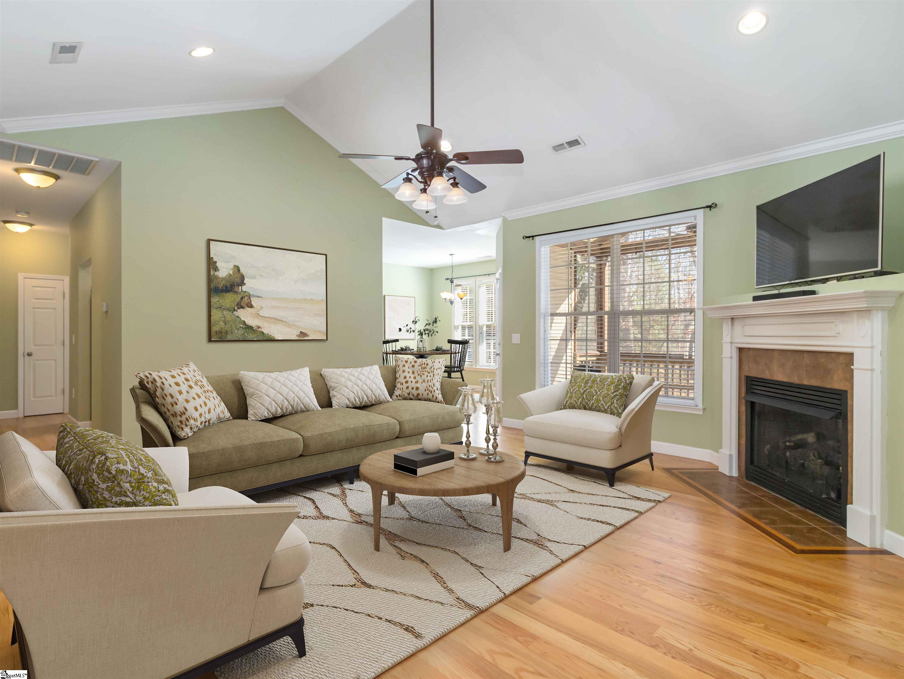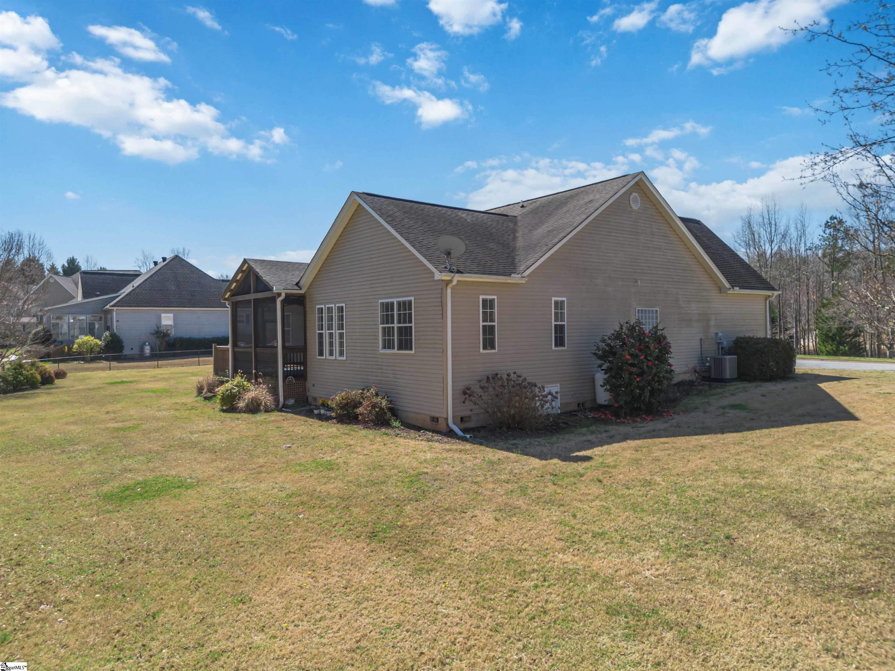 Welcome to 10 Chasie Lane in Greer, SC, a well-maintained 3-bedroom, 2-bath home situated on a spacious half-acre lot in one of Greer’s most desirable neighborhoods. Built in 2007, this 1. 5-story home features beautiful wood flooring, heavy crown molding, tray and vaulted ceilings, and a wide foyer that opens into a vaulted great room with a cozy corner fireplace. The kitchen offers generous counter space, ample cabinetry, a gas range, dual sink, and new refrigerator, and overlooks the bright breakfast area with views of the backyard. The primary suite features a new floor, tray ceiling, and a spacious bath with double sinks, garden tub, separate shower, and two closets. Two additional bedrooms share a hall bath, while the flex room over the garage provides space for an office, guest room, or recreation area. Enjoy relaxing on the screened porch overlooking the wooded backyard, where wildlife such as birds, deer, and turkeys are often seen. The flat lot and driveway add everyday convenience, and a utility building with electricity and ramp access offers great additional storage. The septic system was pumped in February 2026 for added peace of mind. Conveniently located just minutes from Greer, this home offers space, comfort, and privacy in a beautiful setting.