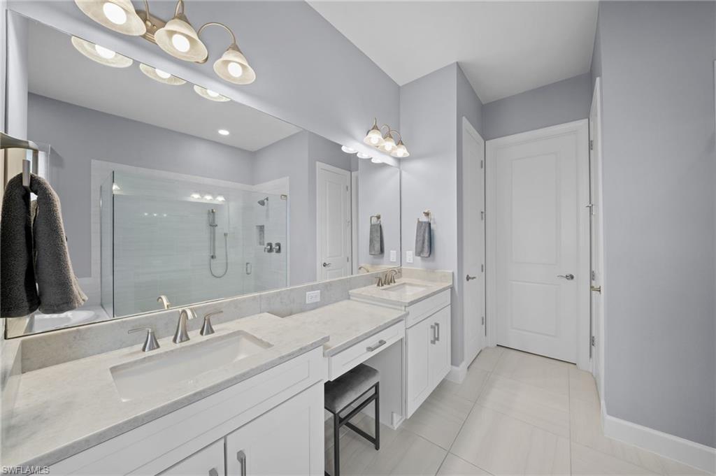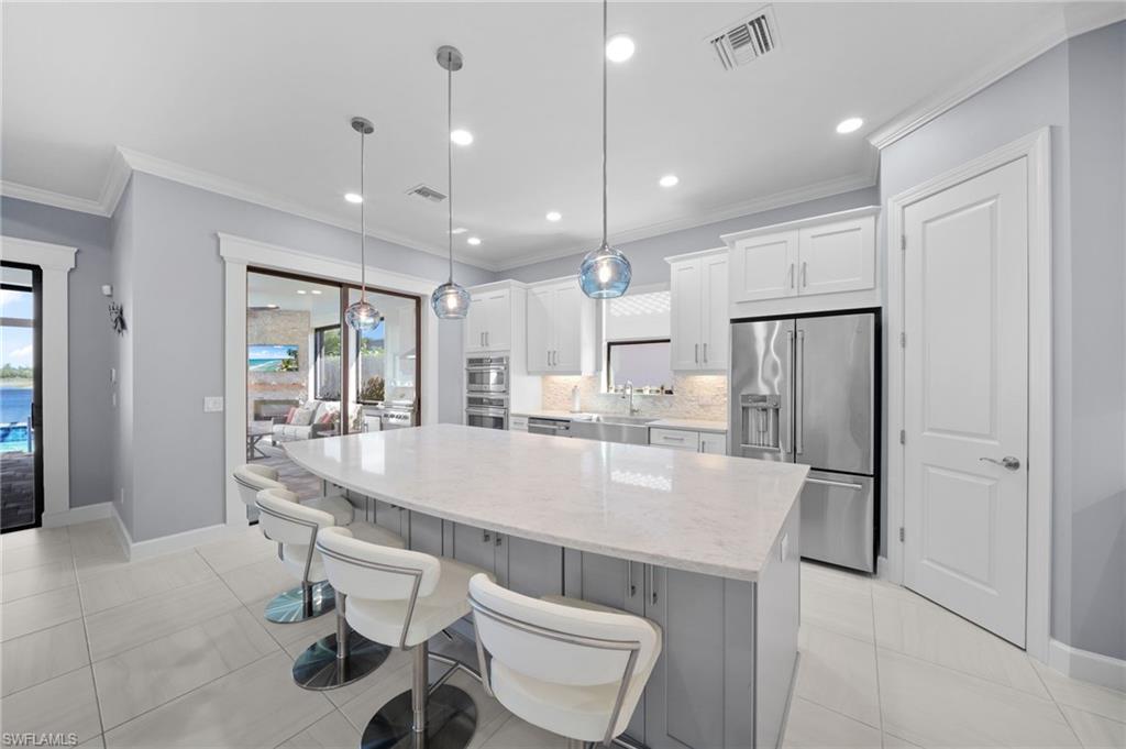 The impressive custom great room feature wall includes custom cabinets, oversized porcelain slab accent detail, custom mirrors, and LED accent lighting. The dry bar includes a wine cooler and bottle/glass storage. Other fine appointments include: expanded primary bedroom & front guest bedroom bay windows; luxurious baths with walk in showers with frames shower enclosures; finished epoxy garage floor; crown molding & custom millwork details; spacious Laundry Room with cabinetry; freshly painted interior and exterior; tankless GAS hot water heater; 8' doors/10' ceilings; and more! Esplanade Golf & Country Club of North Naples offers a true “Lifestyle Community” with world-class amenities, including a resort pool with cabanas and the popular “Bahama Bar, ” tennis, pickleball, bocce, a 14-mile network of bike/walking trails, and an 18-hole private golf course. The impressive 15, 000 Sq Ft clubhouse features a restaurant, bar, wine-tasting room, wine lockers, and a Starbucks-style café. Best of all, the property’s landscaping, irrigation, golf membership, and all community amenities are covered under a quarterly fee of just $3, 743—no additional fees or memberships required! Don't miss your opportunity to own this exceptional home in one of Naples’ most sought-after communities. Schedule your tour of this stunning home and Esplanade Golf & Country Club today! COMING SOON TO ESPLANADE (2026): Fully renovated and expanded poolside Bahama Bar; expanded outdoor bar at the Barrel House; expanded golf practice range; and an AIR CONDITIONED INDOOR PICKLEBALL COMPLEX with four indoor courts.
