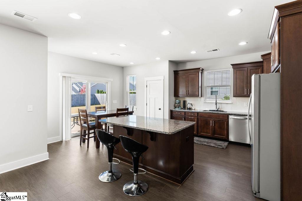 Centrally located between Greenville, Spartanburg, Downtown Greer, and Five Forks, this move-in ready 4 bedroom, 2. 5 bathroom home sits on a large corner lot with great curb appeal. A welcoming covered front porch and a 2-car garage set the tone, while a 10' x 12' covered back porch extends your living outdoors—perfect for morning coffee or evening cookouts. Inside, the open-concept kitchen features abundant cabinet storage, a large granite island with power, and seamless flow into the living room—an ideal layout for everyday living, family gatherings, and entertaining. Thoughtful storage closets throughout the home help keep everything organized. Upstairs, the spacious primary suite includes a walk-in closet and a private bath with double vanities and a glass-enclosed shower. Three additional, well-sized bedrooms share a full bath with a tub/shower combo and a roomy vanity—great for guests, kids, or a home office flex. Out back, enjoy a fenced-feel setting potential (corner siting) and plenty of lawn space for play, pets, or gardening. Neighborhood amenities include a community pool, adding resort-style convenience just steps from home. If you’re searching for a corner-lot home with an open kitchen, granite island, covered porches, generous bedrooms, and a prime Upstate location near shopping, dining, and commuter routes—this one checks all the boxes.