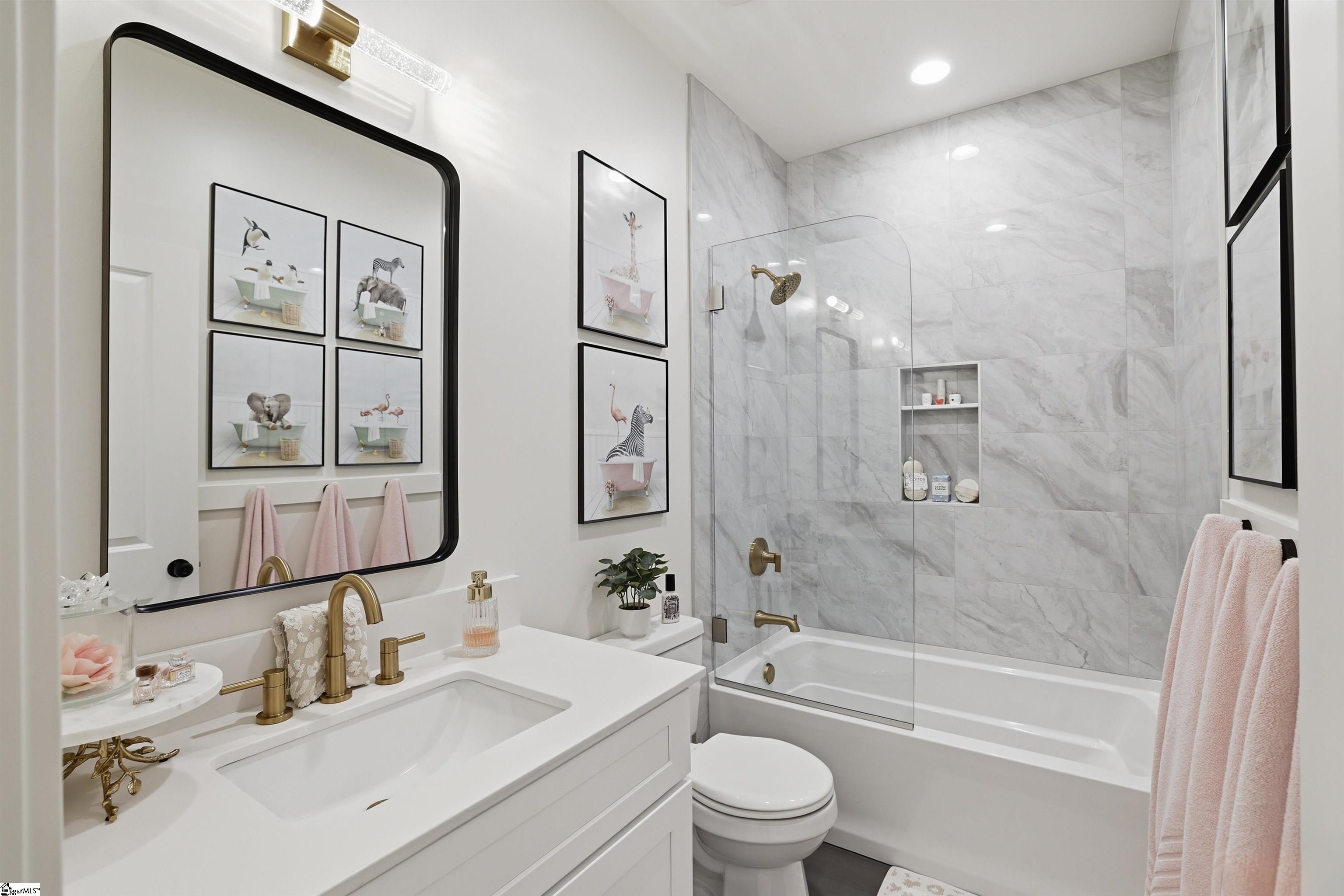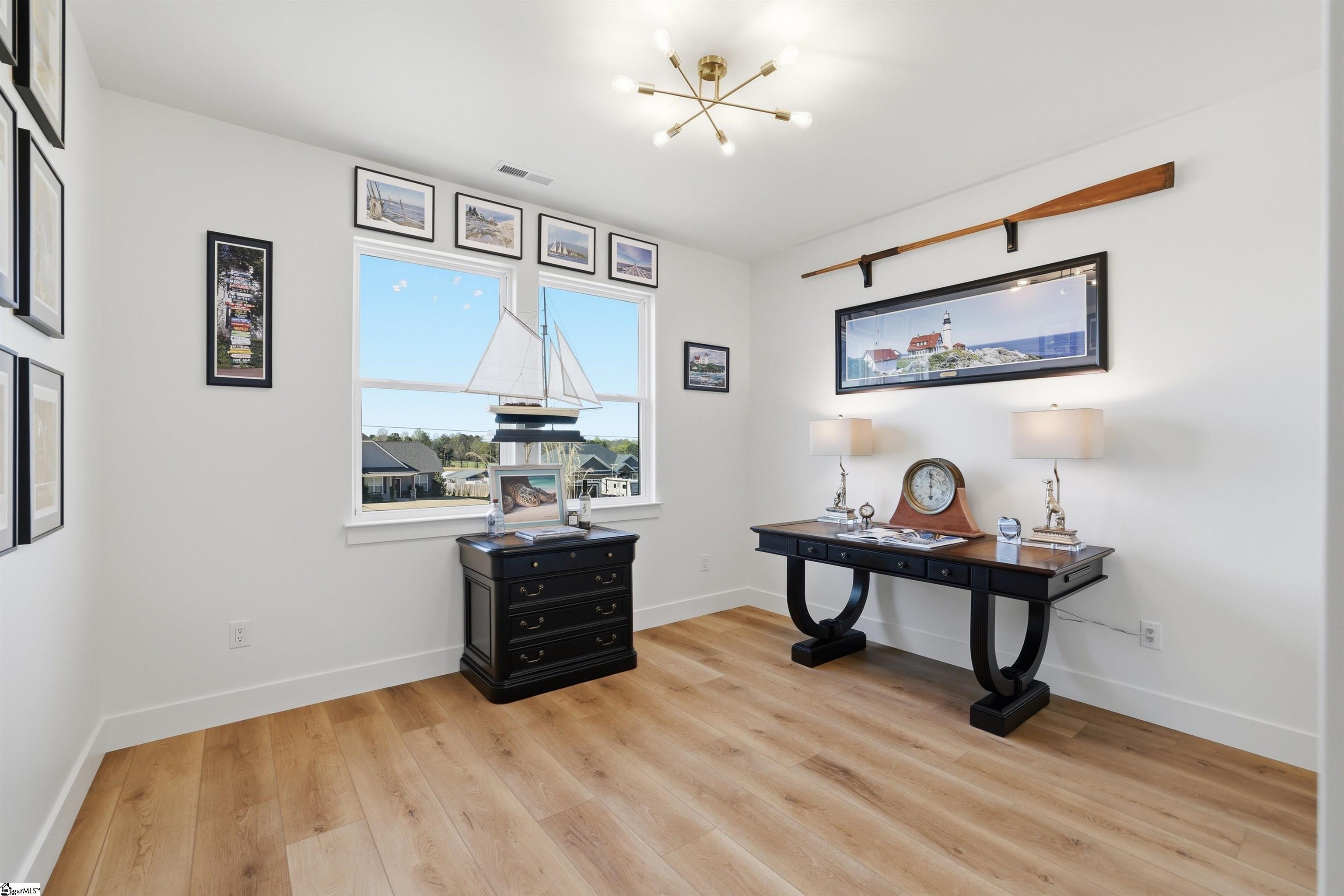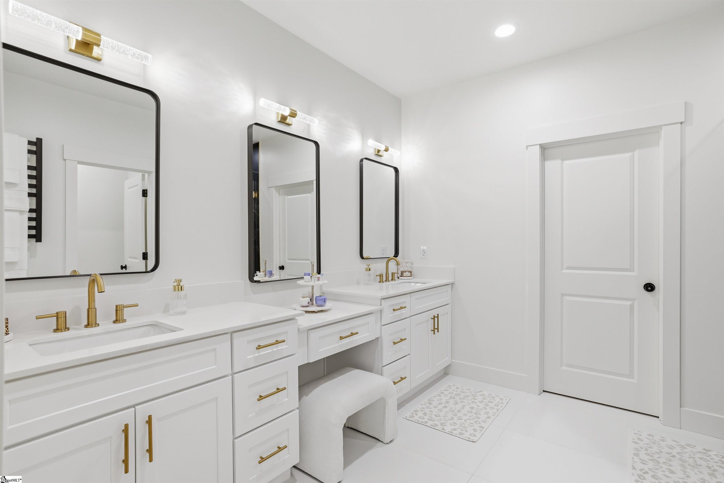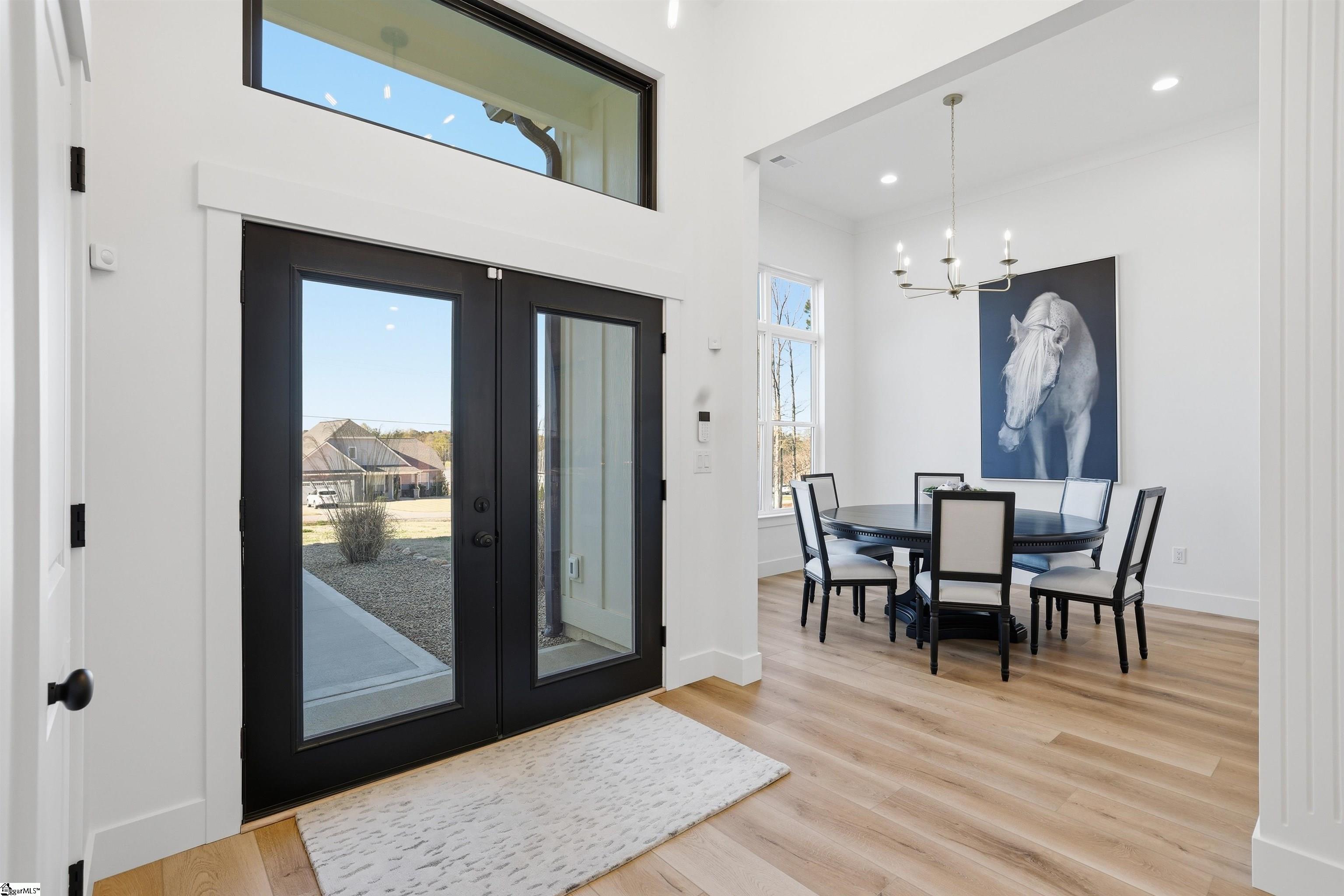 Like-new architectural contemporary residence completed November 2024 and enhanced with curated post-construction upgrades, 4 bedrooms, 2 baths, 2192 square feet on 0. 57 acres. The open-concept main level features cathedral ceilings rising approximately 15'6" in the living and kitchen areas and a dramatic floor-to-ceiling architectural fireplace serving as the visual centerpiece of the living room. The gourmet kitchen includes a quartz waterfall-edge island designed for entertaining that seats 4, tall architecturally scaled cabinetry, luminous contemporary backsplash, professional slide-in range, refined LG double-oven configuration, and high-end KitchenAid dishwasher with stainless-steel interior and advanced drying technology. Kohler Burnished Moderna Gold fixtures complete the refined aesthetic. The primary suite includes a sitting area and spa-inspired bath with black marble-style tile, white veining, and burnished gold Schluter trim. The guest bath features serene porcelain tile extending from tub to ceiling with silver Schluter trim and a modern glass splash panel above the tub. Two spacious main-level bedrooms accommodate king-size beds. A nearly 400 sq ft flex suite above the garage offers versatility as a bedroom, media room, or additional living space with independent mini-split climate control. Additional highlights include epoxy-finished oversized garage, transferable lifetime termite bond, covered rear porch, private driveway turnaround, security system, and smart thermostat.