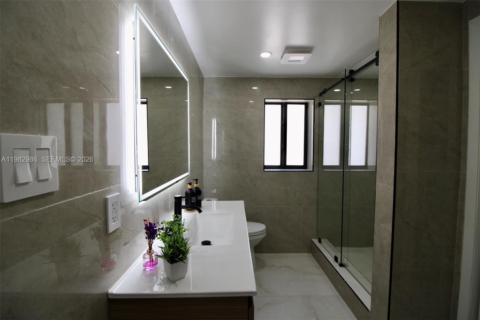 Features include impact windows, NEW ROOF, NEW CENTRAL A/C, and a modern kitchen with stainless steel appliances. The primary bedroom includes its own private bathroom, offering privacy and convenience, along with well-sized additional bedrooms.