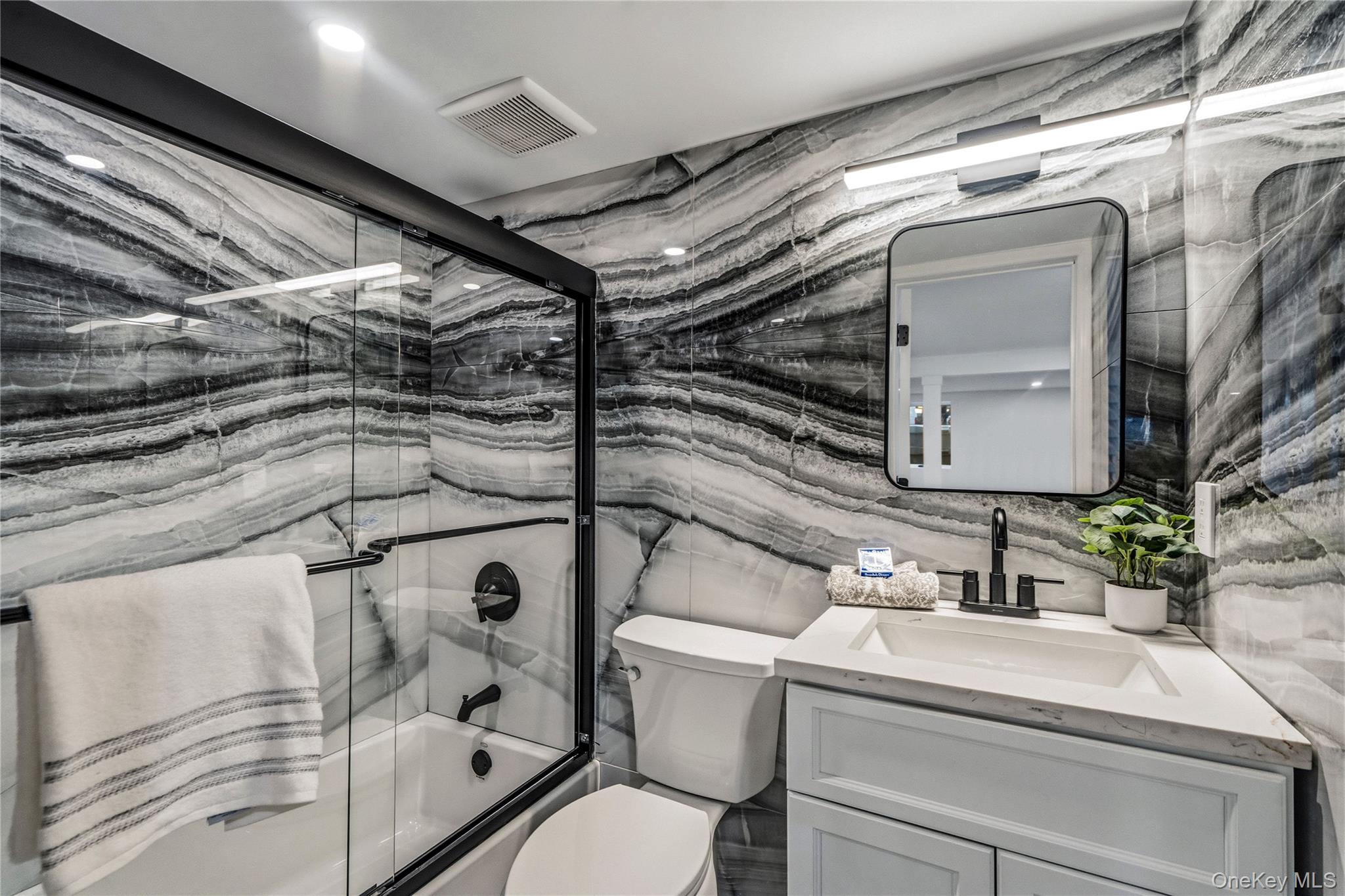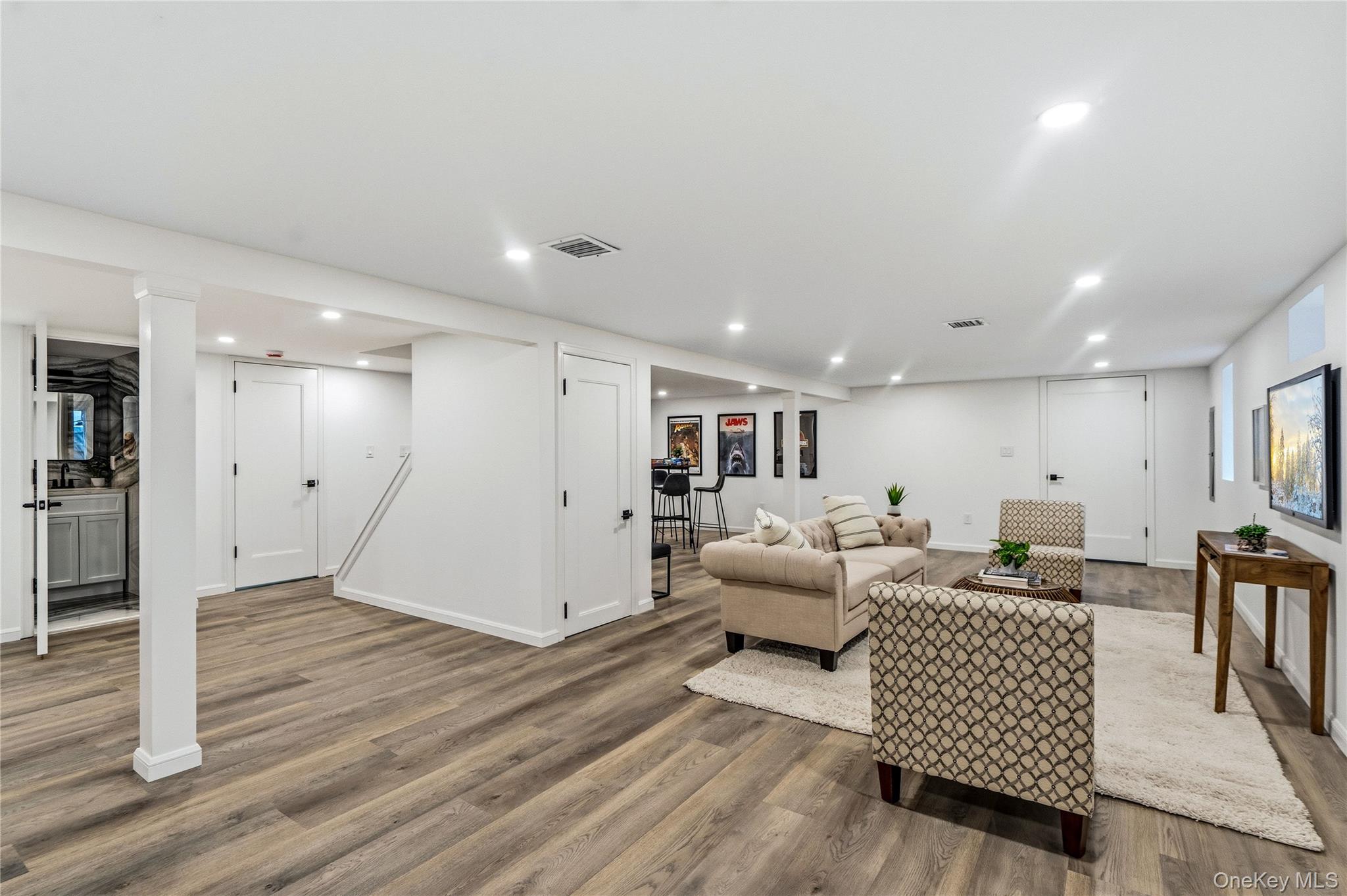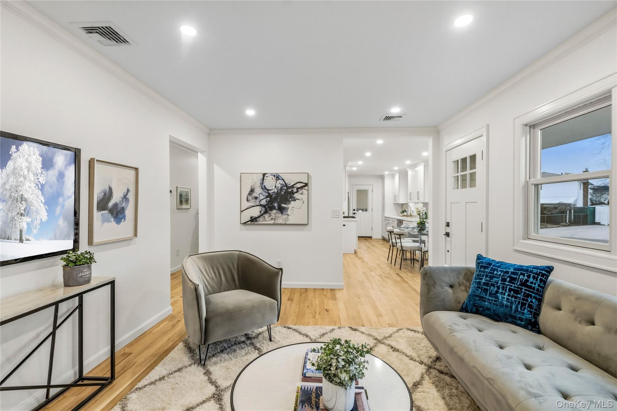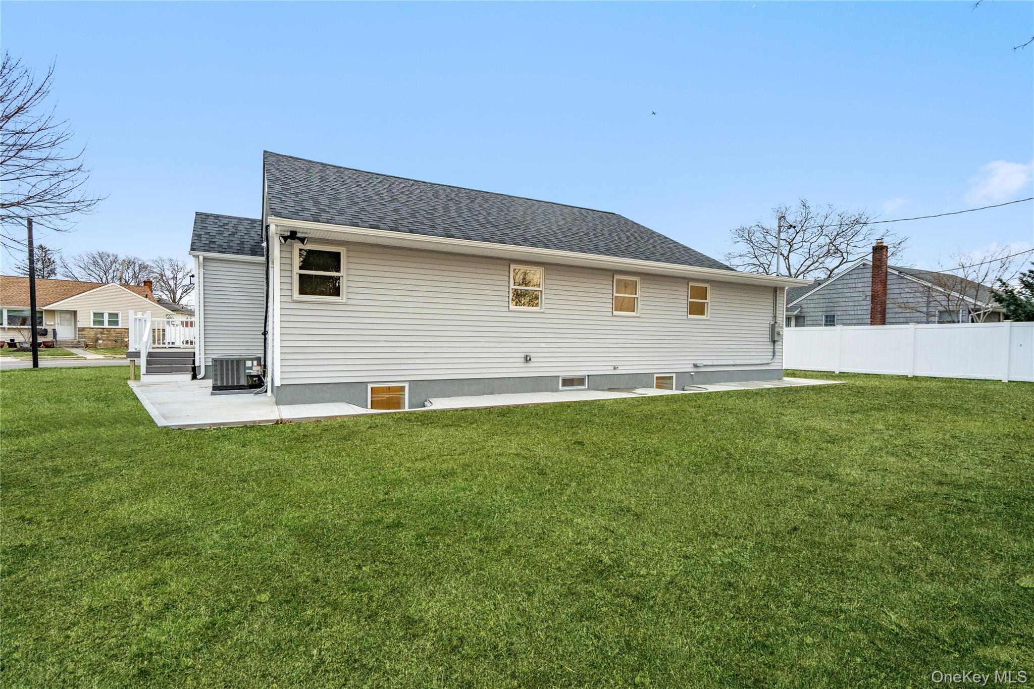 COMPLETELY renovated and redesigned BOTH INSIDE AND OUT. This ranch in Massapequa features 3 bedrooms, 2 full bath, 1 car garage and a fully finished basement. The main level is equipped with a brand new kitchen with updated appliances, coffee bar area, and outside access for easy indoor-outdoor living. 3 bedrooms, 1 full bath, and family room. The full finished basement has outside entrance and new bathroom offering flexible bonus space. Fully fenced property with one-car garage. Extensive updates include new studs, siding, insulation, roof, windows, kitchen, baths, and exterior improvements. Move-in ready with modern finishes throughout. Plainedge School District