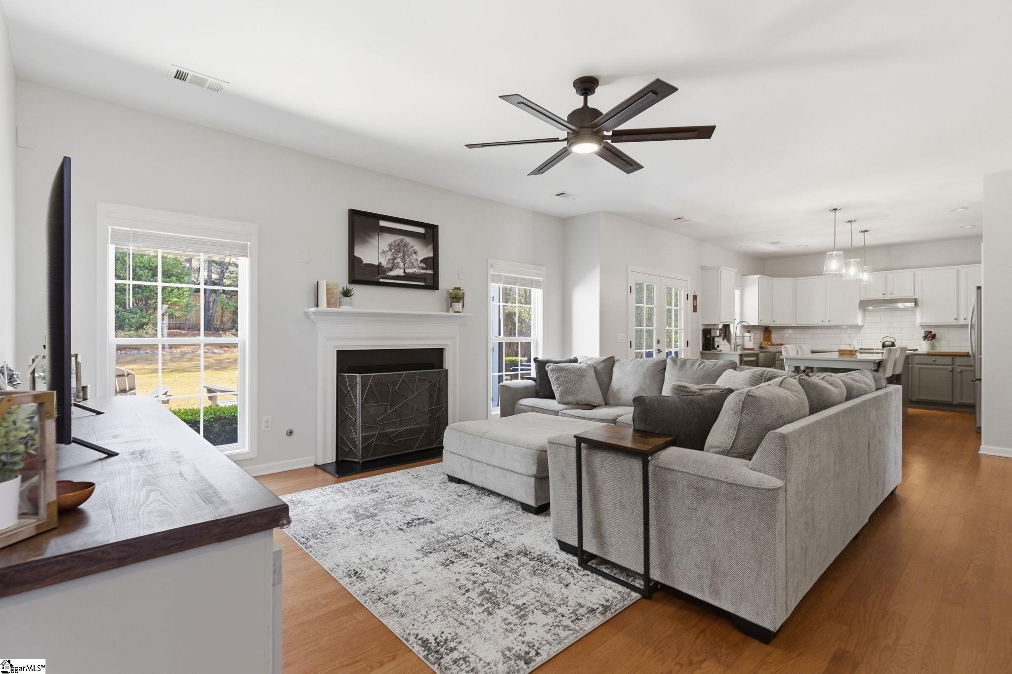 Welcome home to your beautiful backyard oasis in highly sought after Eastside neighborhood. Minutes from I-85, Pelham Rd, Hwy 14, Downtown Greer and Downtown Greenville. This peaceful no through traffic community is surrounded by established neighborhoods such as Thornblade and Sugar Creek. Enjoy the mature landscape, join the adjacent Sugar Creek pool and take advantage of multiple shopping centers right around the corner. Zoned for highly ranked, award-winning schools Buena Vista Elementary, Northwood Middle and Riverside High make this an ideal location. Step into the beautifully maintained, 4-bedroom, 2. 5 bath, two story home. You are welcomed by a two-story entry way foyer with abundant natural light, formal dining room and office space. Walk into the heart of the home, an open living and kitchen area featuring amazing indoor and outdoor entertainment set up. The spacious living area, pre-wired for surround sound, is the perfect place to enjoy time with family and friends, around a gas-starter, wood-burning fireplace. The thoughtfully designed bright kitchen boasts of a gas range stove, quartz countertops, and extra-large seated island. Directly off the kitchen is garage access and a Pella French door leading to your own private oasis. The backyard offers year-round enjoyment with lavish landscaping, 21x17 outdoor patio and the star of the home 17x20 screened in porch. Upstairs, the master bedroom is a private sanctuary with vaulted ceilings, sitting space and ensuite bath with separate vanities, a garden tub, and shower. There are three ample-sized bedrooms, one full bathroom and a large laundry room located conveniently on the second floor. This home has been wired with generator transfer switch and B-hyve smart irrigation system. Take advantage of this amazing home and schedule your showing today.