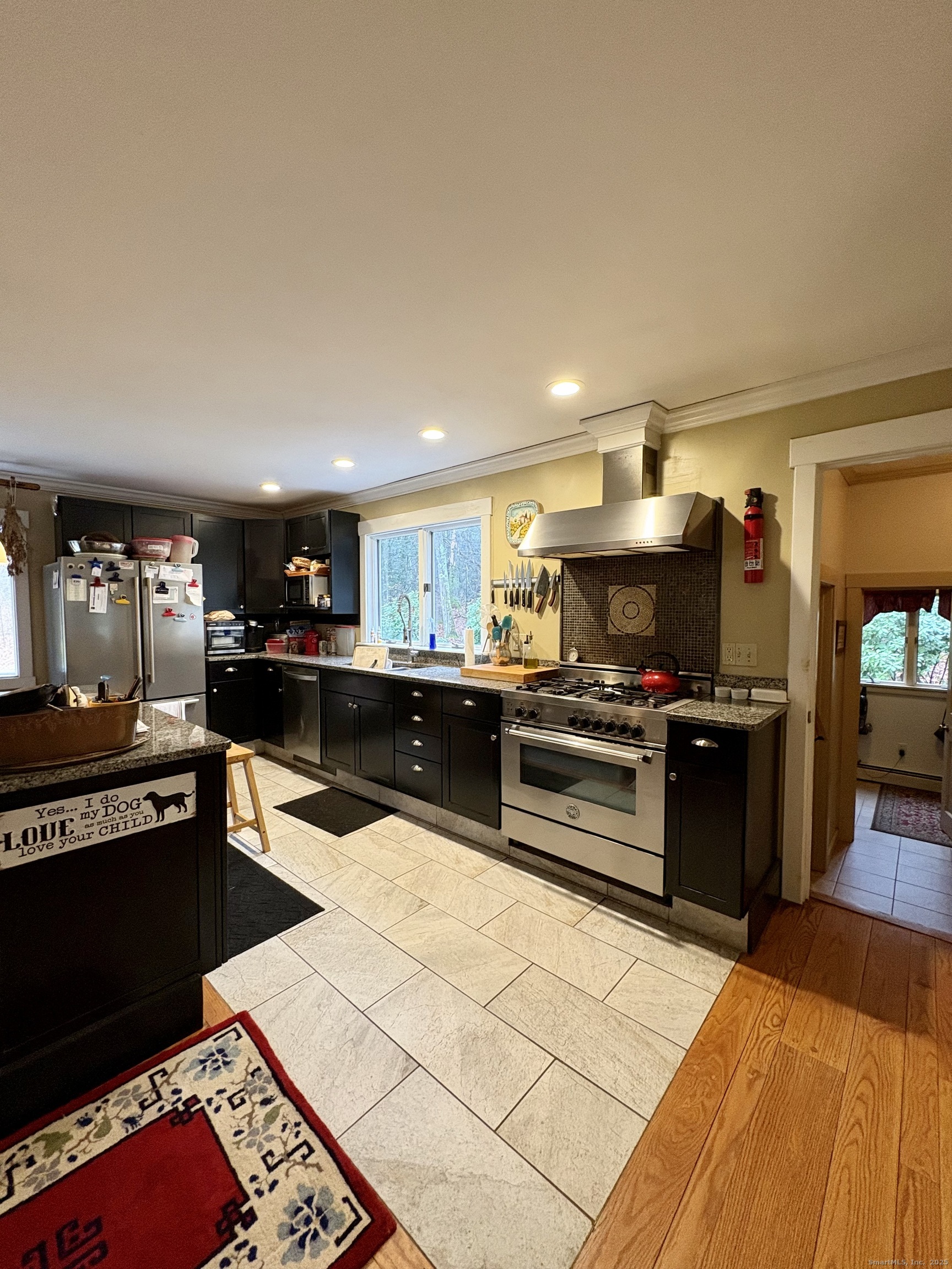 Discover the perfect blend of New England charm and modern comfort in this impeccably maintained 3-bedroom, 2. 5-bath Cape Cod, privately set on 2. 01 serene acres. Nestled in the heart of Hartland's "Silent Zone, " this home offers a tranquil retreat just minutes from the world-class fishing of the Farmington River and the hiking trails of People's State Forest. The main level features an inviting open-concept flow highlighted by gleaming hardwood floors and abundant natural light. The spacious kitchen is a chef's delight, anchored by a large granite island and high-end cabinetry, transitioning seamlessly into the dining and living areas. Choose your ambiance with two distinct heating features: a cozy woodstove for efficient winter warmth and a classic stone fireplace for elegant evenings. Upstairs, the expansive primary suite serves as a true sanctuary, complete with a generous walk-in closet and private ensuite bath. Two additional well-appointed bedrooms offer versatility for families or a home office. Modern comforts include ductless split systems for cooling, a main-level laundry room, and a full basement providing extensive storage or workshop potential. The exterior is designed for outdoor living, featuring a sprawling back deck overlooking a level, wooded backyard and a classic front porch perfect for morning coffee. Situated in the top-rated Northwestern Regional High School district, this property offers the ultimate country lifestyle with modern convenience.