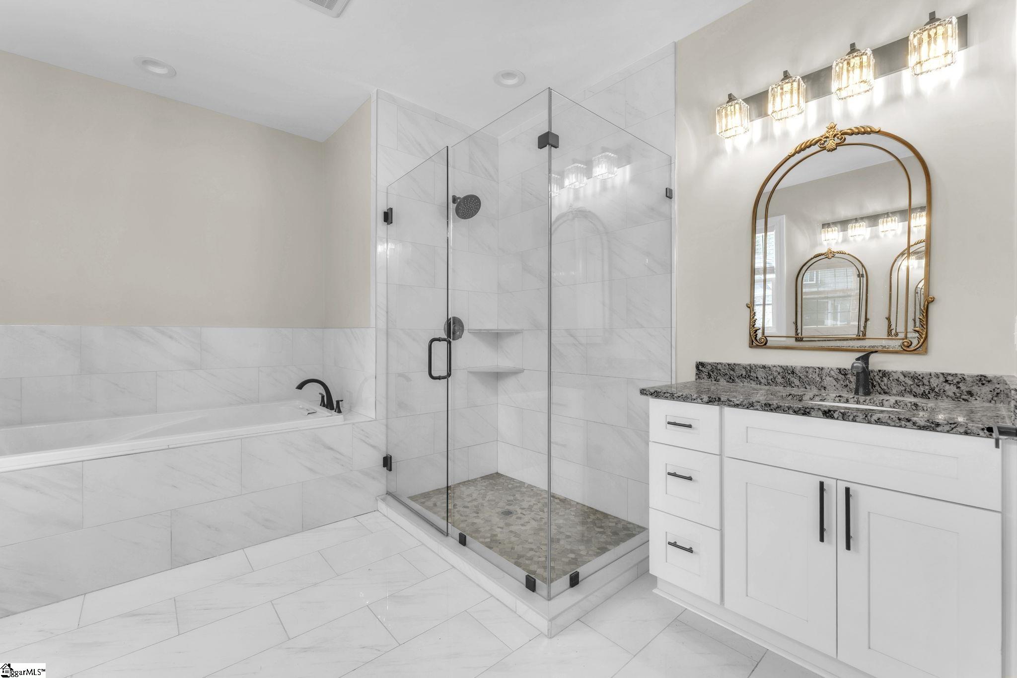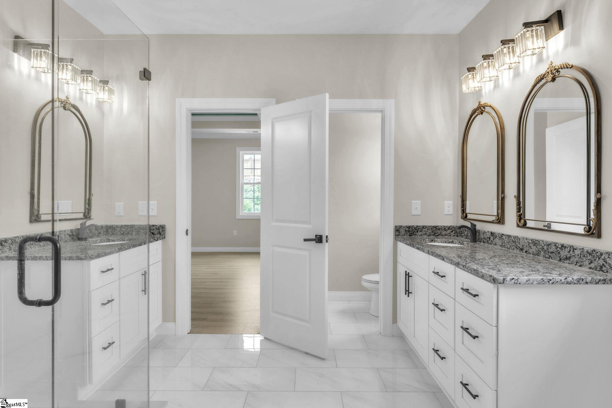 Experience refined living in this stunning custom-built 2022 residence located in the prestigious Brookstone Meadows community. Thoughtfully designed with both elegance and functionality in mind, this home offers a sophisticated lifestyle in one of Anderson’s most sought-after neighborhoods. Step inside through the large foyer into the living room that is filled with natural light and exudes modern luxury. The main living spaces are crafted for both upscale entertaining and everyday comfort, featuring high-end finishes and a natural flow that elevates the entire home. The gourmet kitchen is designed to impress with premium fixtures, stainless steel appliances, granite countertops, and ample storage space in the walk-in pantry. The kitchen can be entered through the attached two-car garage, equipped with a side entry keypad and recently updated with a pristine epoxy-coated flooring. The primary suite is a true private retreat, offering a spa-inspired en-suite bathroom and two separate walk-in closets. An additional master bedroom is located on the first floor as well as another bedroom, a full bathroom, an office/flex space, two dining areas, and the laundry room. Upstairs is an entire bonus suite that could be considered another master bedroom, featuring a loft space with a hallway that leads to a full bathroom, walk-in closet, and the massive walk-in attic. This extra space offers endless possibilities! Step outside to a covered back porch and a meticulously landscaped backyard, perfect for quiet evenings or outdoor entertaining. As part of the Brookstone Meadows subdivision, residents enjoy a beautiful community as well as access to the community clubhouse, swimming pool, tennis courts, basketball courts, walking trails, a driving range, and one of the most up-and-coming golf courses of the upstate. Golf membership is optional and not part of the HOA fee. This one is a must-see and it is move-in ready!. Schedule your showing today! Disclaimer: Some photos in this listing have been virtually staged.