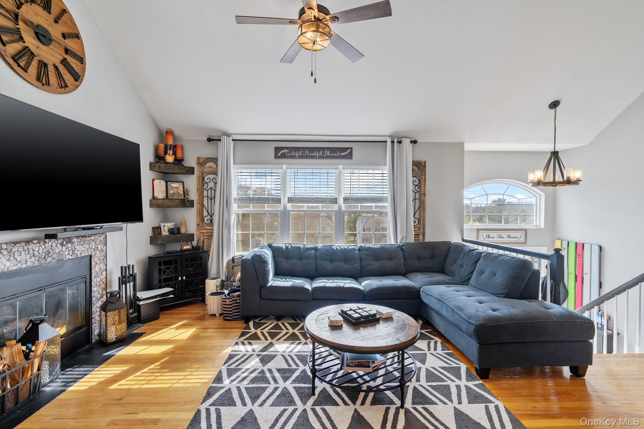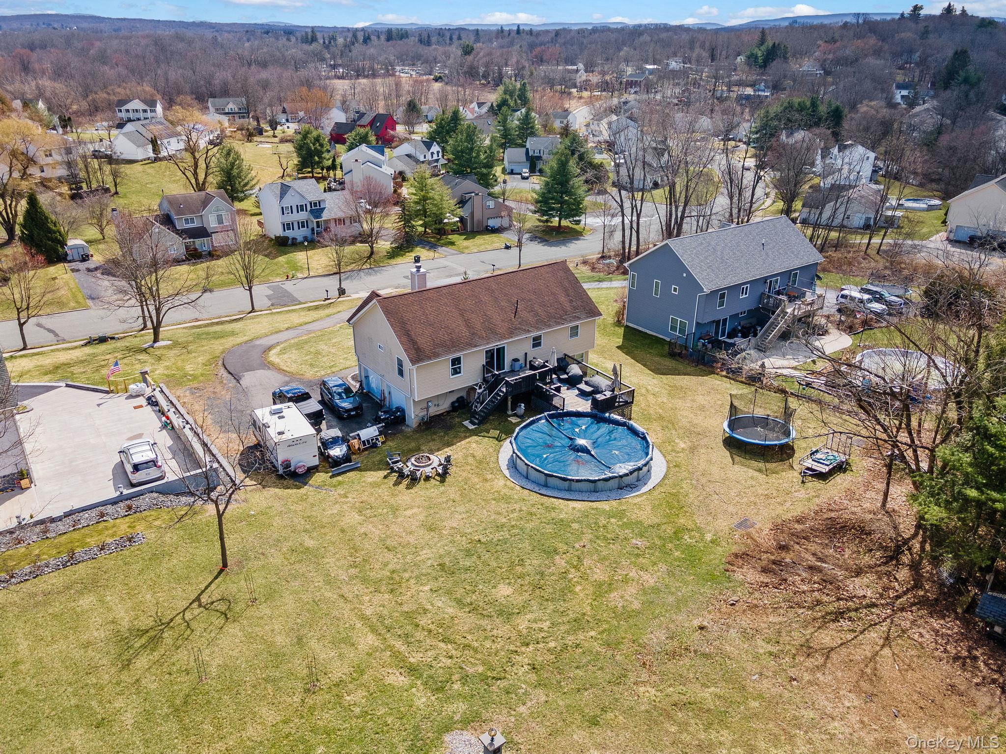 VILLAGE LIVING!! VALLEY CENTRAL SCHOOL DISTRICT!! Nestled in the Village of Walden within the Valley Central School District, this stunning 3-bedroom, 3-full-bathroom home offers the ultimate blend of suburban tranquility and unmatched convenience. Located just moments from local eateries/restaurants, a variety of local shopping, the Walden/Wallkill Rail Trail, five village parks, area schools, and major commuter routes, including Interstate 84, the home welcomes you with a bright, open-concept main level featuring gleaming hardwood floors. The spacious living area, complete with a cozy fireplace, flows seamlessly into the dining space and a gorgeous updated kitchen equipped with a plethora of cabinetry, granite countertops, a classic subway-style tile backsplash, stainless steel appliances, and a striking custom blue center island with a butcher-block top. Down the hall, the generously sized primary suite serves as a relaxing retreat, boasting a rustic wood-paneled accent wall, a tray ceiling, and a private double-vanity en-suite. Two additional well-appointed bedrooms and two more full bathrooms ensure plenty of space and comfort for everyone. Lower level features a family room with wall to wall carpeting, sliding glass doors allowing for extra natural lighting, separate laundry area and an office space/storage room. Entertaining effortlessly extends outdoors through the dining room's sliding glass doors onto an expansive multi-level wood deck overlooking a true backyard oasis, complete with an above-ground pool and a cozy fire pit area. Completing this incredible property is a two car attached garage and abundant parking, including plenty of room for an RV, boat, or camper.