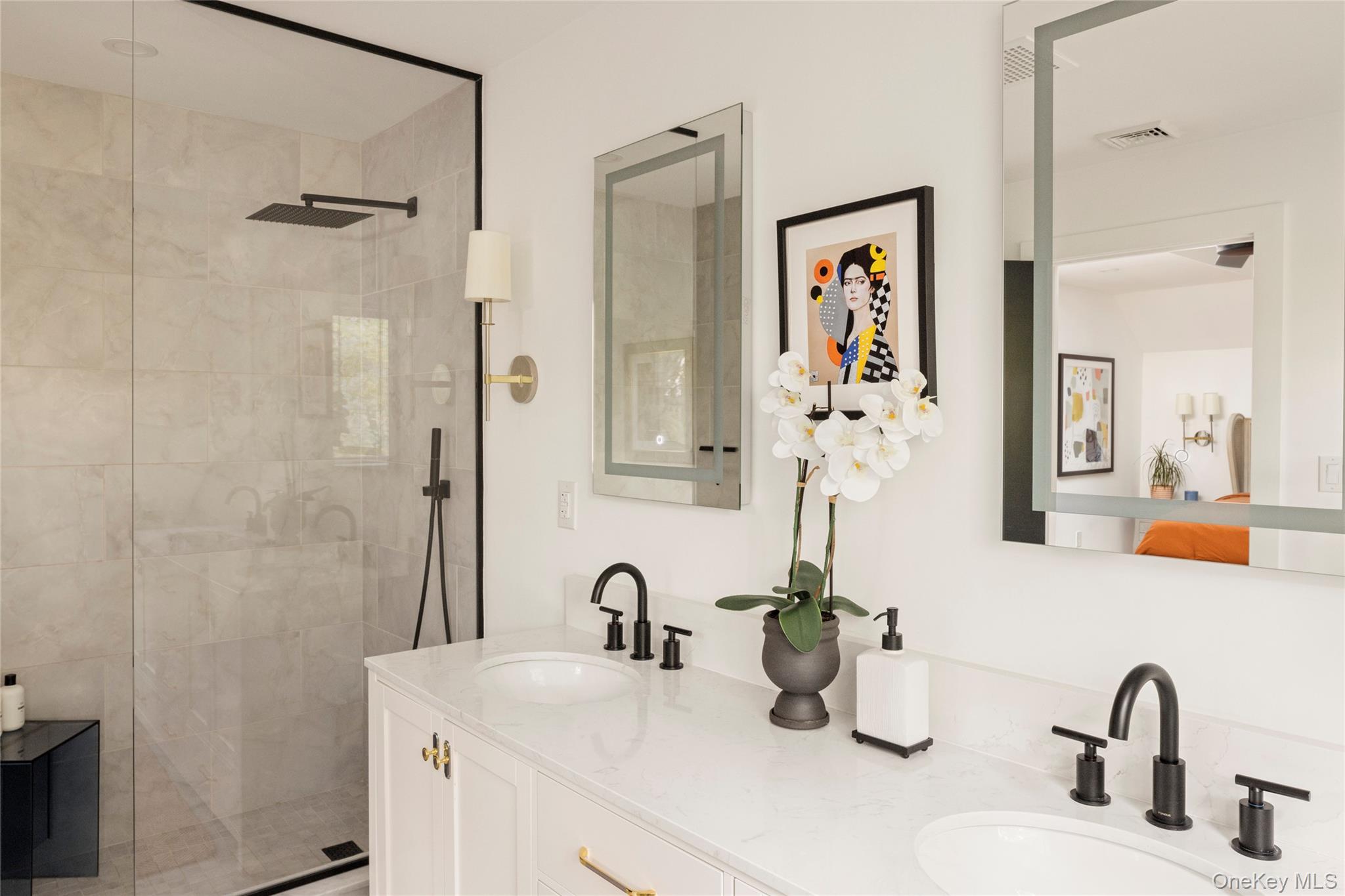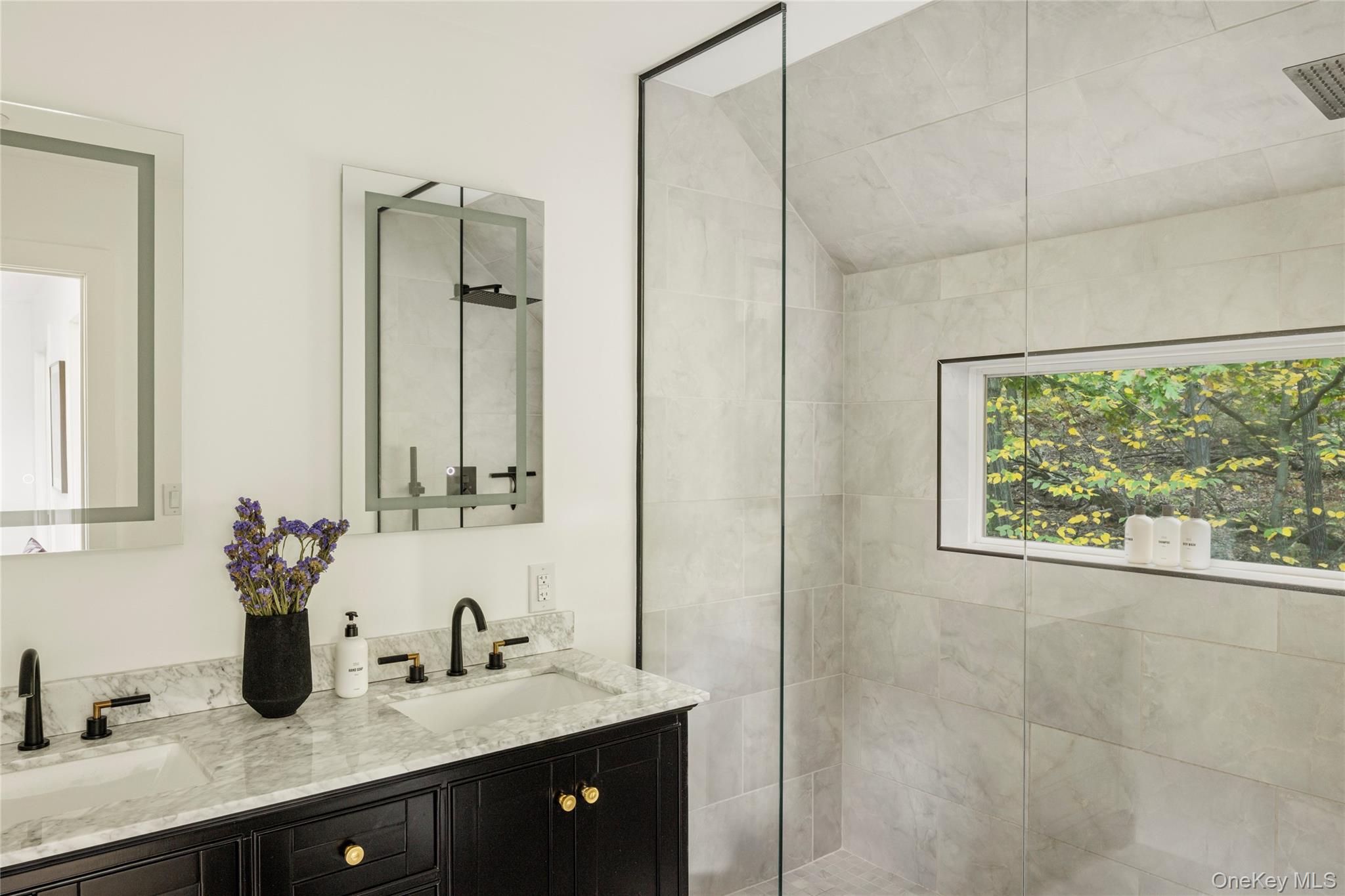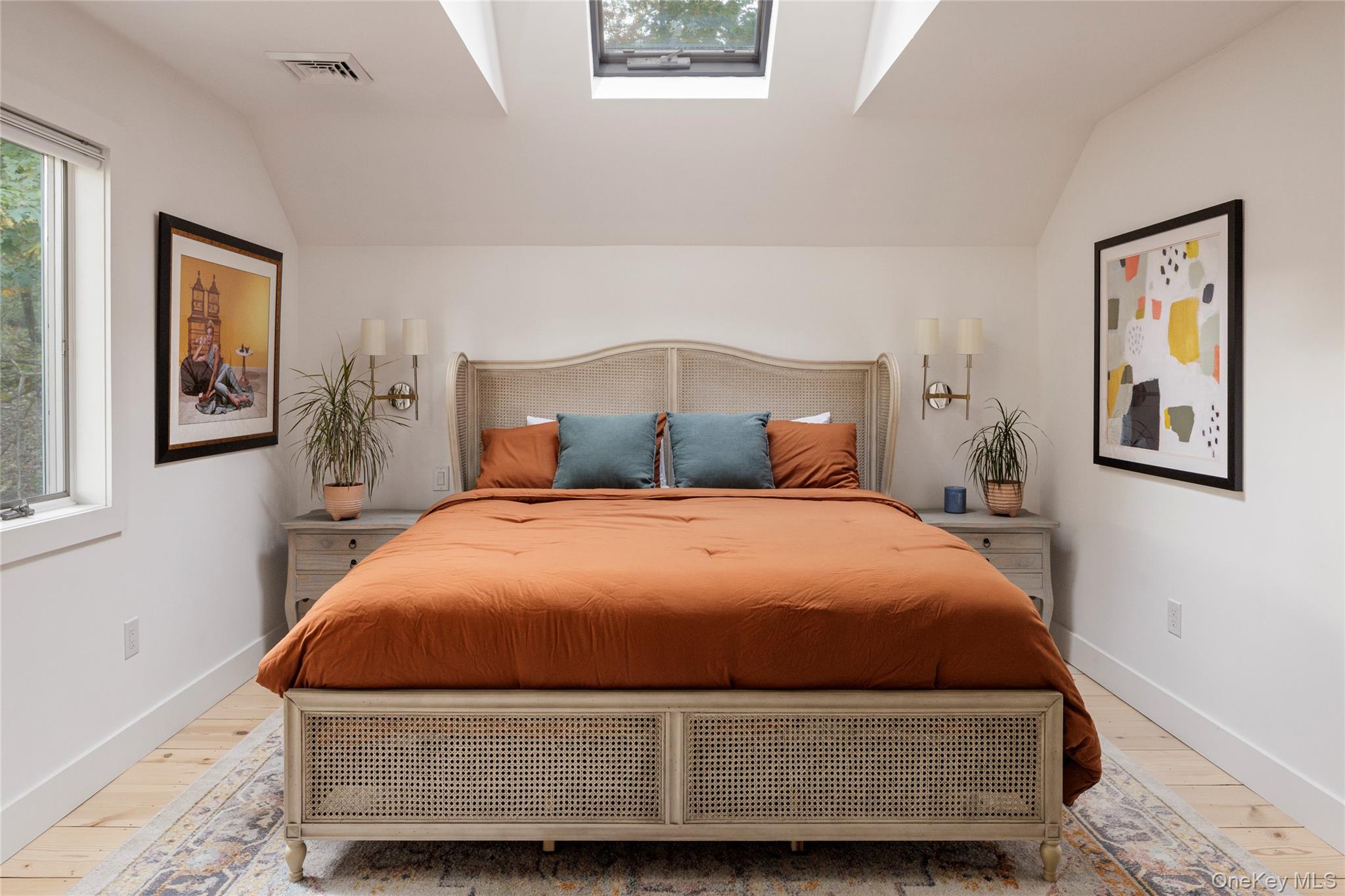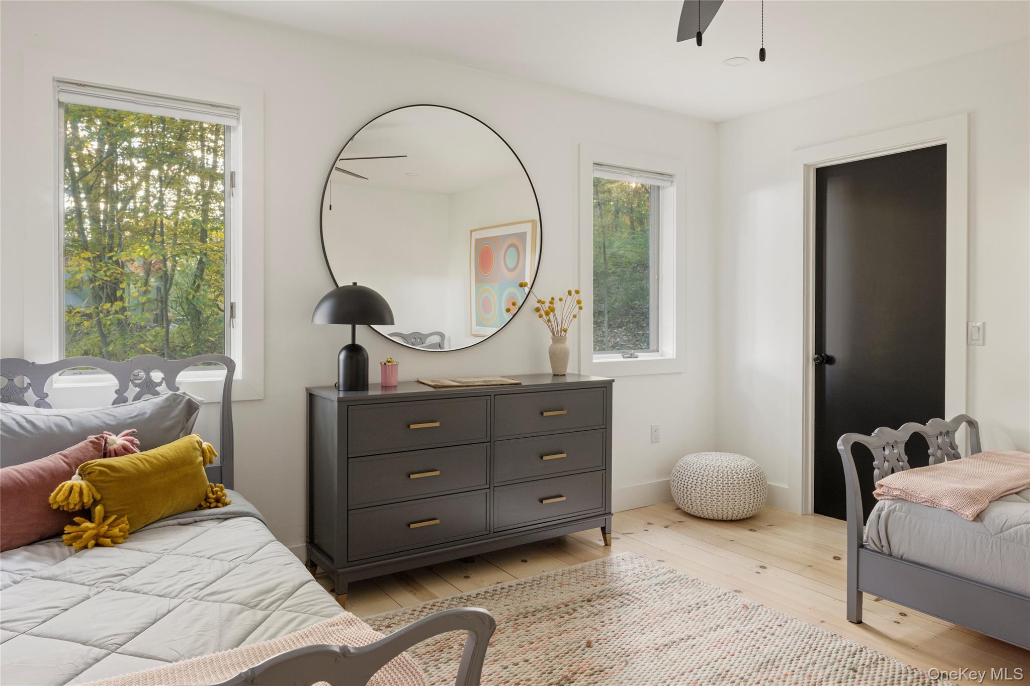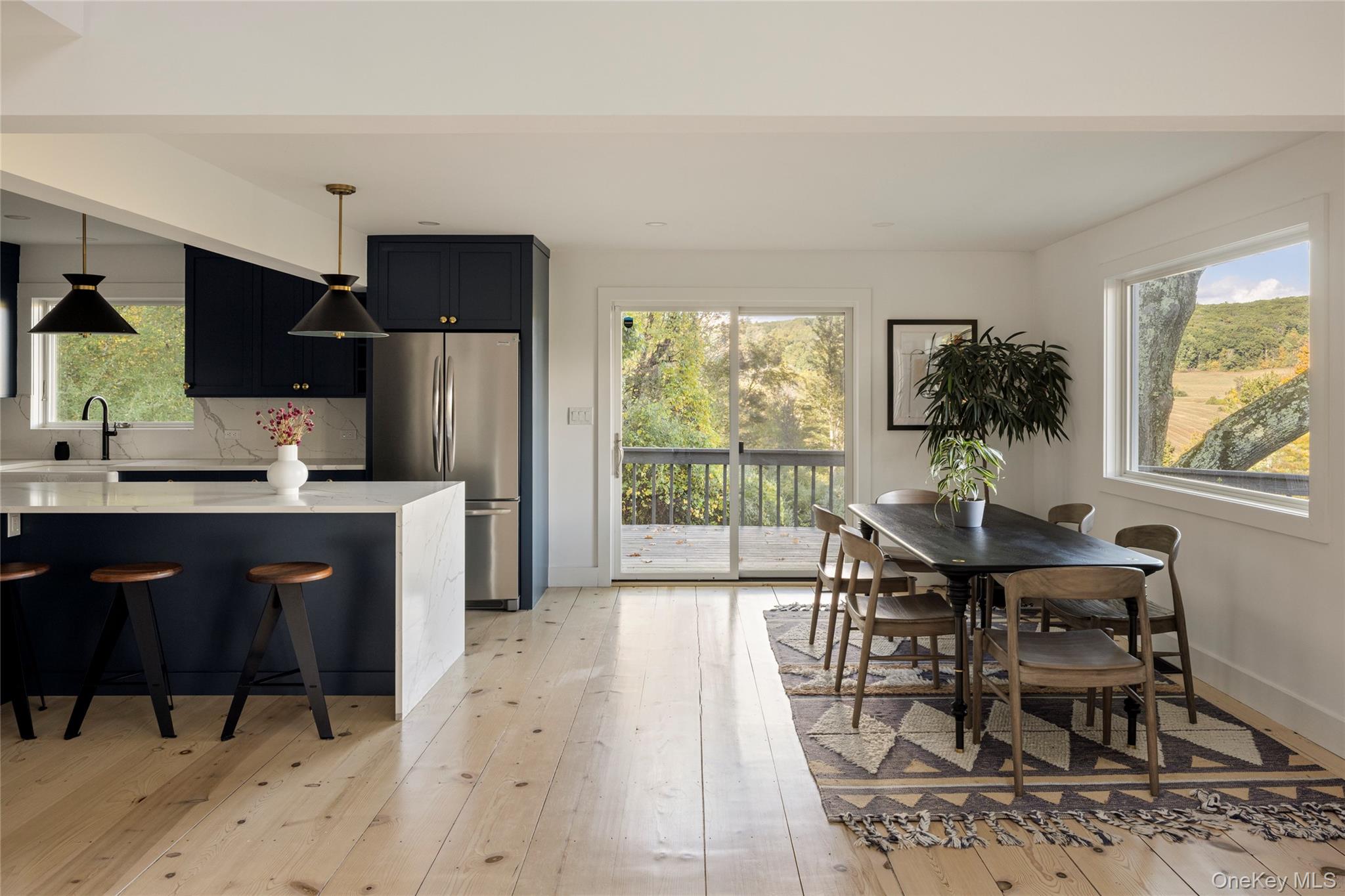 Set on a sprawling 6 acres, up a private driveway, off a quiet road, this sophisticated 2100 sq ft home ( 3 BR, 3. 5 baths) was recently renovated for a turn key experience. Open floor plan on the first floor with natural light streaming through oversized windows. Vaulted ceilings. Chef's kitchen with island, quartz countertops, custom cabinetry, farmhouse sink, Bertozzoni stove, Miele dishwasher. Kitchen opens to the dining area and living room with wood burning fireplace, all with spectacular views of the fields, rolling hills and valley below. Two sets of sliding doors lead to the wraparound deck overlooking the heated, Gunite pool. First floor bedroom with full bath, additional 1/2 bath and laundry complete the first floor. On the second floor, two spacious bedrooms with en suite bathrooms, and walk in closets. Oversized windows for long distance views. Escape to a private rural setting just minutes from Hudson and Hillsdale