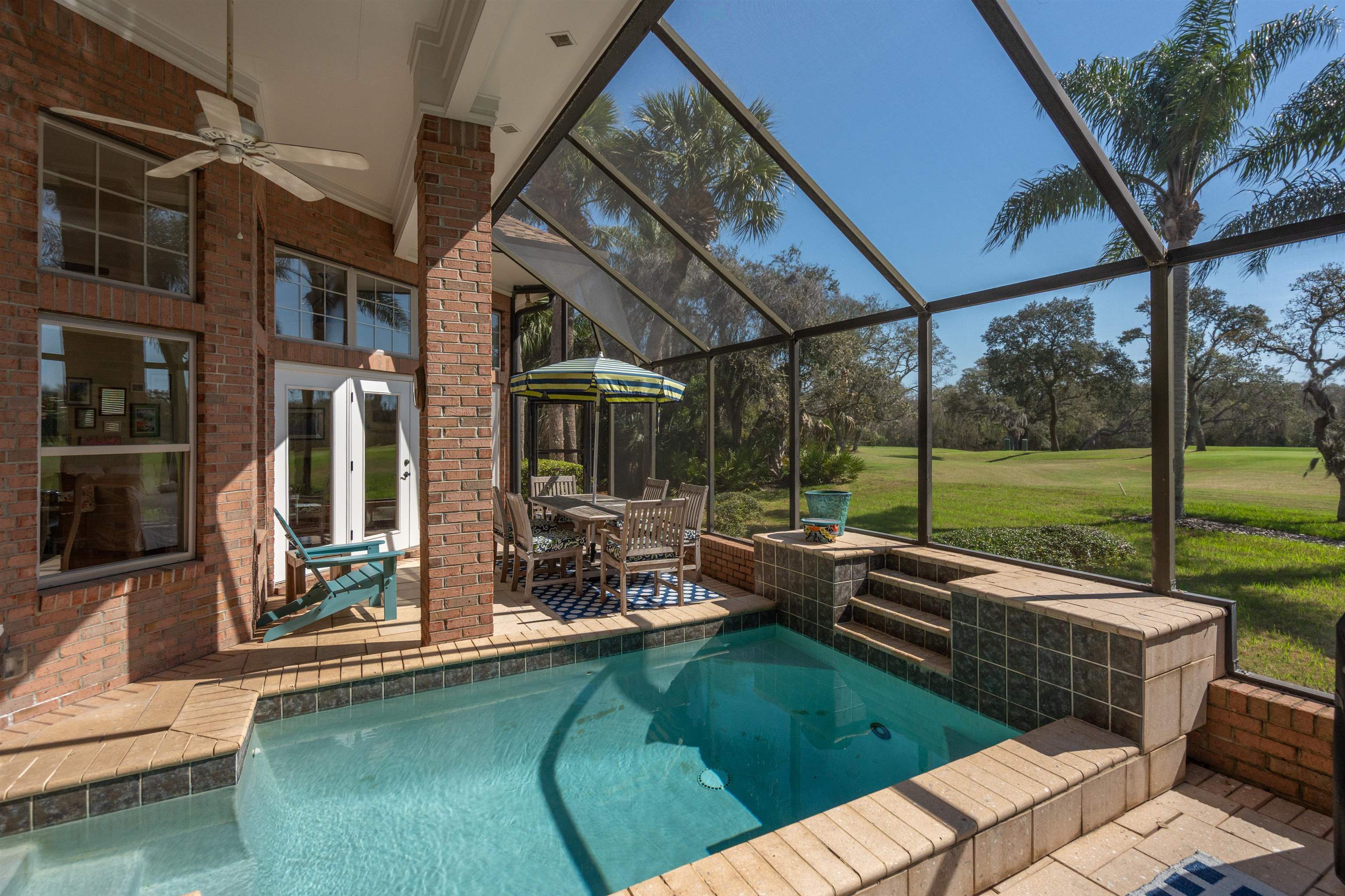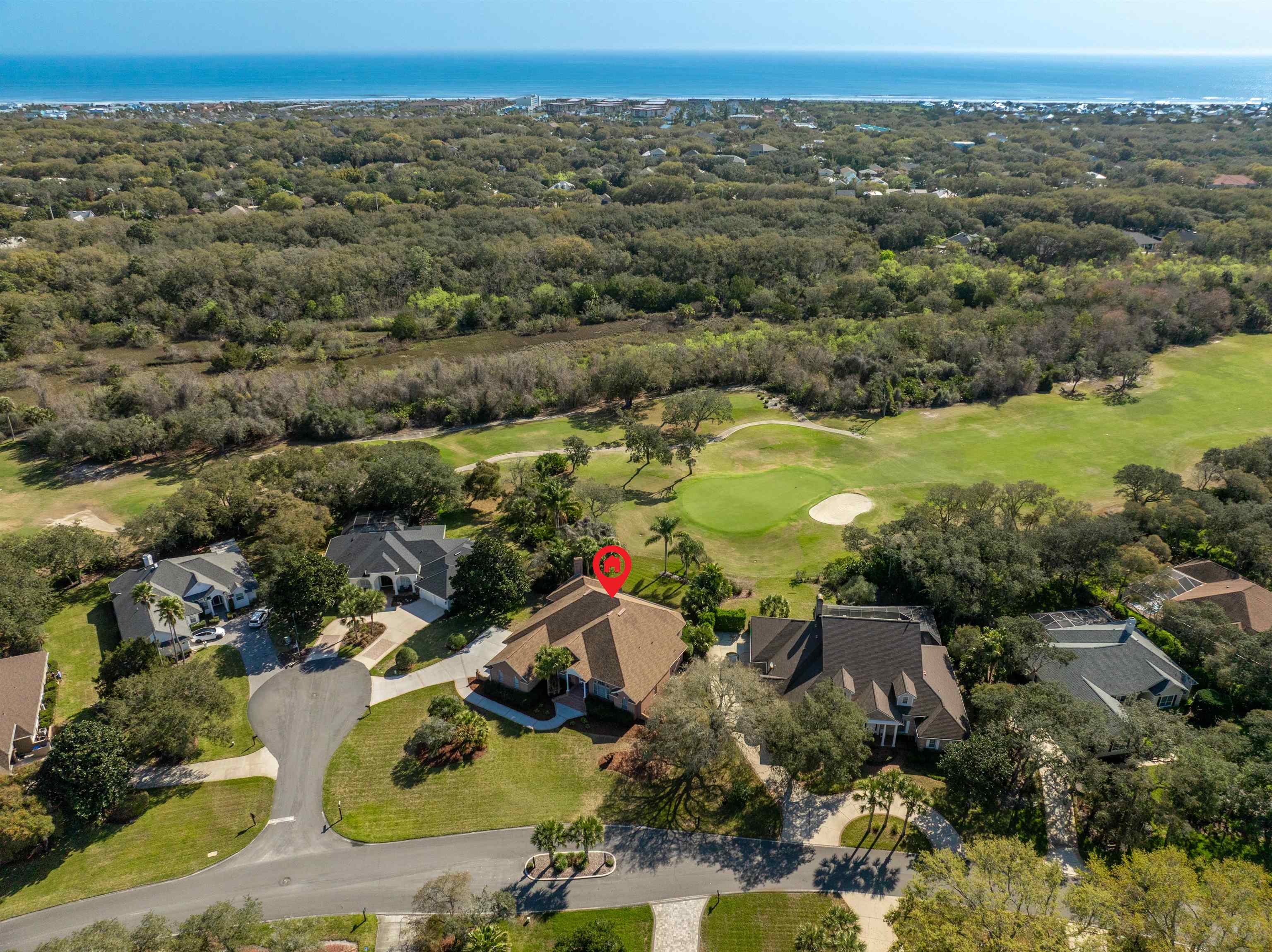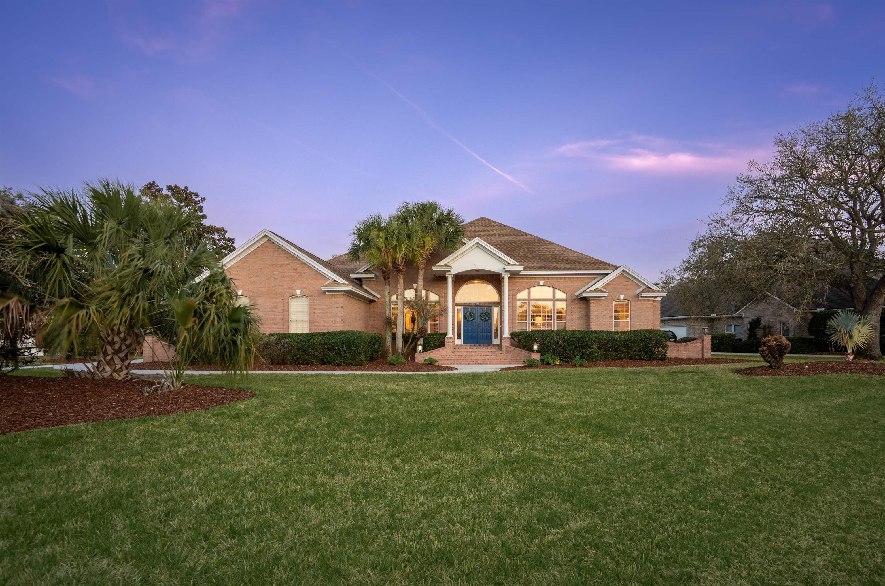 126 Marshside Dr Perfectly positioned overlooking the 8th green in the prestigious community of Marsh Creek Country Club on beautiful Anastasia Island, this exceptional residence offers elegant comfort and timeless appeal. The home features soaring 15-foot ceilings and a thoughtfully designed floor plan that includes a spacious primary suite, four additional bedrooms, and a flexible fifth bedroom that is ideally suited for use as a private office. This room includes a closet and direct access to a full bath, providing versatility for a variety of needs. Living spaces include a formal living room, formal dining room, and a welcoming family room centered around a cozy gas fireplace. The kitchen is well appointed and perfectly positioned for both everyday living and entertaining. Step outside to enjoy the private patio with a comfortable small pool, creating a peaceful setting to relax while taking in golf course views. Additional highlights include an easy-maintenance brick exterior, central vacuum system, whole-house audio, a wet bar for entertaining, and abundant closet and storage space throughout the home. Residents of Marsh Creek enjoy living in one of the area’s premier gated golf course communities, where club membership is optional and offered in a variety of levels to suit different lifestyles.