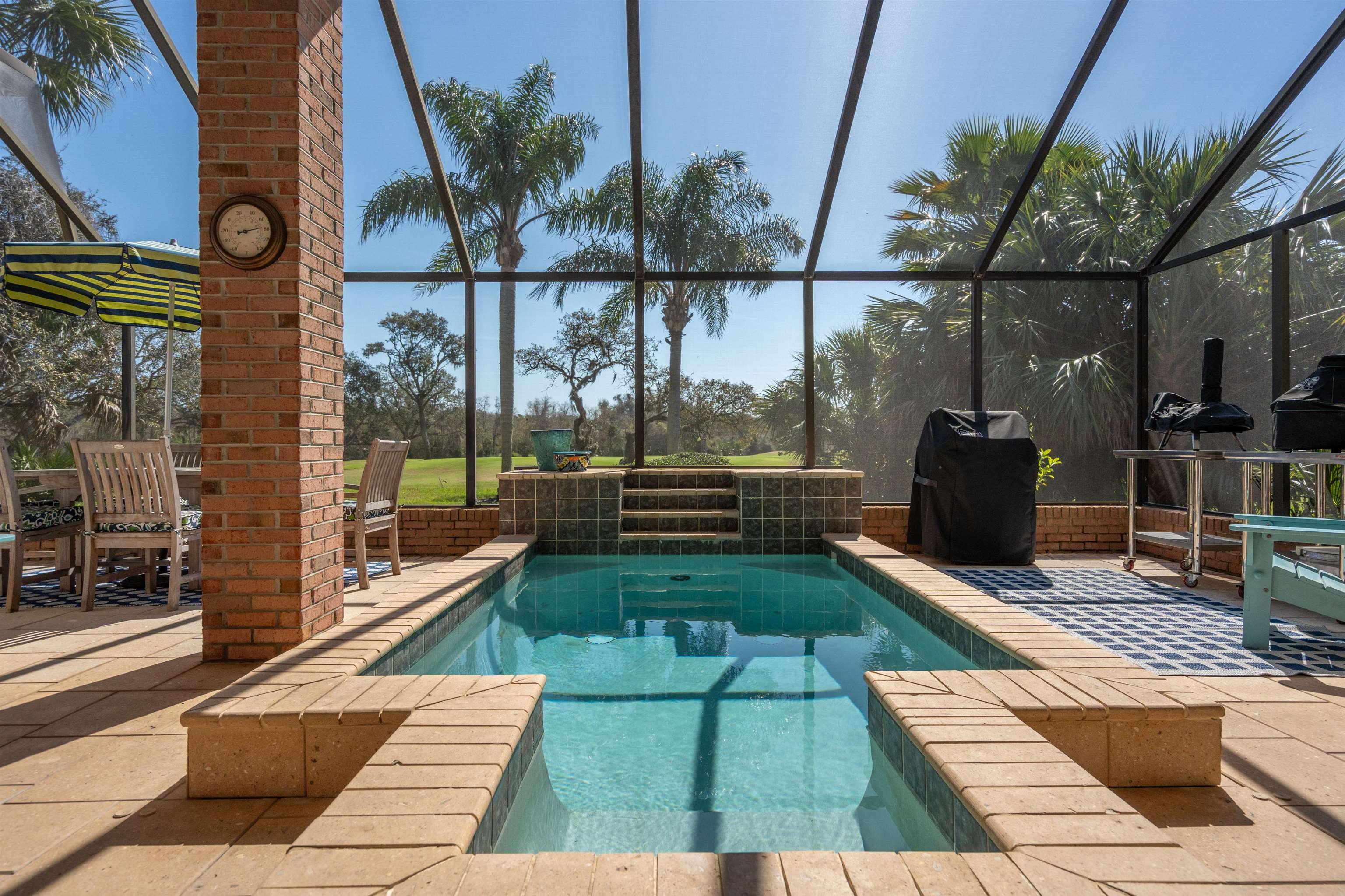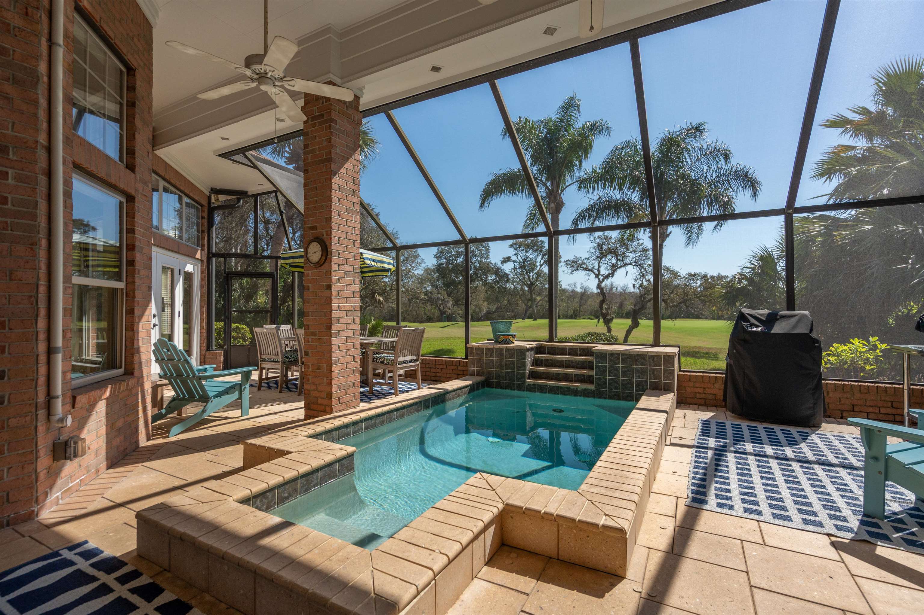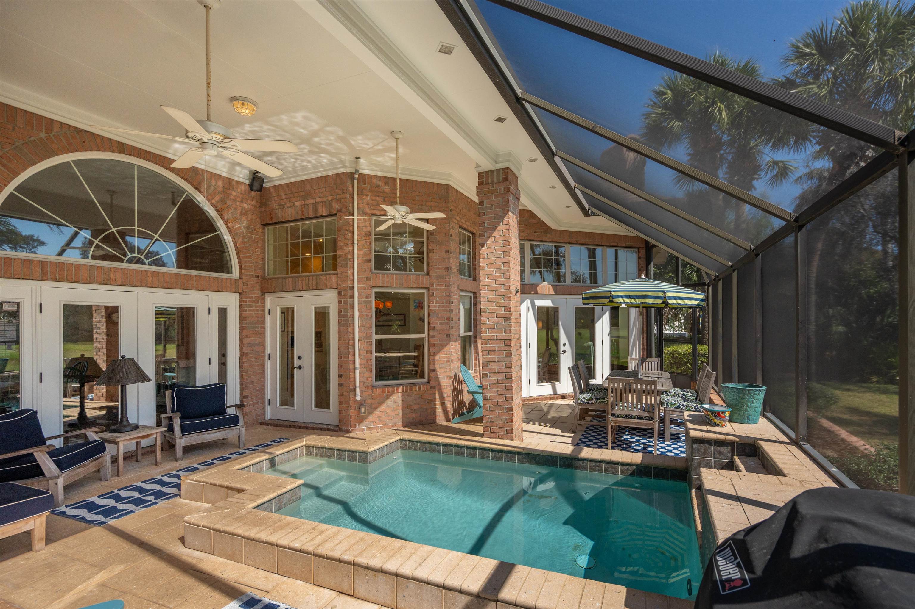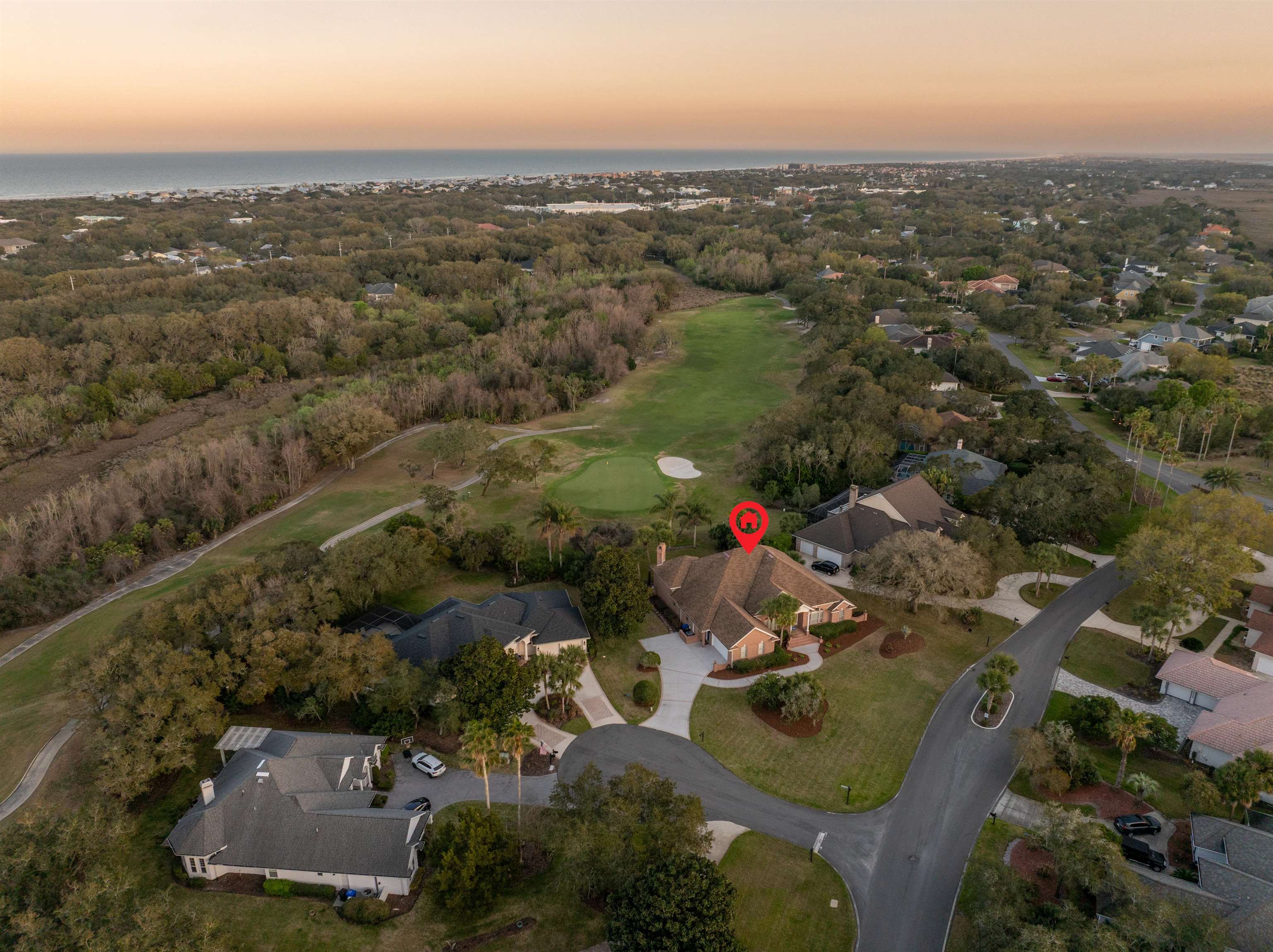 126 Marshside Dr Perfectly positioned overlooking the 8th green in the prestigious community of Marsh Creek Country Club on beautiful Anastasia Island, this exceptional residence offers elegant comfort and timeless appeal. The home features soaring 15-foot ceilings and a thoughtfully designed floor plan that includes a spacious primary suite, four additional bedrooms, and a flexible fifth bedroom that is ideally suited for use as a private office. This room includes a closet and direct access to a full bath, providing versatility for a variety of needs. Living spaces include a formal living room, formal dining room, and a welcoming family room centered around a cozy gas fireplace. The kitchen is well appointed and perfectly positioned for both everyday living and entertaining. Step outside to enjoy the private patio with a comfortable small pool, creating a peaceful setting to relax while taking in golf course views. Additional highlights include an easy-maintenance brick exterior, central vacuum system, whole-house audio, a wet bar for entertaining, and abundant closet and storage space throughout the home. Residents of Marsh Creek enjoy living in one of the area’s premier gated golf course communities, where club membership is optional and offered in a variety of levels to suit different lifestyles.
