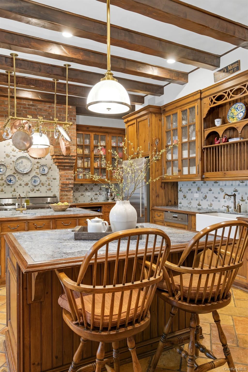 Set on nearly 10 private acres in the heart of Upper Brookville, Red Fox is a distinguished Gold Coast estate of exceptional character and scale. This 17-room French Tudor is marked by classic architectural details, including turrets, a slate roof, and striking 3-story bay windows that lend timeless elegance. Richly detailed interiors feature beautifully proportioned principal rooms, including a grand living room, banquet-sized dining room, inviting family room, and a serene primary suite with fireplace, sitting area, and generous mirrored closets. A spacious country eat-in kitchen and a lower entertainment level with bar and gym further enhance the home’s appeal. Outdoors, the estate opens to multi-tiered gardens, expansive terraces and patios, an in-ground pool, pool house with full kitchen, 2 full baths and guest quarters, tennis/sport court, golf hole with 3 tee boxes, apple orchard, trellis, and outdoor barbecuing area. A rare offering that captures the privacy, grace, and enduring appeal of the North Shore Gold Coast.