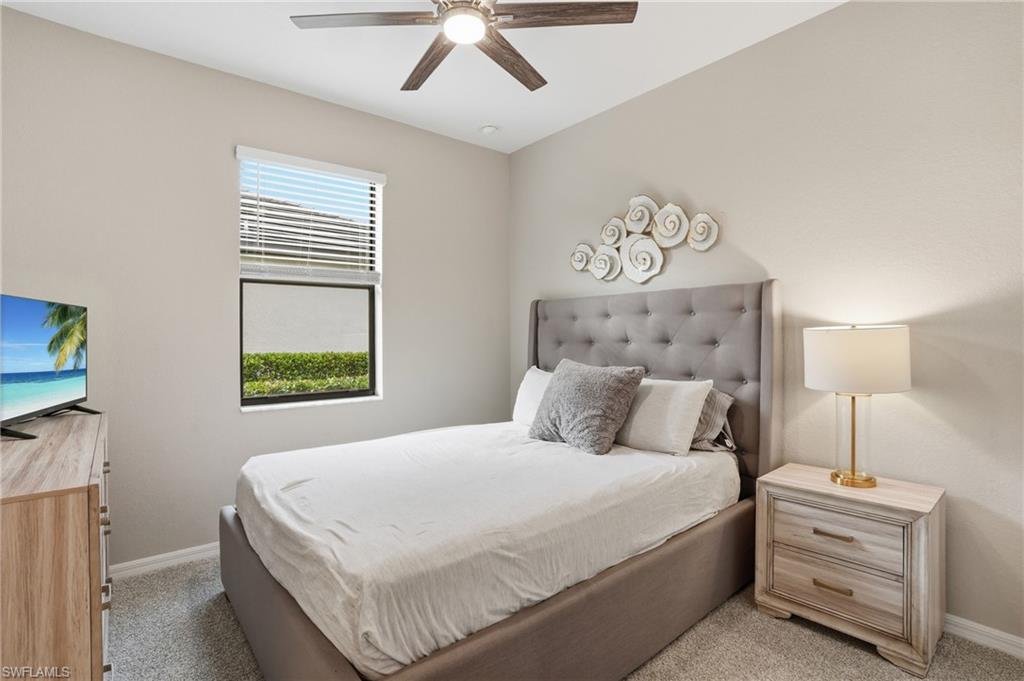 Step into a FULLY FURNISHED, breathtaking residence where shimmering LAKE VIEWS and a private POOL & SPA await you from the moment you walk through the door! This move-in ready sanctuary in The Place at Corkscrew is designed for those who want to start enjoying the Southwest Florida lifestyle immediately without the wait of building and furnishing a home. From the UPGRADED LANDSCAPING to the professionally SEALED PAVERS and freshly painted CARRIAGE LIGHTS, this residence makes a polished and sophisticated first impression. The interior layout is anchored by the kitchen, dining, and living areas that flow seamlessly together, creating a TRUE GREAT ROOM DESIGN. Wake up to peaceful water views in the PRIVATE PRIMARY SUITE, a spacious sanctuary that easily accommodates a KING BEDROOM SET. The suite also offers the convenience of TWO WALK IN CLOSETS, both enhanced with CUSTOM CLOSET ORGANIZATIONAL SYSTEMS. The en suite PRIMARY BATHROOM features DUAL SINKS and a large WALK-IN SHOWER. Flexibility is a hallmark of this Trevi floor plan, with guest bedrooms thoughtfully positioned for maximum privacy. One guest room functions as a PRIVATE MINI SUITE on its own wing and includes an EN SUITE BATHROOM with a TUB SHOWER COMBINATION and a FRAMELESS GLASS SHOWER DOOR. Two additional bedrooms share a third full bathroom, also upgraded with a CUSTOM FRAMELESS GLASS SHOWER DOOR. These versatile rooms can easily pivot between guest quarters, a quiet HOME OFFICE, or a fitness studio depending on your lifestyle needs. All four bedrooms feature BRAND NEW CARPETING, adding a fresh and comfortable feel throughout. Outdoor living becomes the focal point of this residence, highlighted by a sparkling app controlled, POOL AND SPA overlooking the lake. For ultimate peace of mind and comfort, the space is equipped with remote-controlled STORM SMART HURRICANE SCREENS, allowing you to control shade and have wind protection at the touch of a button. The outdoor oasis is enhanced by UPGRADED PRIVACY LANDSCAPING, multi color pool lights and a NEW POOL PUMP for efficient maintenance. Functional upgrades continue in the UPGRADED LAUNDRY ROOM, which has been reimagined with CUSTOM CABINETRY, a functional COUNTERTOP WORKSPACE, & NEW FRONT-LOADING APPLIANCES. Plus the GOLF CART is NEGOTIABLE!!! Living at The Place at Corkscrew feels like a permanent vacation with RESORT-STYLE AMENITIES that are second to none. Enjoy a LAGOON-STYLE POOL with a 100-FOOT WATERSLIDE, a POOLSIDE RESTAURANT, and a BOURBON BAR. The community is a hub for active living - PICKLEBALL, TENNIS, a 2-story FITNESS CENTER, and a MOVEMENT STUDIO. Ideally located just 10 mins from shopping and dining at GULF COAST TOWN CENTER and 20 minutes from RSW INTERNATIONAL AIRPORT, this residence offers the perfect blend of seclusion & accessibility. For buyers seeking a TURNKEY FURNISHED residence with a POOL, SPA, & LAKE VIEW in one of Southwest Florida’s most vibrant communities, this property delivers both lifestyle & value.