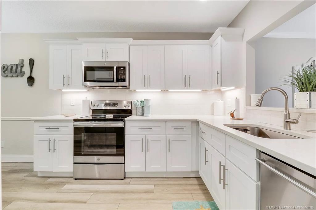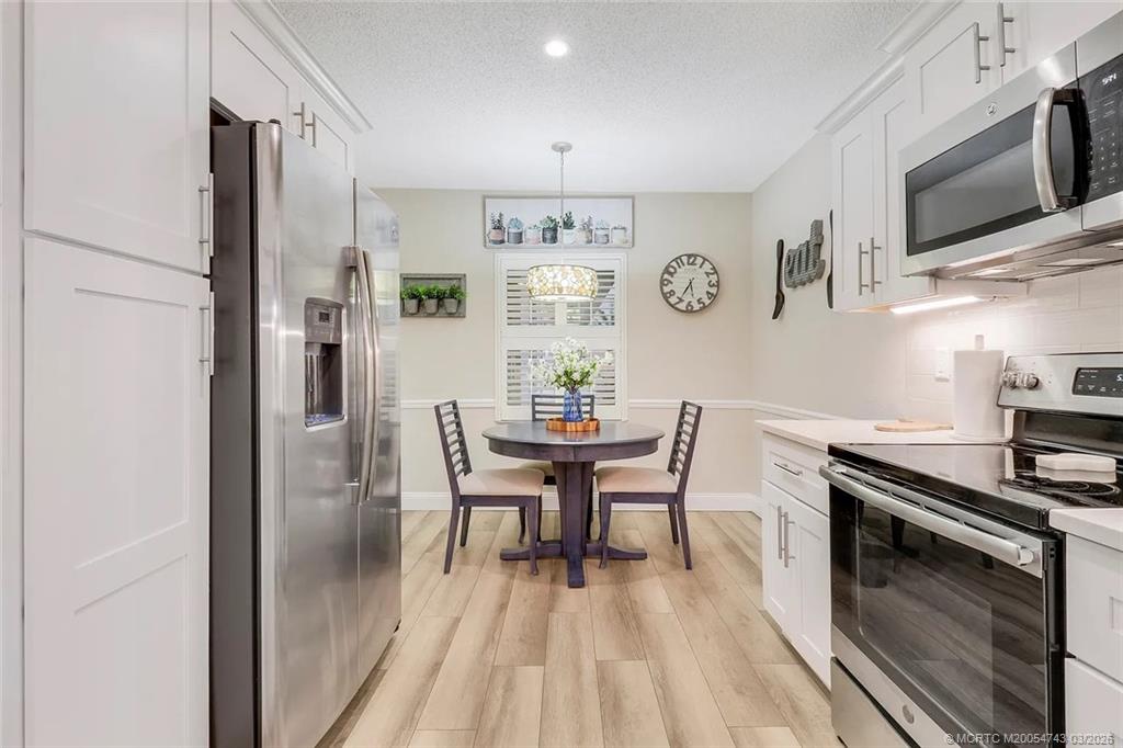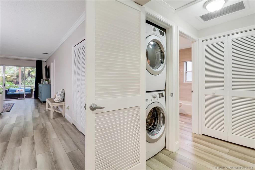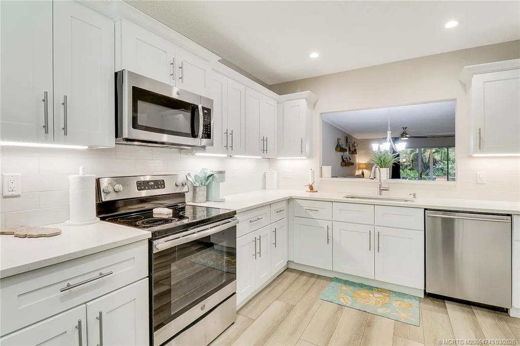 Light, bright, and perfectly located! This beautifully updated 2-bedroom, 2-bath first-floor corner unit is offered fully furnished, turn key and features quartz counter tops, SS appliances and luxury vinyl plank flooring throughout. Enjoy your morning coffee or unwind on the screened lanai surrounded by peaceful garden views. Filled with natural light throughout, this desirable ground-floor residence offers the perfect blend of easy living and coastal style. Conveniently located just minutes from beaches, golf, historic Downtown Stuart, shopping, and restaurants, Banyan House offers amenities that include a heated pool, two tennis courts and a clubhouse, making it easy to embrace the Florida coastal lifestyle.