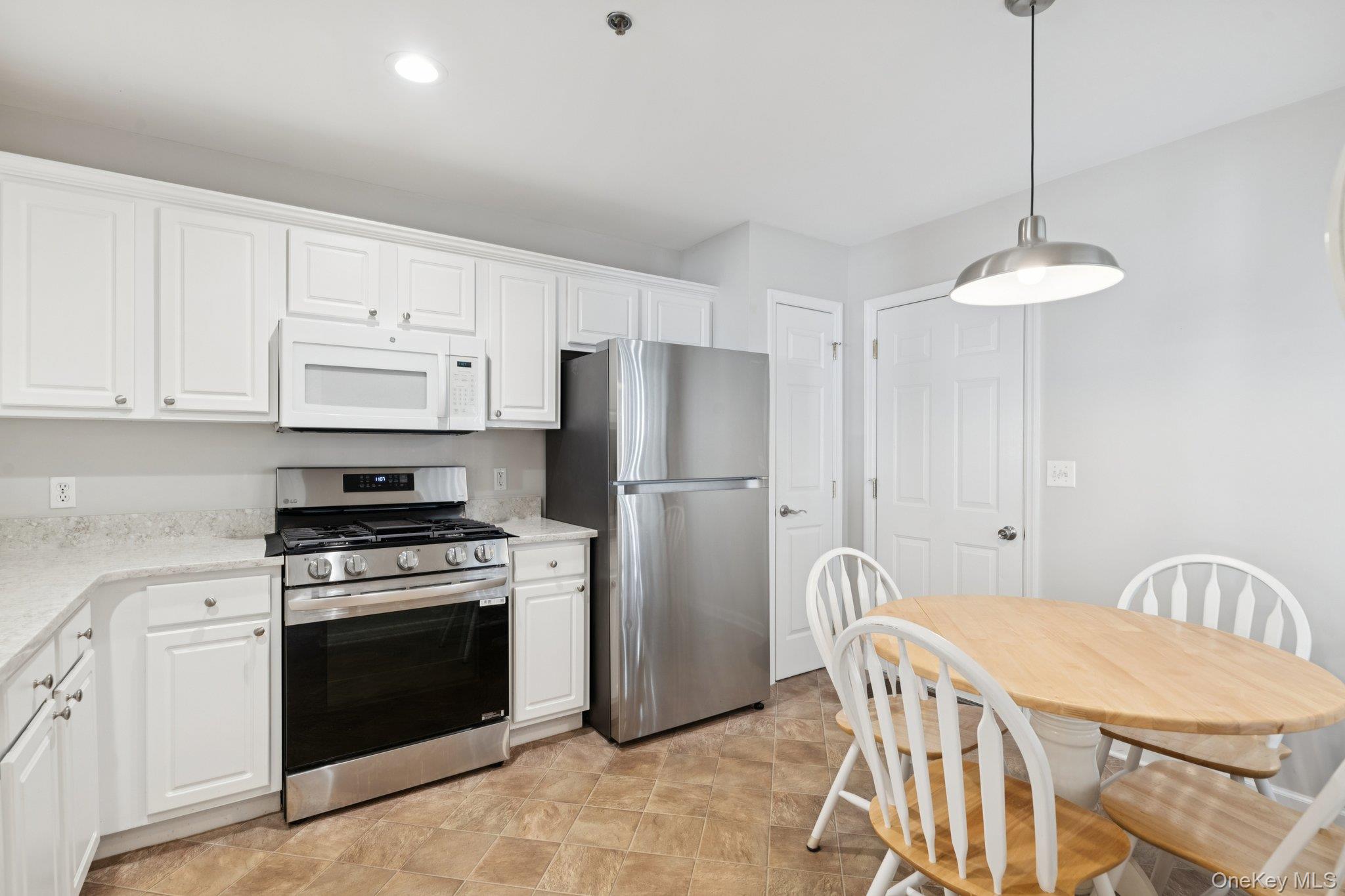 Don’t miss this rare opportunity in Stonington! This desirable Clairmont model offers 2 bedrooms and 2. 5 baths with a spacious open floor plan designed for comfortable living and entertaining. The main level features a bright living room and dining room with updated laminate flooring throughout. The eat-in kitchen is appointed with updated quartz countertops, mostly stainless steel appliances, a pantry closet, and direct access to the one-car garage. Upstairs, the generously sized primary suite features vaulted ceilings, a walk-in closet, and an en-suite bath with double sinks, a soaking tub, and a separate stall shower. The second bedroom also features vaulted ceilings and its own full bath. A conveniently located second-floor laundry closet adds to the home’s everyday ease. The partially finished basement offers valuable additional living space, including a recreational area, office space, storage room, and extra closets. Perfectly situated near the community’s exceptional amenities, this home is just steps from the in-ground heated saltwater pool, clubhouse with kitchen, gym, and tennis/pickleball courts. Conveniently located just minutes from downtown Port Jefferson, the Port Jefferson Ferry, Stony Brook University, Smith Haven Mall, and a variety of restaurants and shopping—low taxes!