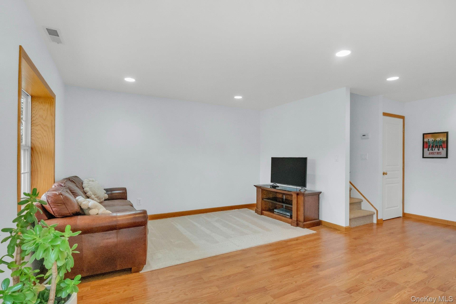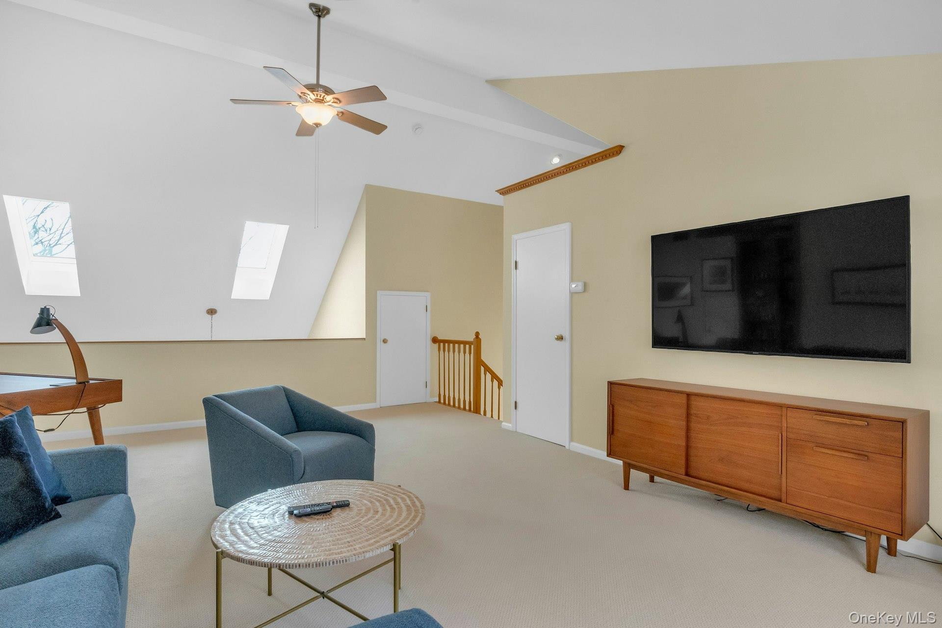 Fieldstone Model in the Wyndcrest community, offering a Primary Suite on the main floor with no-step entry. Lives like a single-family home. Town of Ossining Property Card lists this townhome as 4 BRs. Open floor plan and flooded with natural light, this end unit has been tastefully and thoughtfully updated so that all you need to do is bring your suitcase and furniture. Pristine renovated EIK, new primary Bathroom and updated hall bathroom, gleaming hardwood floors, recessed lights, high ceilings, beautiful light fixtures, and more. BBQ on the Deck off the Dining Room & EIK, or entertain and/or relax on the large flagstone Patio off the walk-out lower level, with a lawn area as a bonus. The finished Loft area can be a Family Room, playroom, Office, or Media Room, plus you have a dedicated Office on the basement level, with room to add a bathroom (with town/condo approval). An attached garage plus a private driveway and guest parking nearby. Wyndcrest offers a community pool, playground, and basketball court. Briarcliff Recreation amenities are also available to residents. North County Hiking trail entrance directly across the street. A rare find: massive amounts of storage, in award-winning Briarcliff Manor schools, with low taxes and HOA fees.